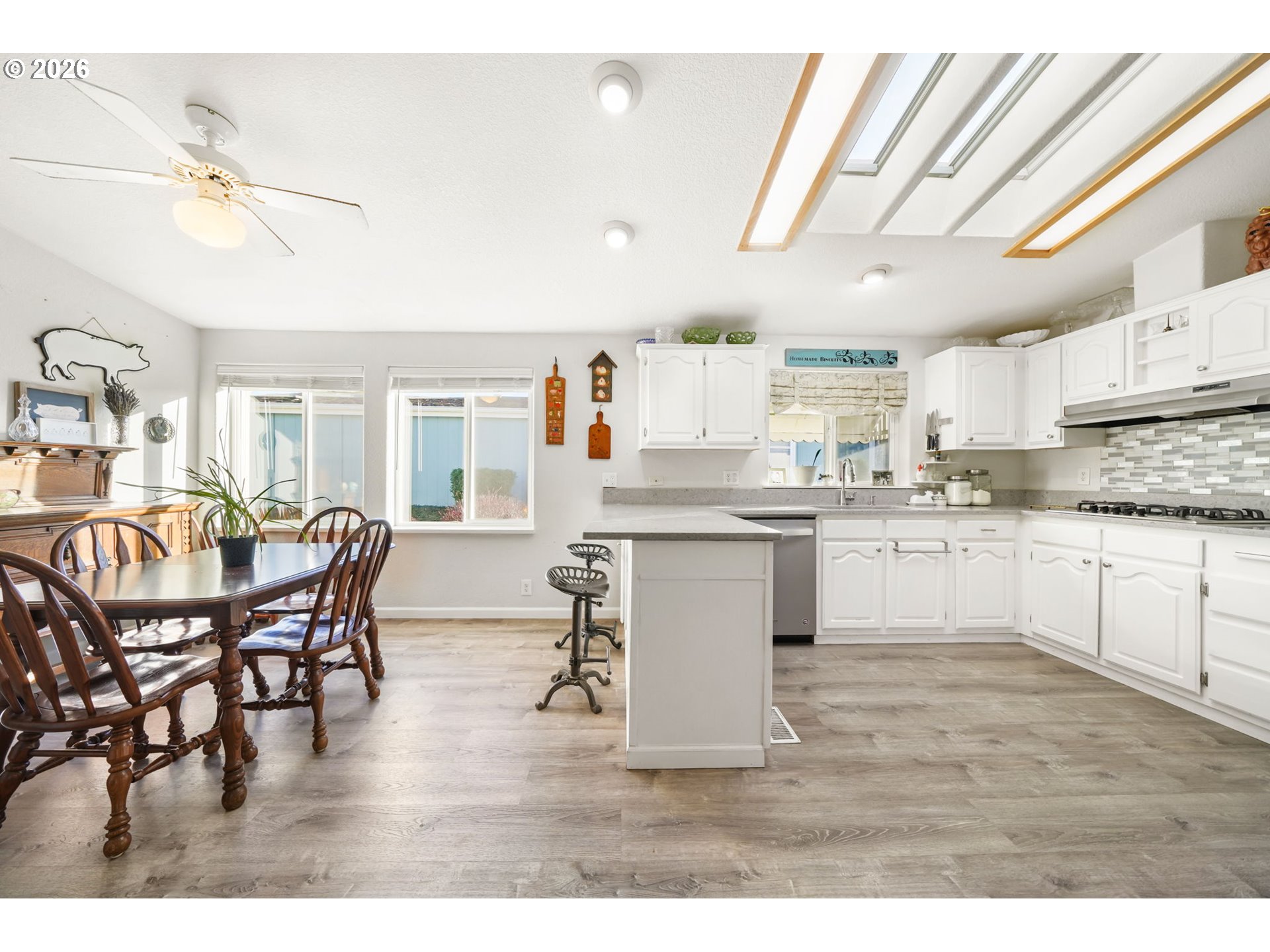 Welcome to easy living on the fairway! This light-filled, tastefully updated Silvercrest triple-wide sits directly on the golf course in Middlefield Estates, one of Cottage Grove’s most sought-after 55+ communities. Step inside to find modern finishes throughout—new flooring, fresh paint in and out, stainless appliances, quartz counters, updated plumbing, gas furnace, water heater, and central air for year-round comfort. The open living room invites you in with generous windows and a cozy gas stove. Wake up to serene golf course views from the primary suite, complete with a walk-in closet, plus another walk-in closet in the ensuite, double vanities, and a double shower. The bright kitchen offers a gas cooktop, updated oven, breakfast bar, eating nook, and stainless steel appliances. Both bathrooms have been refreshed with contemporary upgrades. Out back, unwind or entertain on the partially covered deck overlooking the fairway. The fenced yard features sprinklers and raised beds—ideal for gardening. A two-car garage provides convenience and extra storage. Minutes to Cottage Grove Hospital, Cottage Theatre, shops, dining, and transit—this is low-maintenance living with comfort and charm. Shown by appointment only call your broker today to schedule a private tour!