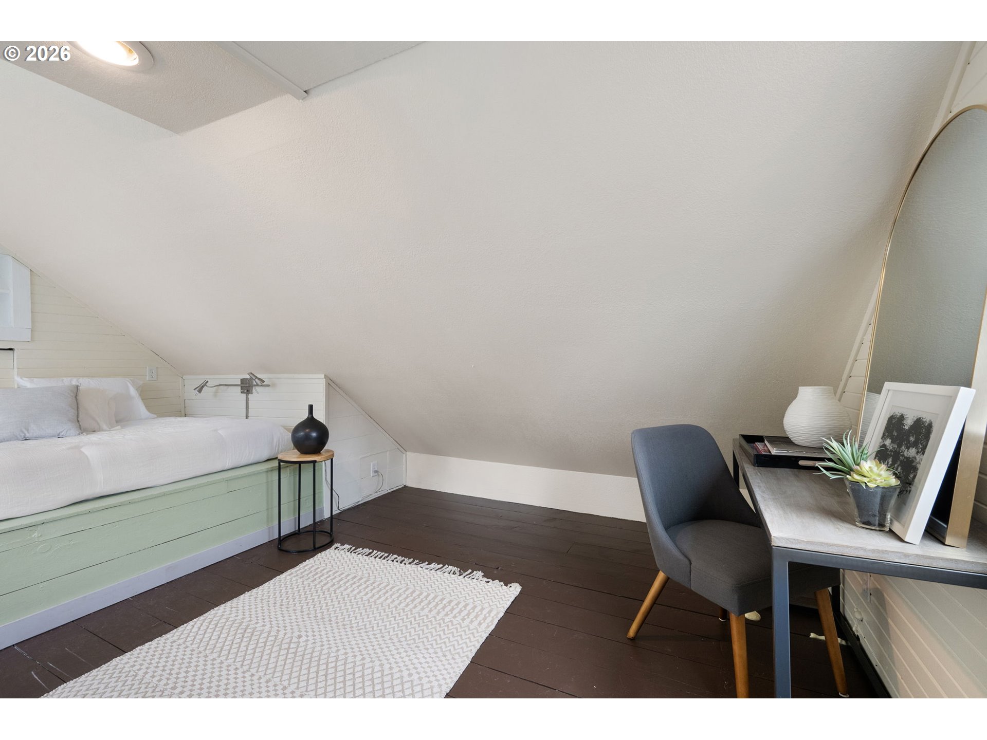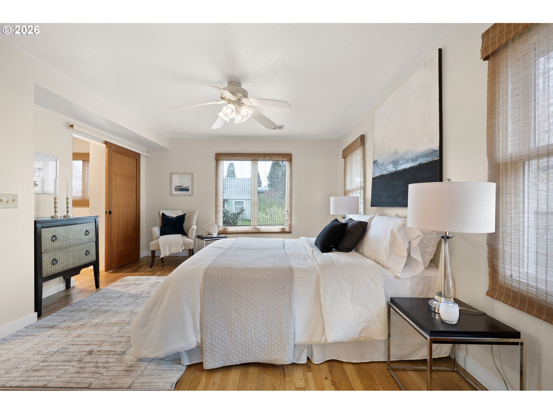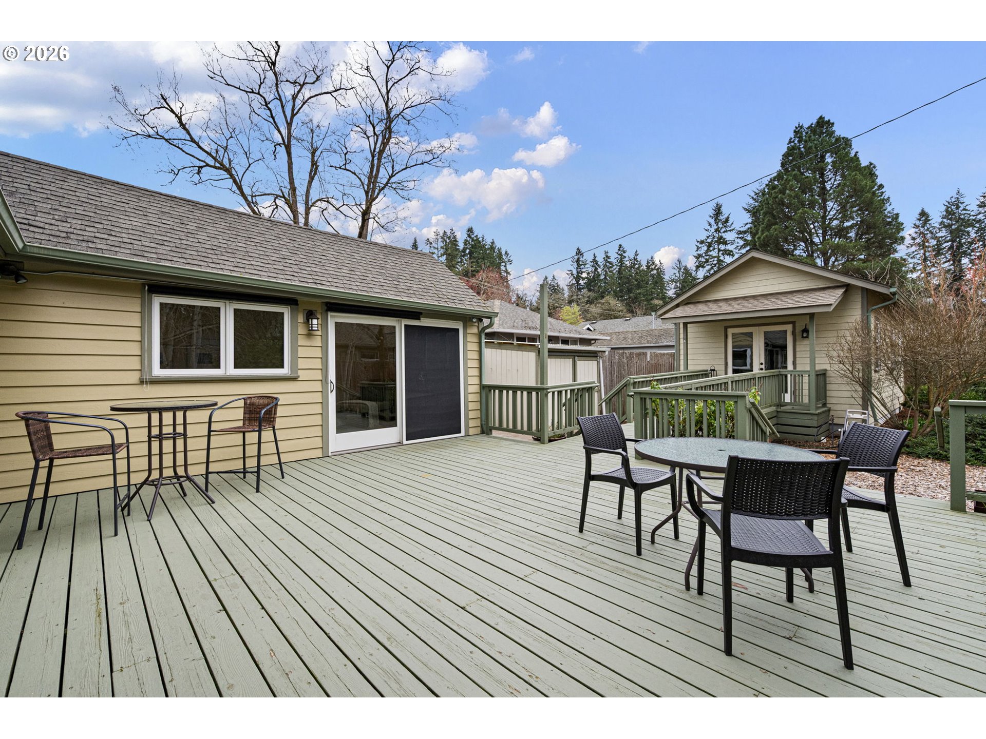 A one of kind 1589 square foot home in a great location with so many possibilities. Updated charming 1920's with space for separate living, work from home and or rental use. Main level area has an open floor plan with a large entry, beautiful kitchen, living room and dining area. Primary suite has a walk/wheel in shower, tiled bathroom and walk-in closet. Step down to a tiled laundry room, second bedroom with a sliding door to deck, second bathroom with a shower and a second front exterior entrance. Third bedroom is upstairs attic/loft with ladder access. Detached 379 square foot studio with both heat and air. Mature landscape, fenced, alley access, three out buildings in addition to the studio and a chicken coop. Decking, raised beds, prolific blueberries, Gravenstein apple tree and countless plants chosen and cared for with incredible thought. Please preview this home and property to fully appreciate all that it has to offer.