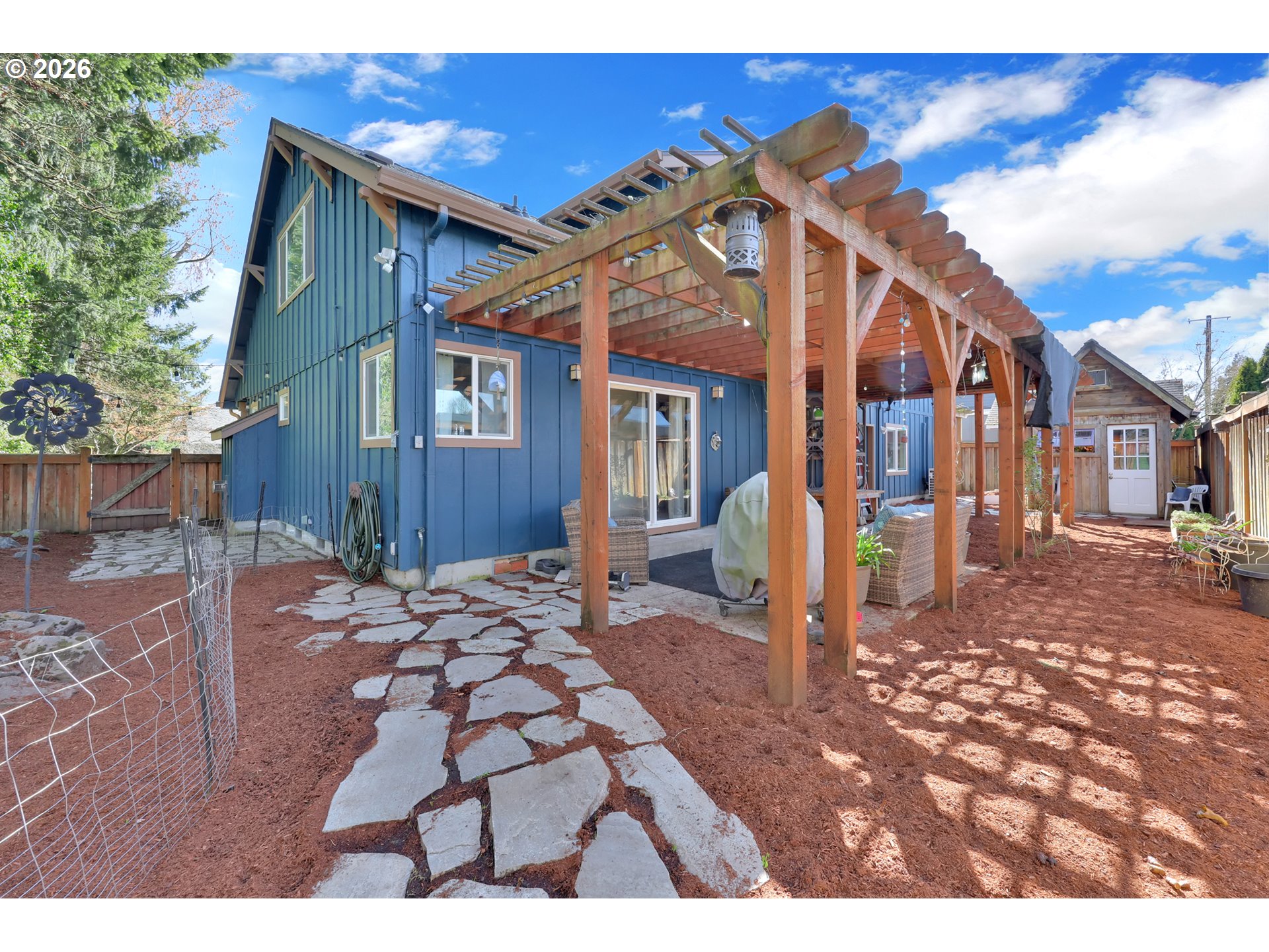 Welcome to this beautiful home in the desirable Oak Haven neighborhood, where comfort, charm, and functionality come together seamlessly.Step inside to discover a spacious kitchen featuring rich alder cabinets with elegant lead glass accents, tile floors,ductless heat pump and an inviting informal dining area perfect for everyday living. The living and dining rooms showcase stunning hardwood floors and a cozy gas fireplace, creating a warm and sophisticated setting for gatherings and special occasions.The main-level office offers flexibility and could easily serve as a third bedroom. Upstairs, the generous vaulted loft provides the perfect space for a home office, media room, or bonus area to fit your lifestyle. The primary suite is a true retreat, complete with vaulted ceilings and a spacious walk-in closet. Two additional upstairs bedrooms provide comfort and privacy for family or guests.Outside, the nicely landscaped yard is designed for both relaxation and enjoyment, featuring a charming garden pergola and an adorable heated garden shed — ideal for hobbies, projects, or extra storage. Back has a Catio. This thoughtfully designed home blends elegance, versatility, and outdoor charm in a sought-after neighborhood setting. Newer Exterior Paint 2021, New Interior paint in some rooms. New Roof 2019. New Bark, Security Cameras on site.