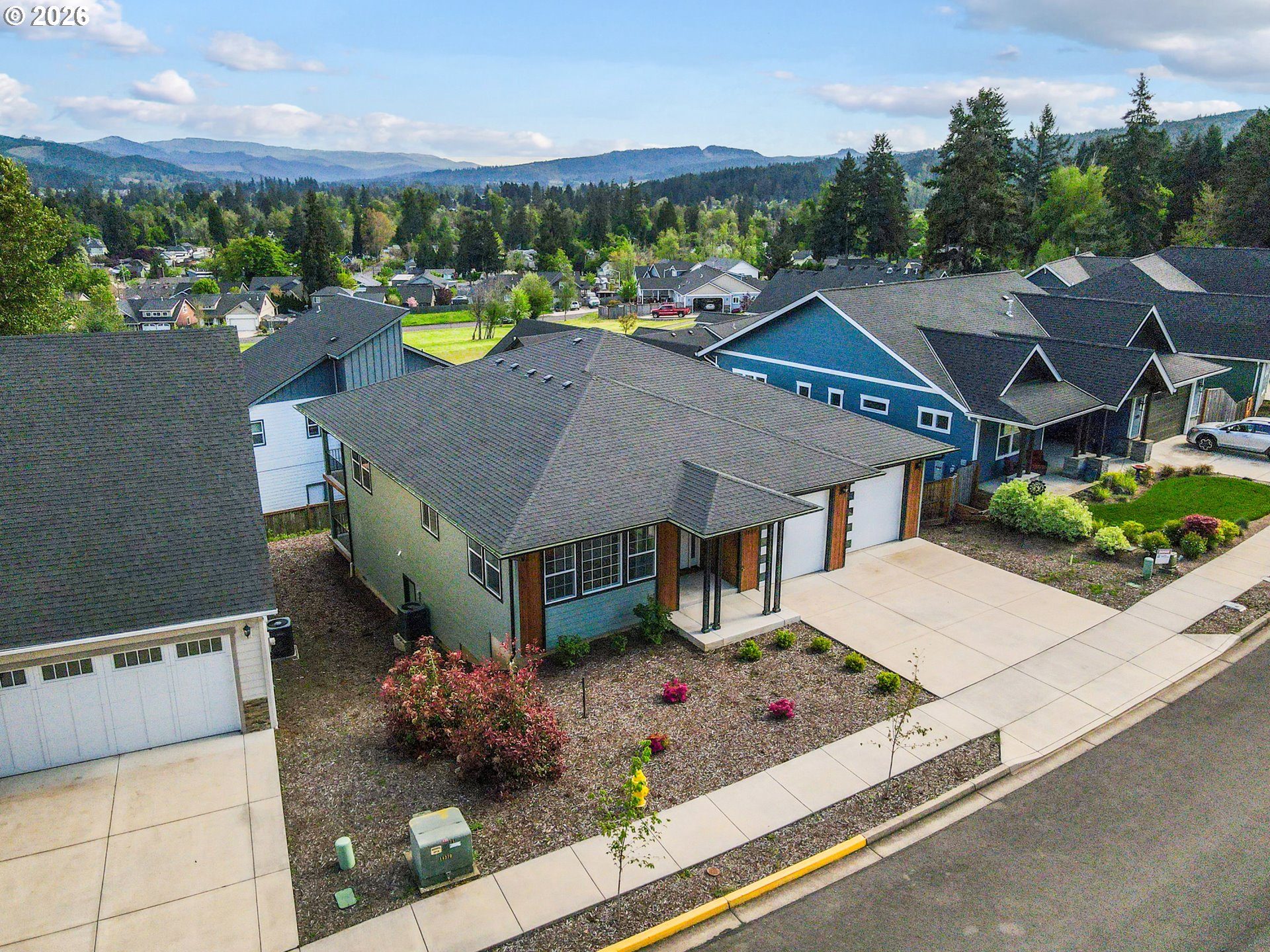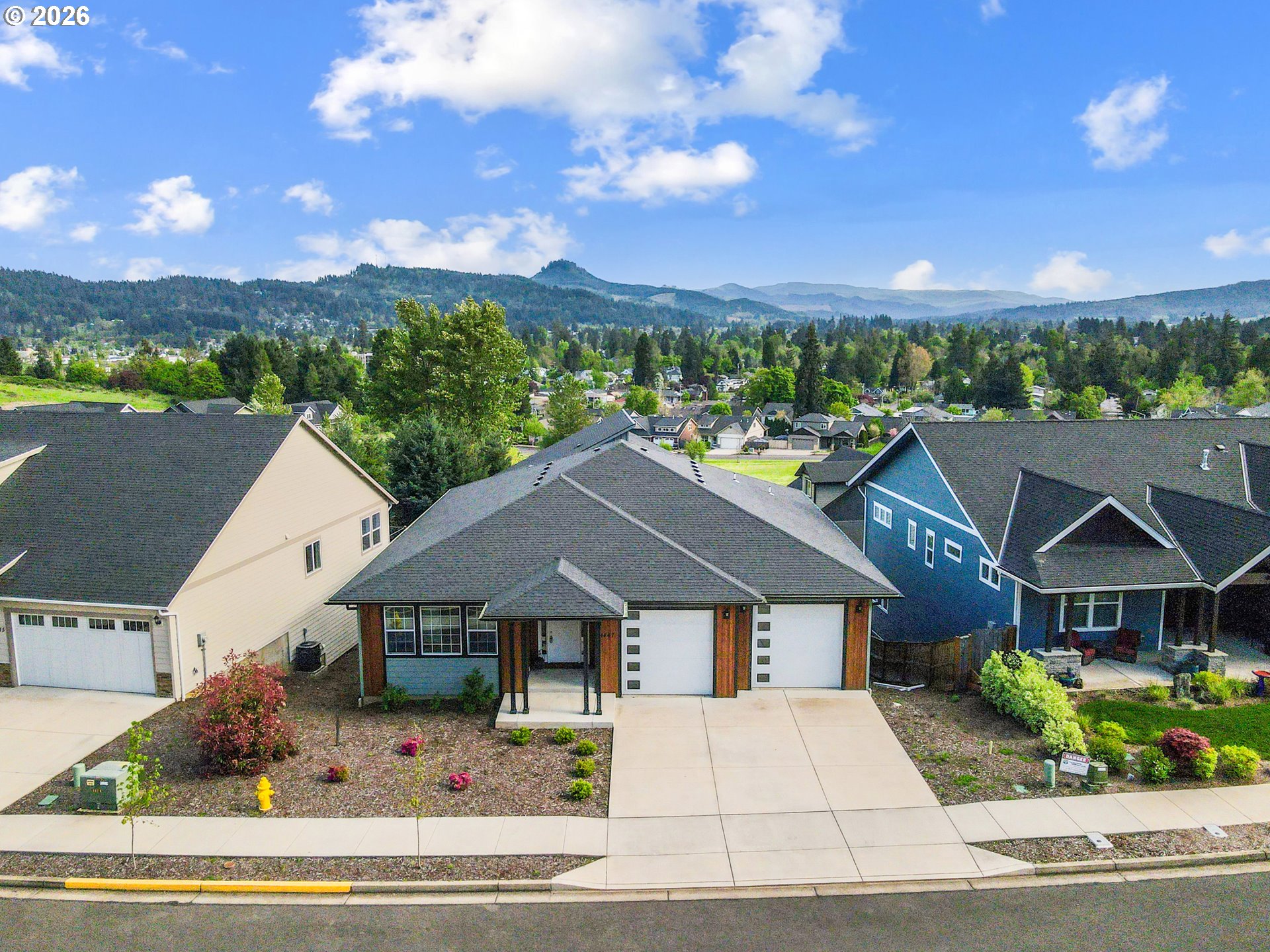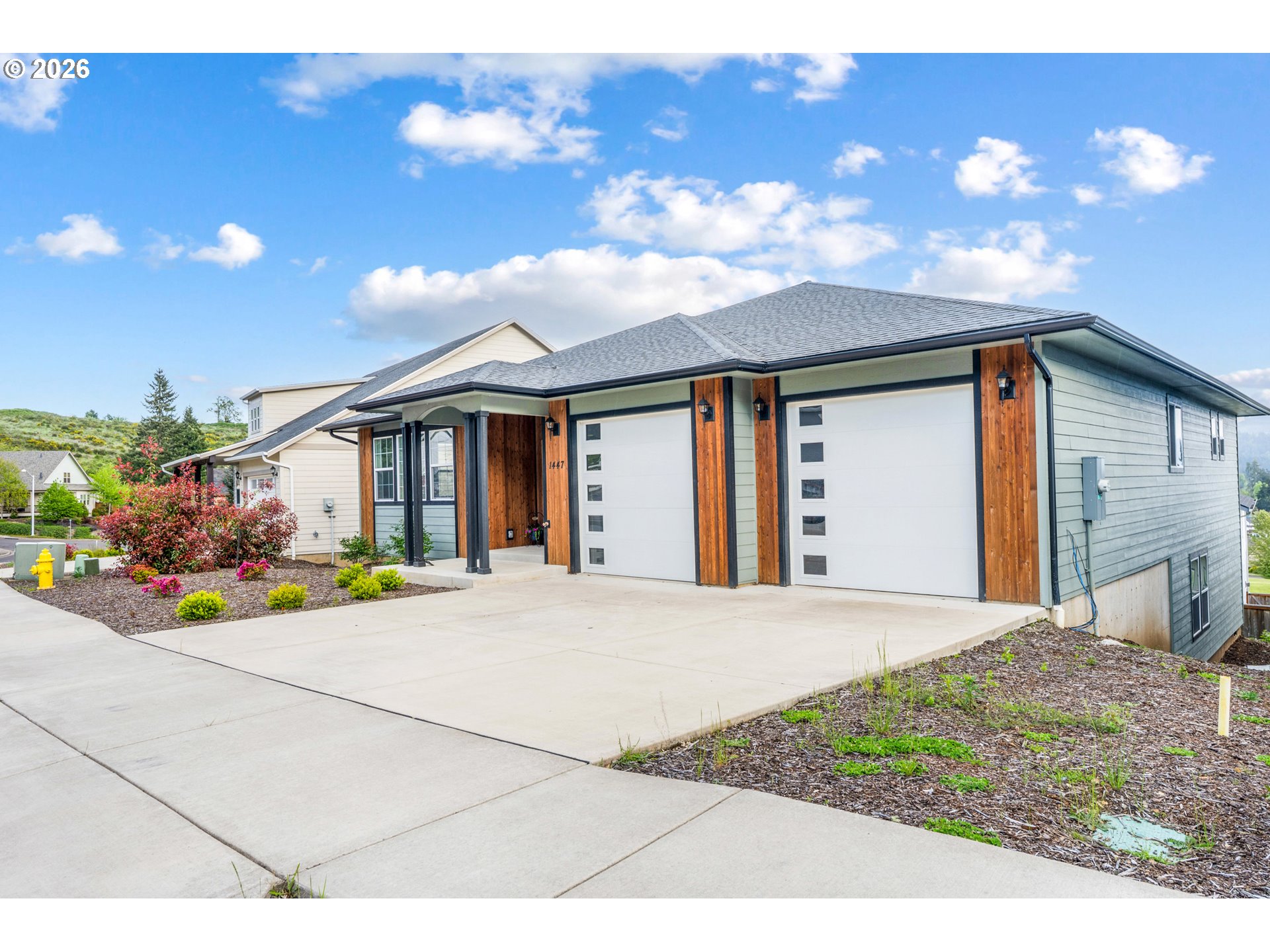 A rare opportunity to own a brand-new, never-lived-in home without the wait for construction — welcome to 1447 Elm Avenue. This home is tucked away in the hills of Cottage Grove in the newly-developing Sunrise Estates neighborhood overlooking the city, showcasing stunning mountain views. Step inside to a spacious, open-concept floorplan designed for modern living, where the kitchen, dining, and living areas flow seamlessly together. The layout creates an easy, natural transition between spaces—ideal for both everyday comfort and entertaining. An abundance of windows floods the home with natural sunlight, enhancing the bright, airy feel and highlighting the clean, contemporary finishes. Everything from the roof and siding to the HVAC system, flooring, cabinetry, fixtures, and appliances are all brand new and completely unused, offering peace of mind and low-maintenance living for years to come. Step outside to enjoy two large covered back decks, perfect for relaxing, hosting, or taking in the surrounding setting year-round. Thoughtful design continues with cedar accents featured in the exterior siding, adding warmth, character, and a touch of Northwest style. Brand new. Never occupied. Move-in ready. Opportunities like this don’t last—schedule your showing today!