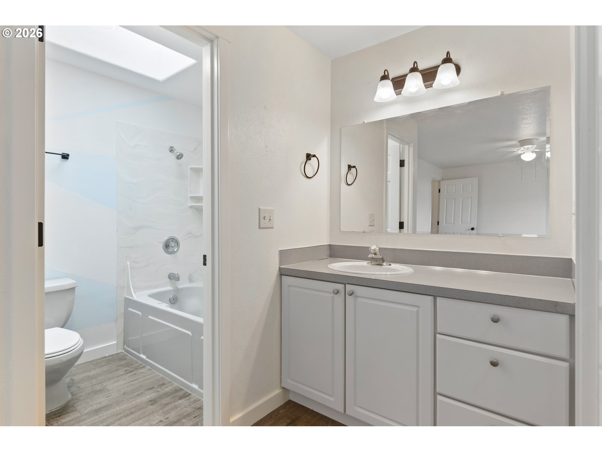 Move-in ready Thurston home on spacious corner lot! This 3 bedroom home has been well maintained and 1-person occupied since 2022. Central air conditioning and gas heater. Nice open floor plan and hardwood floors throughout. 16 ft. vaulted ceilings in living and dining room. Fairly new dryer from 2022/No washer included. Refrigerator from 2022. New roof with added skylights installed in June 2023. Covered porch & RV parking. Close to Thurston schools, shopping, and McKenzie River.