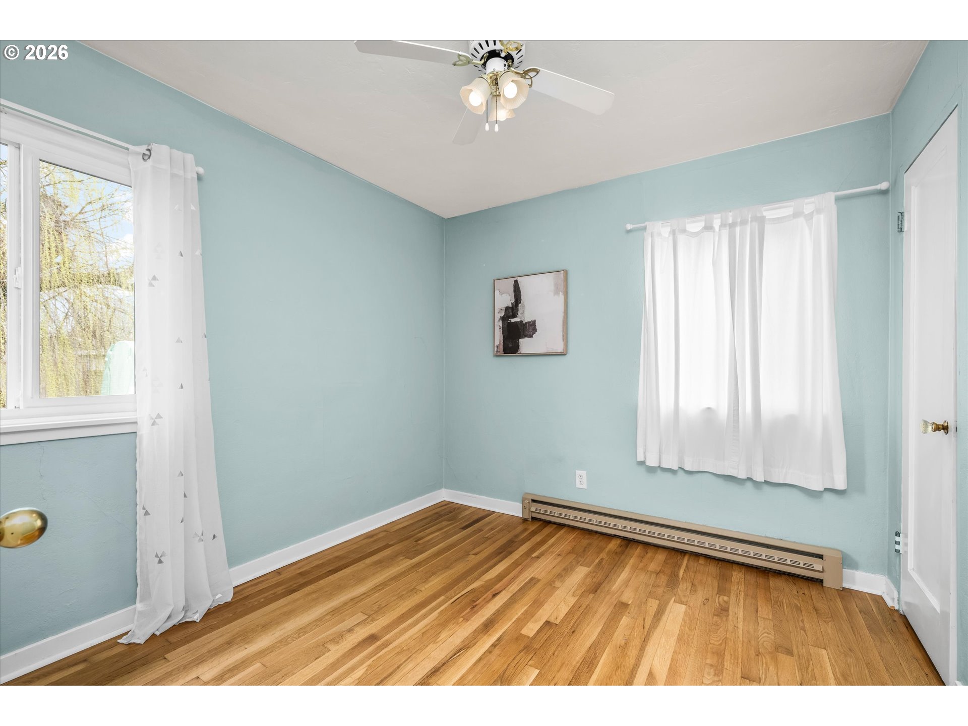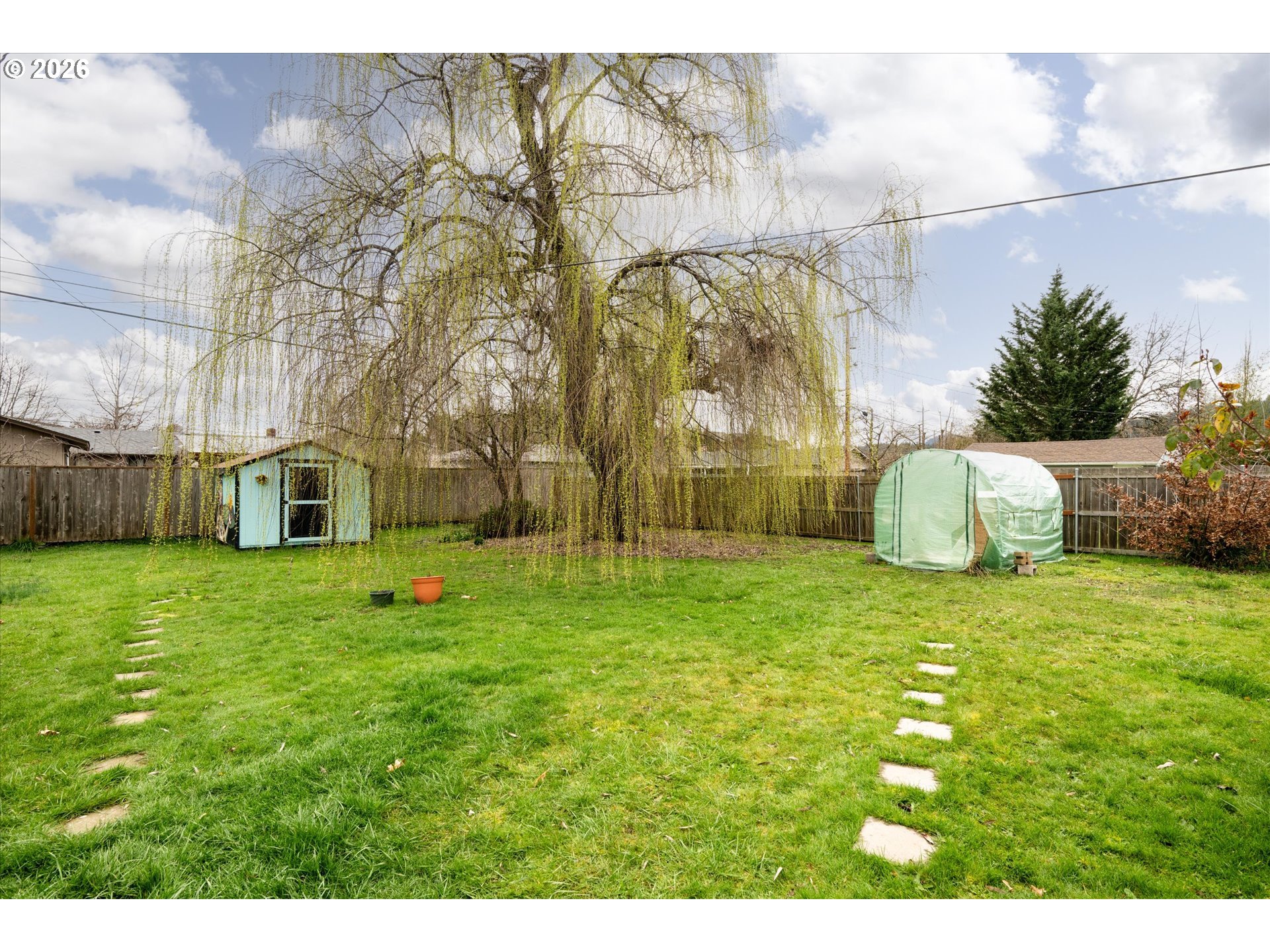 Welcome home to this charming property in Eugene! Inside, you'll find beautiful hardwood floors that add warmth and character throughout the home. Stay comfortable year-round with ductless heating and air conditioning, providing efficient climate control in every season. Roof approximately 2019. The home also features a one-car garage for convenient parking and additional storage. Step outside to enjoy the large fenced backyard, perfect for gardening, pets, or outdoor gatherings. The yard includes raised garden beds ready for your favorite plants and a tool shed for extra storage and project space. Minutes to the Fern Ridge Path & bus line for easy access to everything. This inviting property offers comfort, functionality, and plenty of outdoor space to make your own. Start your homeownership journey or enjoy a simpler lifestyle. Don't miss the opportunity to call this Eugene home yours!