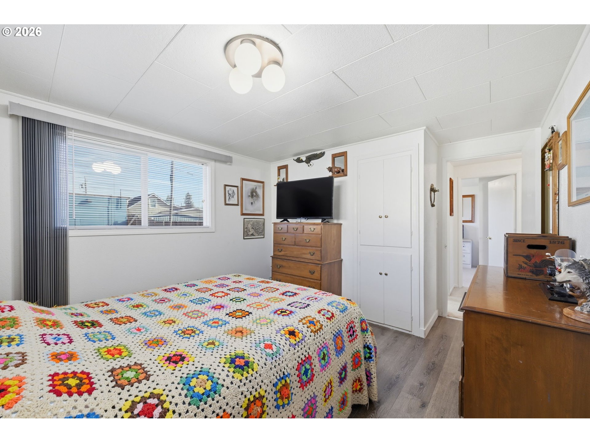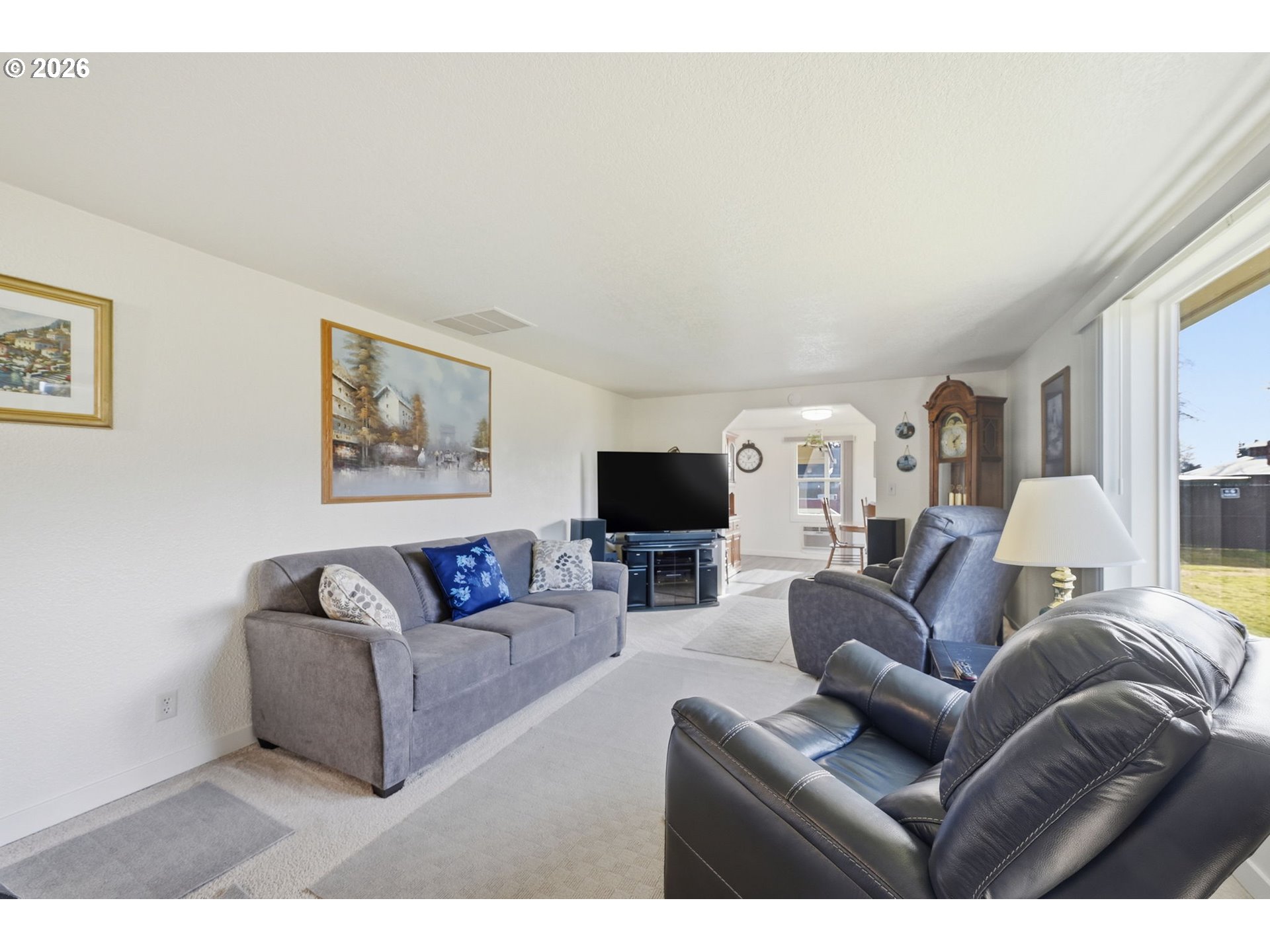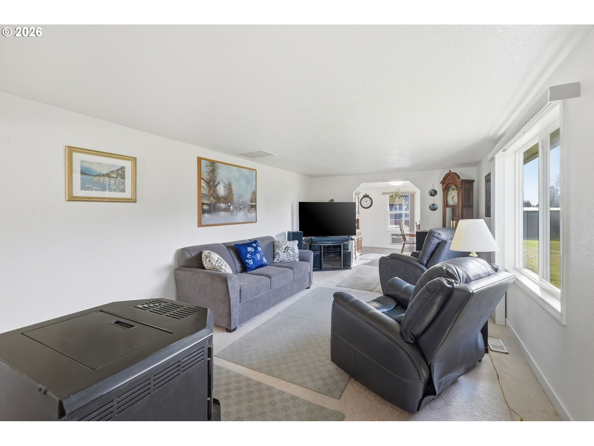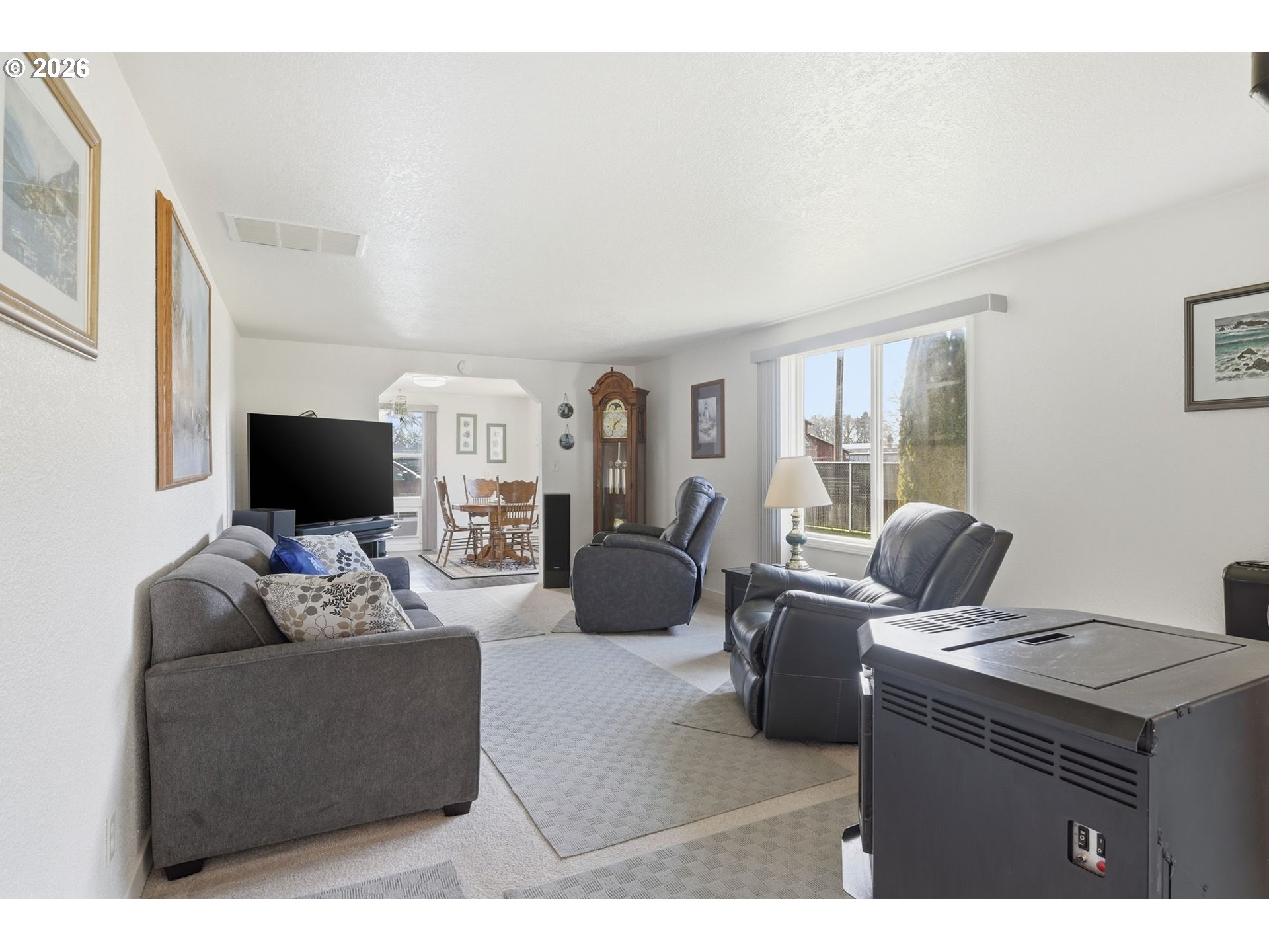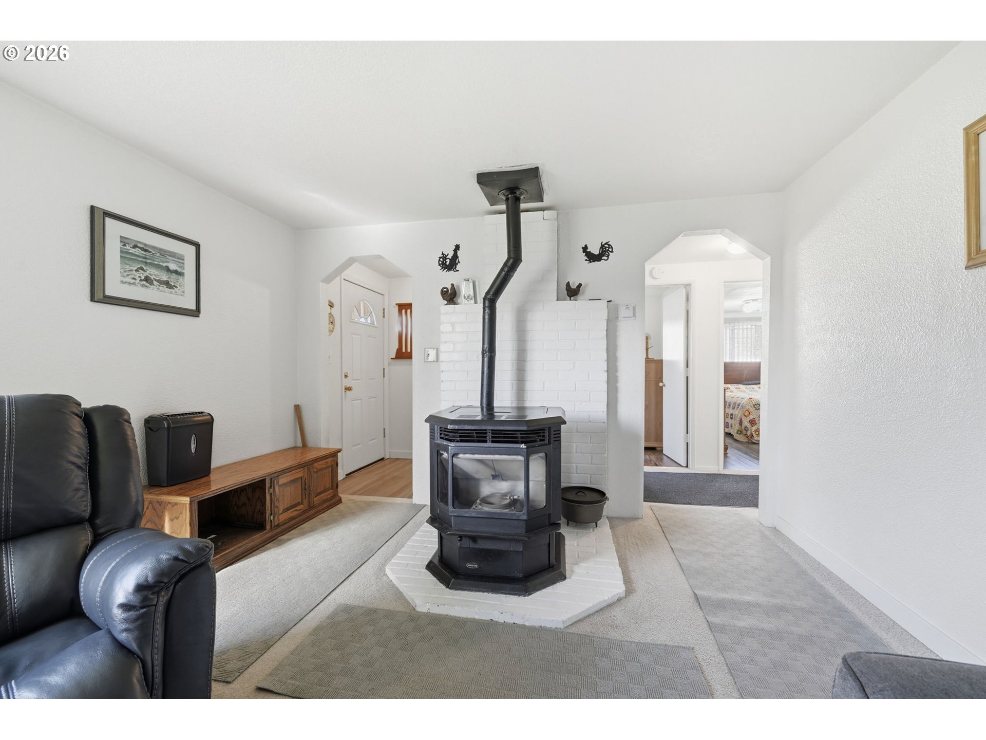 Charming single-level home on an oversized 0.34-acre lot directly across from Laurel Park, featuring a brand-new roof installed in 2025 and fresh paint throughout. This 3-bedroom, 1-bath residence offers comfortable one-level living with a warm, inviting feel, highlighted by a cozy pellet stove in the living room. An arched entry connects the dining area to the living space, adding character and flow. The spacious kitchen features plenty of counter space, perfect for everyday cooking or entertaining. Outside, the expansive lot provides plenty of room for a shop, along with space for gardening, entertaining, RV parking, or future possibilities. Prime location with less than a 5-minute walk to Laurel Elementary, the city pool, and Safeway, plus easy access to daily conveniences. Enjoy park views right from your doorstep and the rare combination of a large lot and central Junction City location—a great opportunity to own a well-located property with room to grow. Open House Saturday, 1/24 @ 12-2PM.