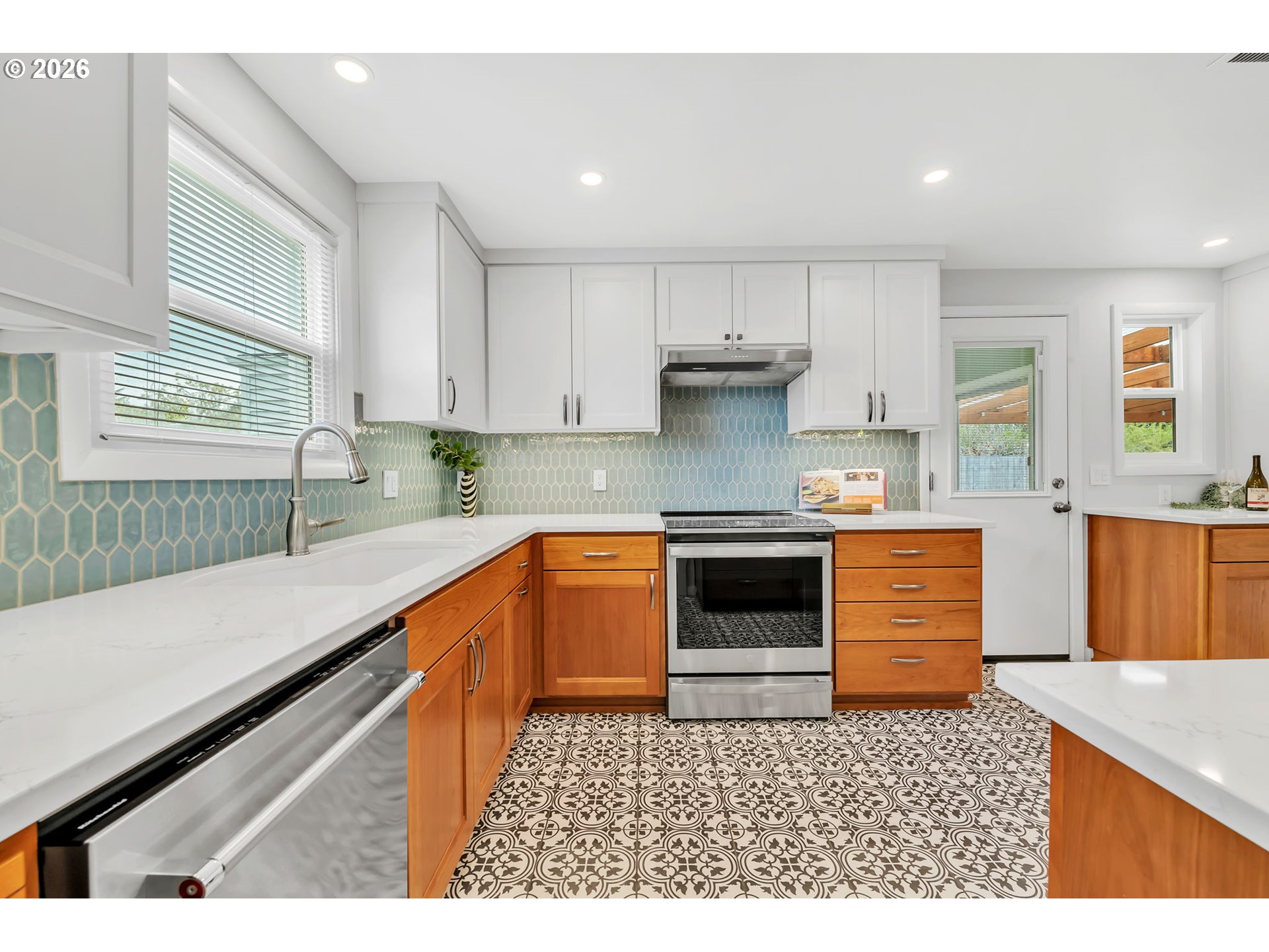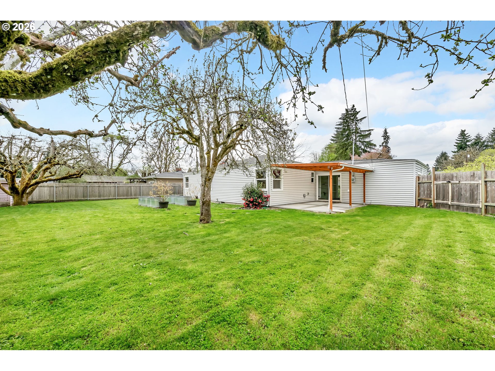 Welcome to 1555 Escalante Street in Eugene! This beautifully updated 3-bedroom, 1-bath single-level home offers comfort, style, and functionality on a quiet street. Inside, you’ll find a beautifully remodeled kitchen and bathroom with convenient pull out drawers, along with many thoughtful updates throughout that make this home feel fresh and move-in ready. The updated kitchen features high-end stainless steel appliances, including an electric stove with an induction cooktop and a washer and dryer with convenient pull-out drawers, adding both style and everyday practicality. Efficient heating and cooling provide year-round comfort in every season. Step outside to enjoy the light and bright covered patio, perfect for relaxing or entertaining, while the large backyard including 2 apple, 1 pear tree, blueberries and raised garden beds for all your gardening needs. A 1-car garage plus the breezeway between the home and garage provides valuable extra storage and added flexibility.