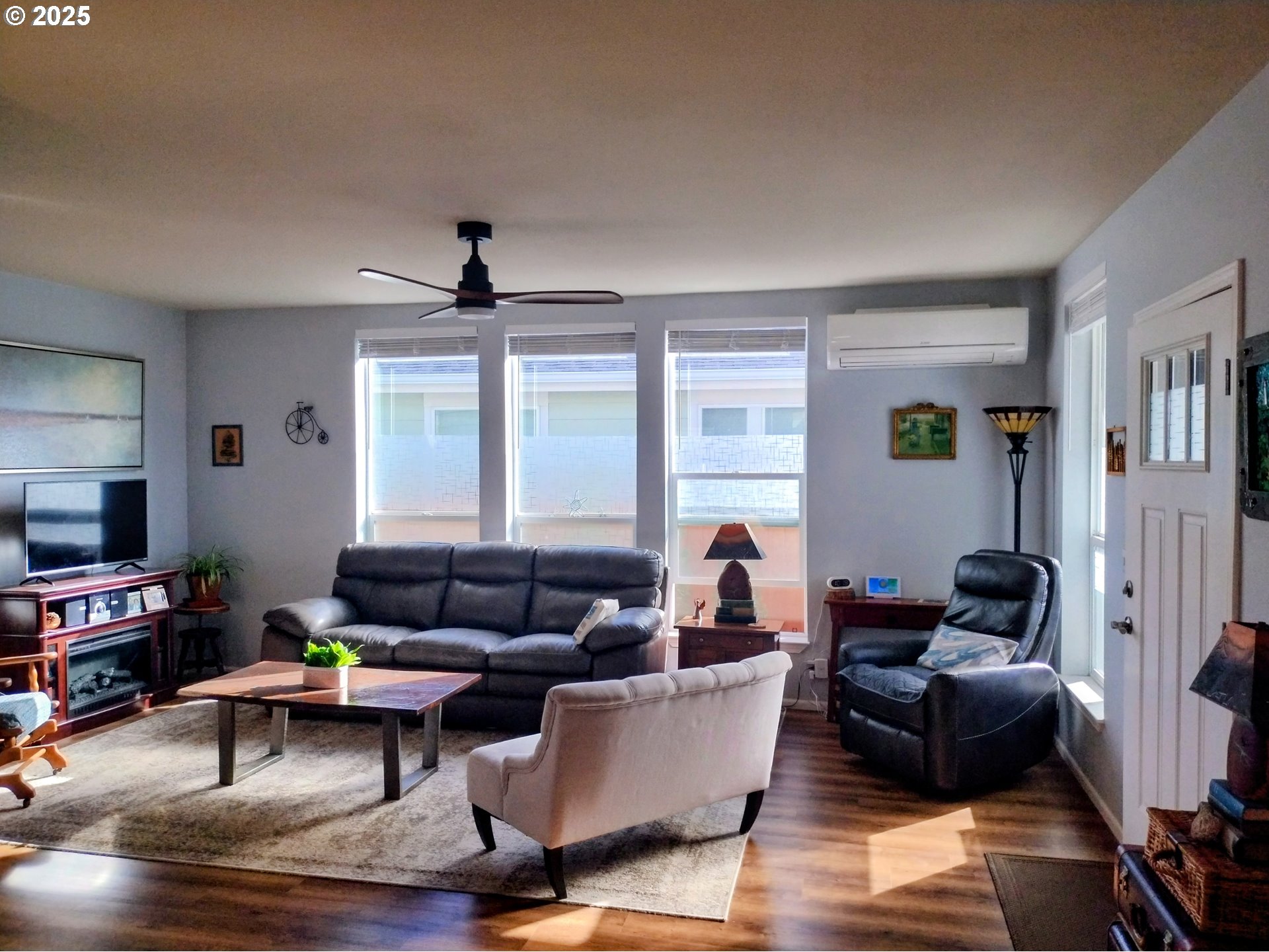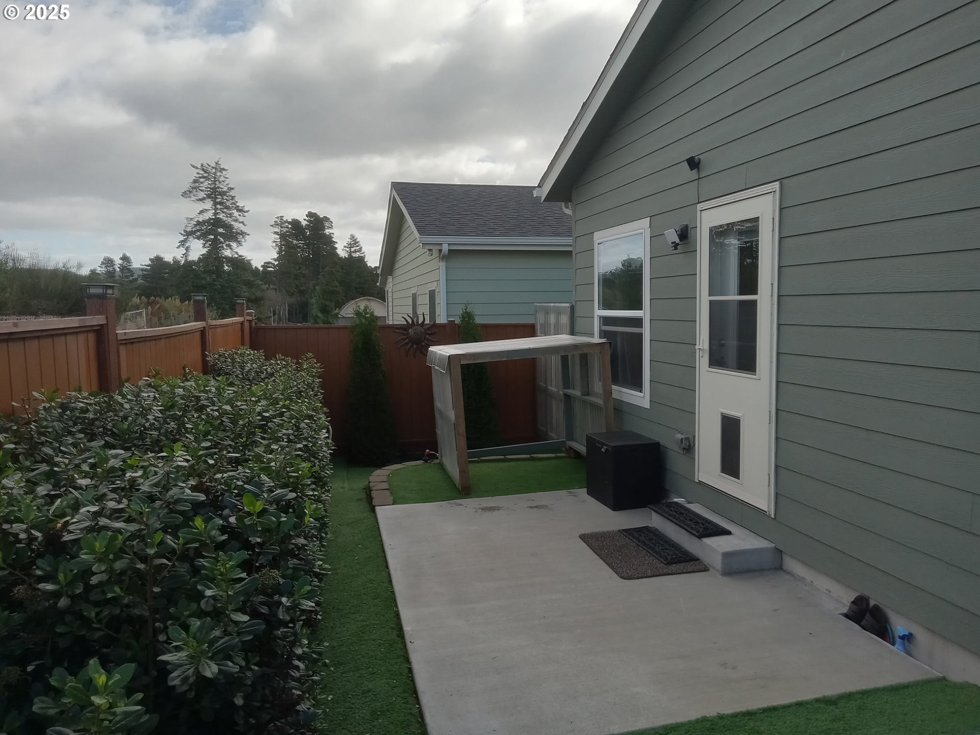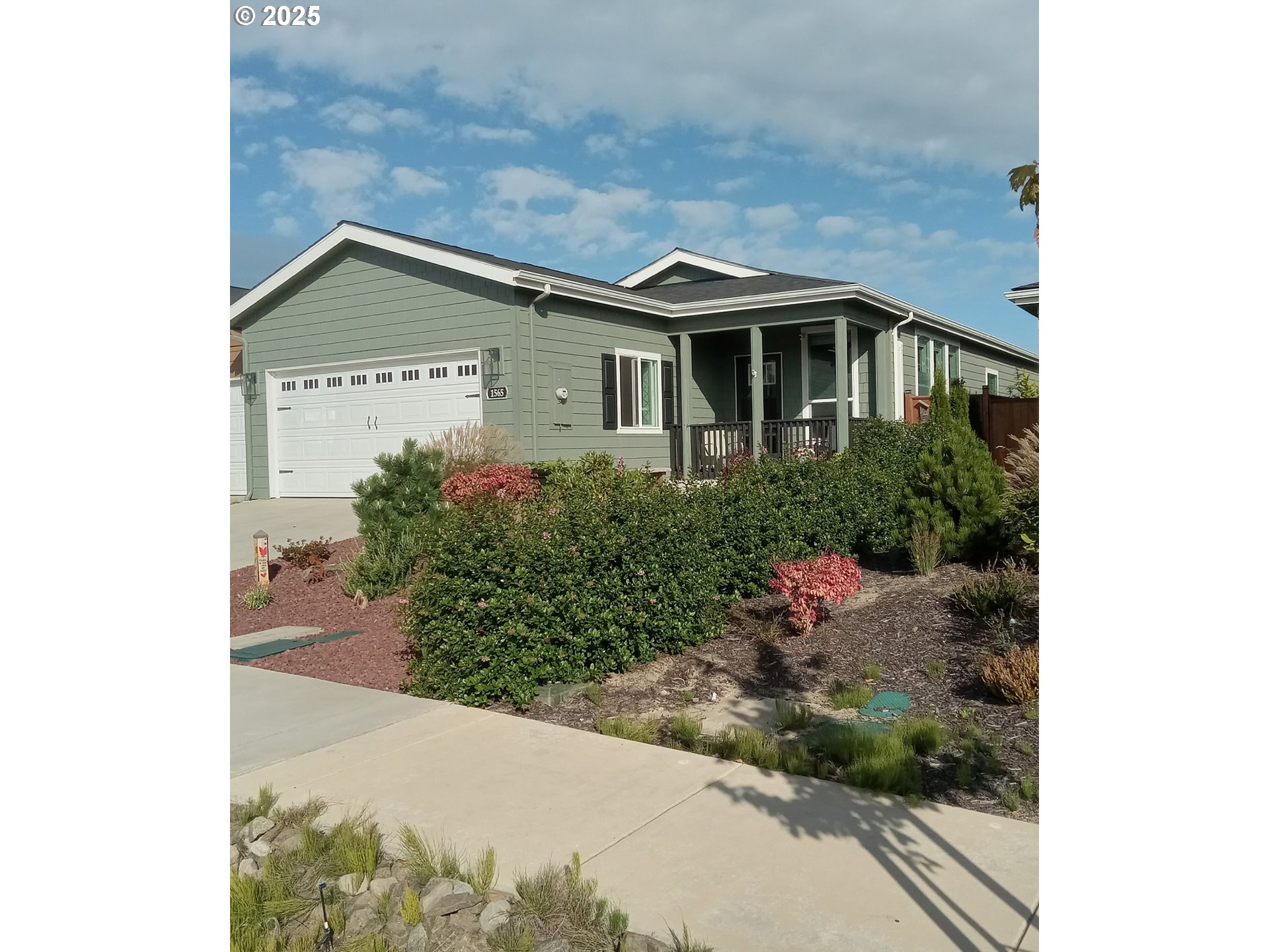 This 2023 Palm Harbor manufactured home features 2 bedrooms, 2 bathrooms, and a versatile den — perfect for a home office or guest room. Offering 1,296 sq. ft. of stylish coastal living on a pit-set concrete foundation with an attached two-car garage and covered entry, this home showcases quality construction and timeless design with a 4/12 roof pitch, 9-foot ceilings, and durable fiber cement lap siding.Though classified as “attached,” only the garage wall is shared — the living areas are completely separate, giving you the privacy and feel of a detached home.Inside, you’ll find quartz countertops, luxury vinyl plank flooring, and plush carpet in the bedrooms and den. Efficient year-round comfort comes from a 2025 Mitsubishi mini-split heat pump system.Enjoy a landscaped front and back yard with drip irrigation and a peaceful setting on the north end of Florence city limits — with all city utilities and services. Just a short walk to Fred Meyer and only 2 miles to Heceta Beach, you’ll have endless recreation right outside your door: sand boarding, hiking the Three Mile Prairie trails, walking the dunes, and foraging for mushrooms and berries.Don’t let this one pass you by — especially at this price!