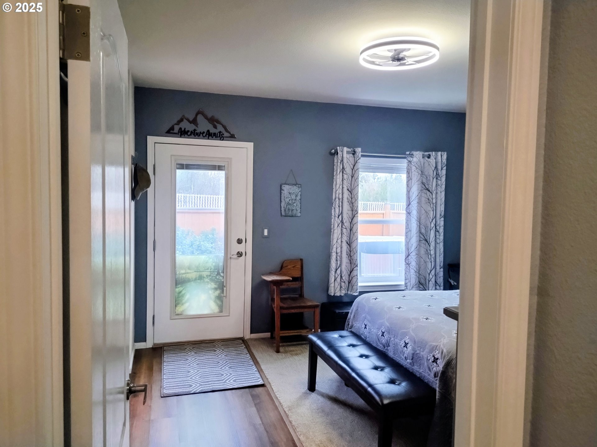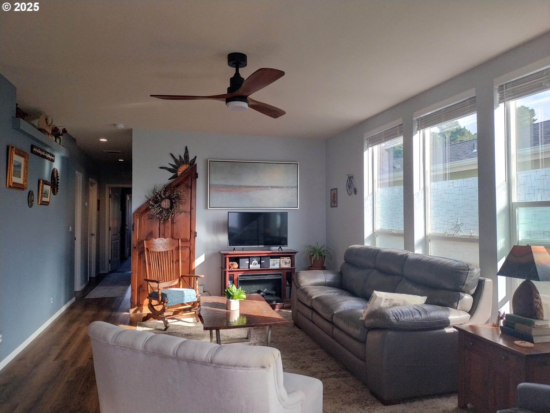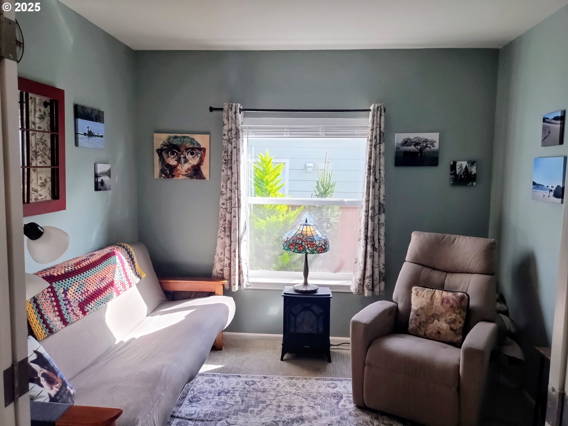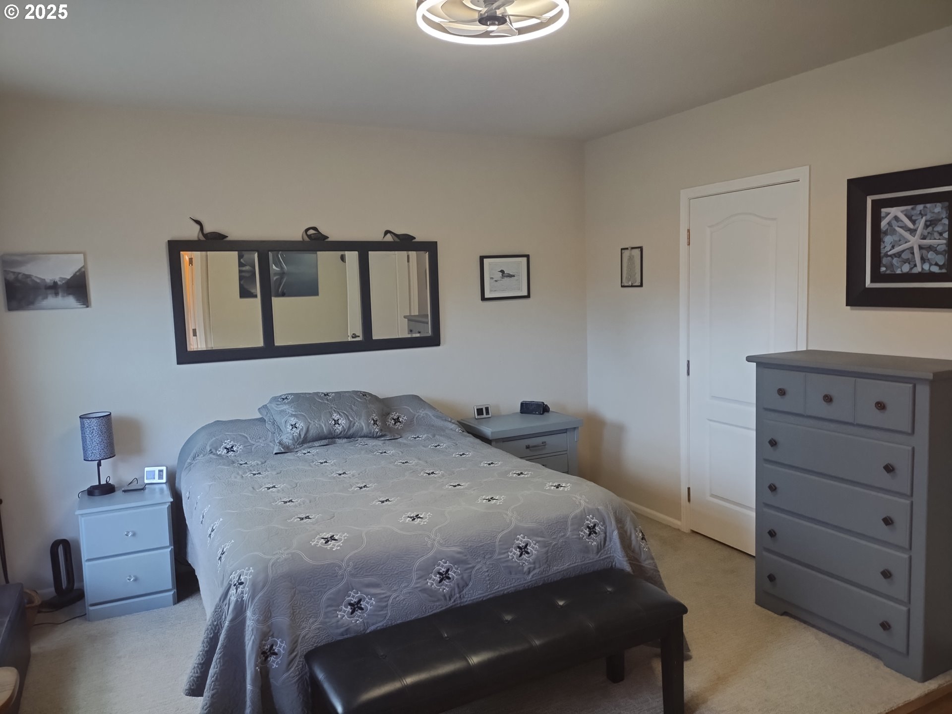 This 2023 Palm Harbor manufactured home features 2 bedrooms, 2 bathrooms, and a versatile den — perfect for a home office or guest room. Offering 1,296 sq. ft. of stylish coastal living on a pit-set concrete foundation with an attached two-car garage and covered entry, this home showcases quality construction and timeless design with a 4/12 roof pitch, 9-foot ceilings, and durable fiber cement lap siding.Though classified as “attached,” only the garage wall is shared — the living areas are completely separate, giving you the privacy and feel of a detached home.Inside, you’ll find quartz countertops, luxury vinyl plank flooring, and plush carpet in the bedrooms and den. Efficient year-round comfort comes from a 2025 Mitsubishi mini-split heat pump system.Enjoy a landscaped front and back yard with drip irrigation and a peaceful setting on the north end of Florence city limits — with all city utilities and services. Just a short walk to Fred Meyer and only 2 miles to Heceta Beach, you’ll have endless recreation right outside your door: sand boarding, hiking the Three Mile Prairie trails, walking the dunes, and foraging for mushrooms and berries.Don’t let this one pass you by — especially at this price!