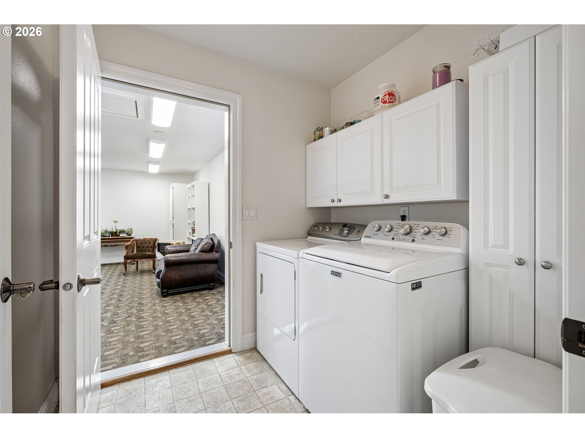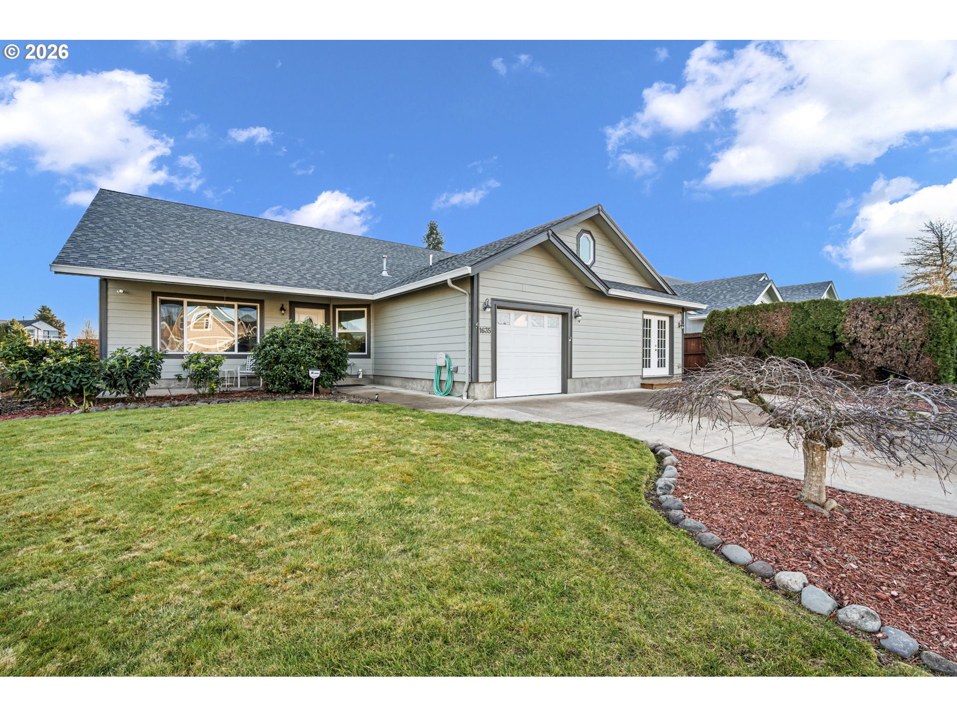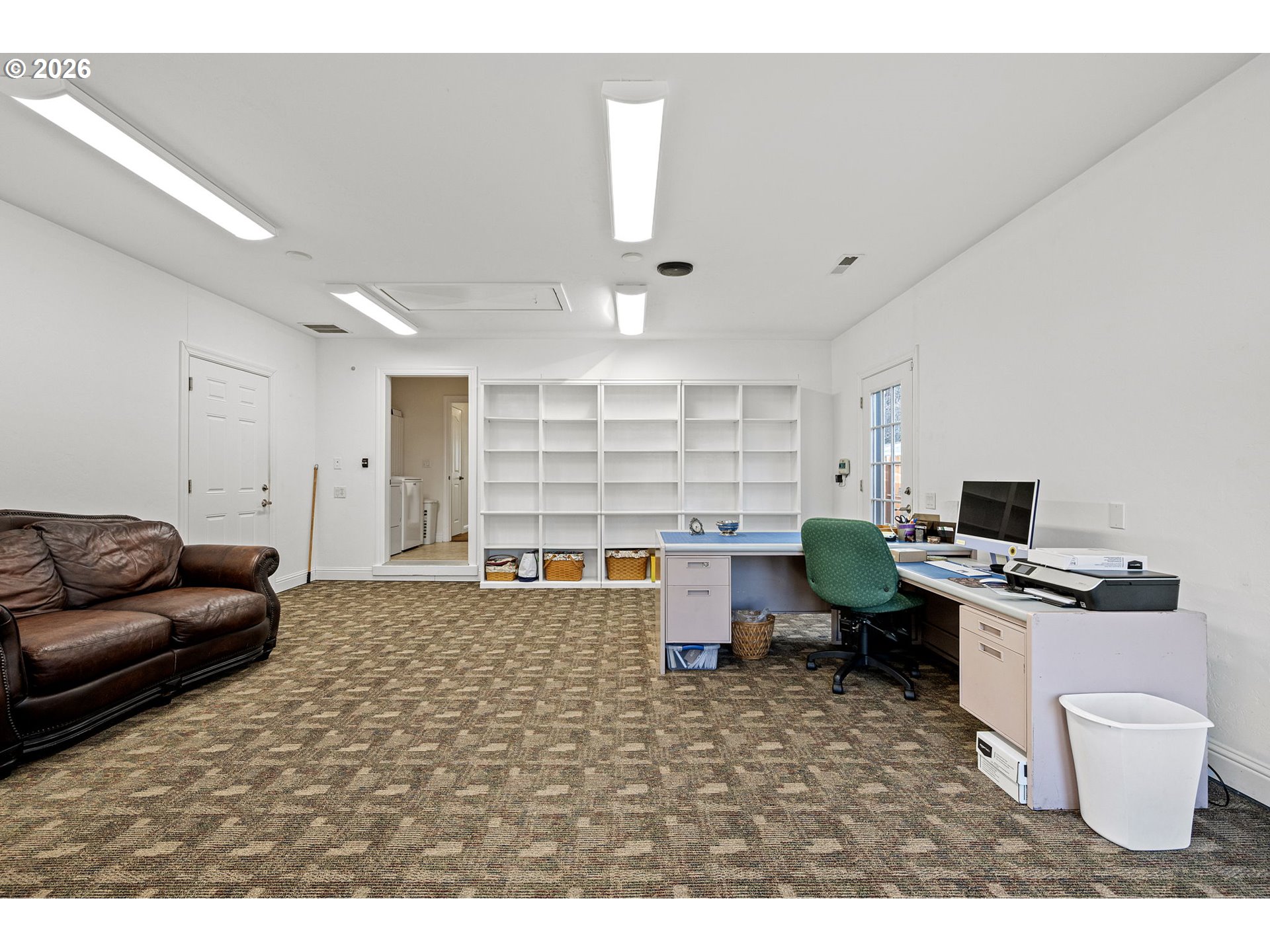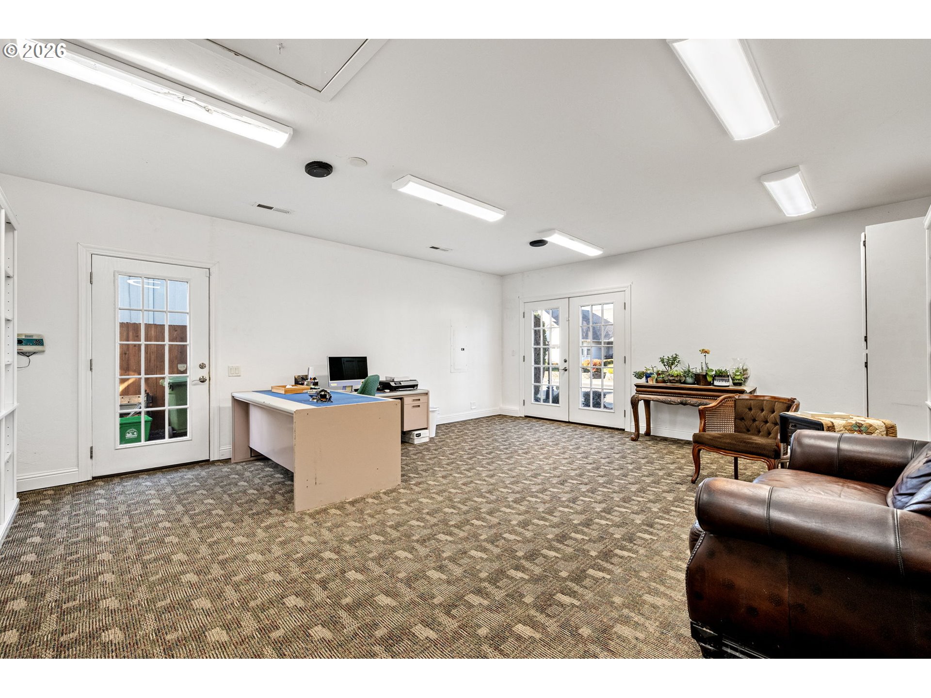 Welcome home to this well maintained and versatile property in a convenient Cottage Grove location. This 3 bedroom, 2 bath home also features a dedicated office, highlighted by beautiful etched glass doors that create an inviting and stylish workspace. The spacious kitchen offers plenty of room to cook and gather, complete with a pantry for extra storage and a large sink overlooking the backyard.Two of the three garage bays have been thoughtfully converted into a spacious studio, offering endless possibilities for a home business, art space, gym, guest area, or multigenerational living. A brand new roof installed in 2024 adds peace of mind, while the beautifully landscaped front and backyard create inviting outdoor spaces to relax or entertain. Ideally situated close to schools, parks, and historic downtown, this home blends functionality, flexibility, and location in one complete package.