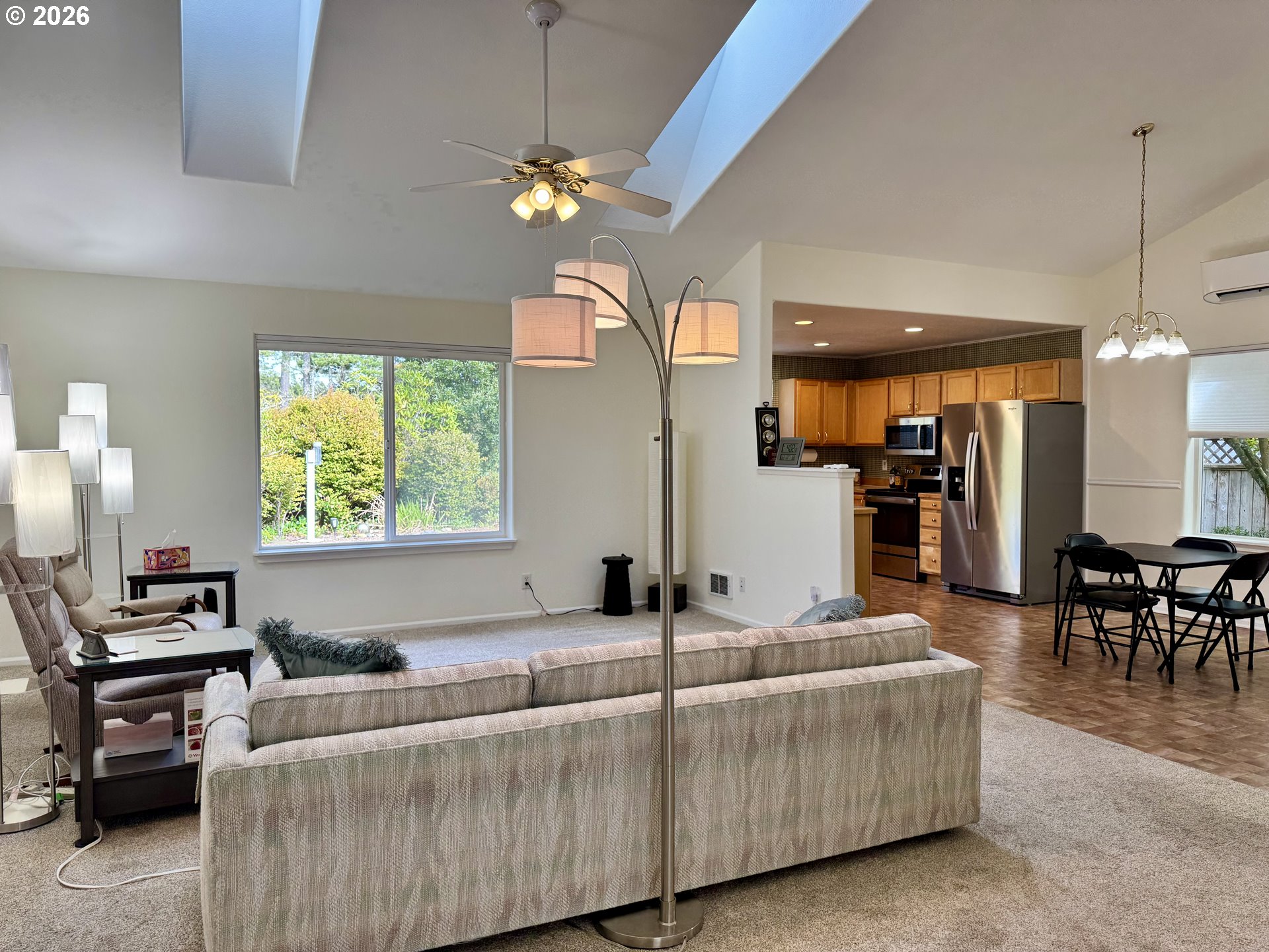 This incredibly well maintained 3-bedroom, 2-bath home offers 1,496 square feet of thoughtfully designed living space. Located in a desirable gated community, this property combines privacy, security, and easy living. Featuring a new roof (2023) and fresh interior and exterior paint (completed in 2025-26), this home has a clean, like-new feel throughout. Inside, you’ll find a functional layout and well-proportioned bedrooms. Skylights and a solar tube flood this home with natural light, while the new top down shades offer optimal privacy without sacrificing light. The ductless heat pump maintains a comfortable ambient temperature. The garage also features an extra deep workshop space. Outside, enjoy a low-maintenance backyard and intimate patio for relaxing. One of the standout features is the dedicated RV parking space, complete with a power hookup, located in a secure, gated adjoining lot—ideal for adventurers or those needing extra vehicle storage. Whether you're looking for a primary residence or a lock-and-leave lifestyle, this home offers the perfect blend of upgrades, practicality, and peace of mind in a sought-after gated setting.