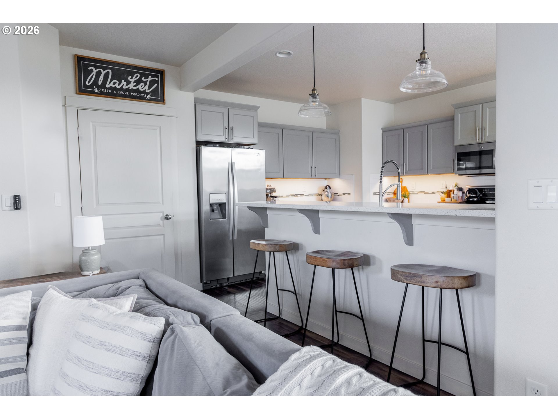 Don’t even think about swiping left. This home truly has it all. Terrific high end features and a view out the back of pasture and the coastal mountain range that just won’t quit. Enjoy not having any neighbors immediately behind you, except for Kevin the Peacock. Expand your gift of hospitality with the huge kitchen, beautiful quartz countertops, farm sink, and gas range. The built-in entertainment sound system is perfect for movie night and powerful enough that your neighbors won’t feel left out. You’ll appreciate other great features like shiplap accents, sliding barn doors, large loft, vaulted primary suite, walk-in closet, soaking tub, 3 car garage, 50 amp generator inlet, and a fenced back yard with an 8 ft gate for utility or other access. Relax on your spacious 25’ x 12’ deck, grab some grapes from your nearby grapevines and enjoy your quiet oasis. Come live life at the end of the road and take in the view for yourself!