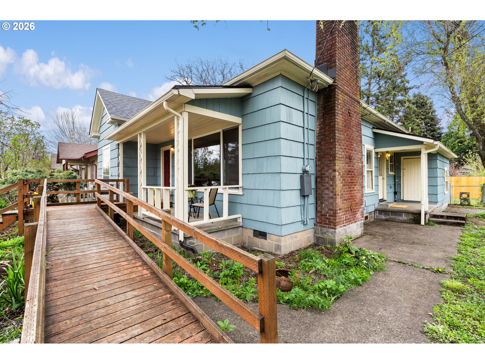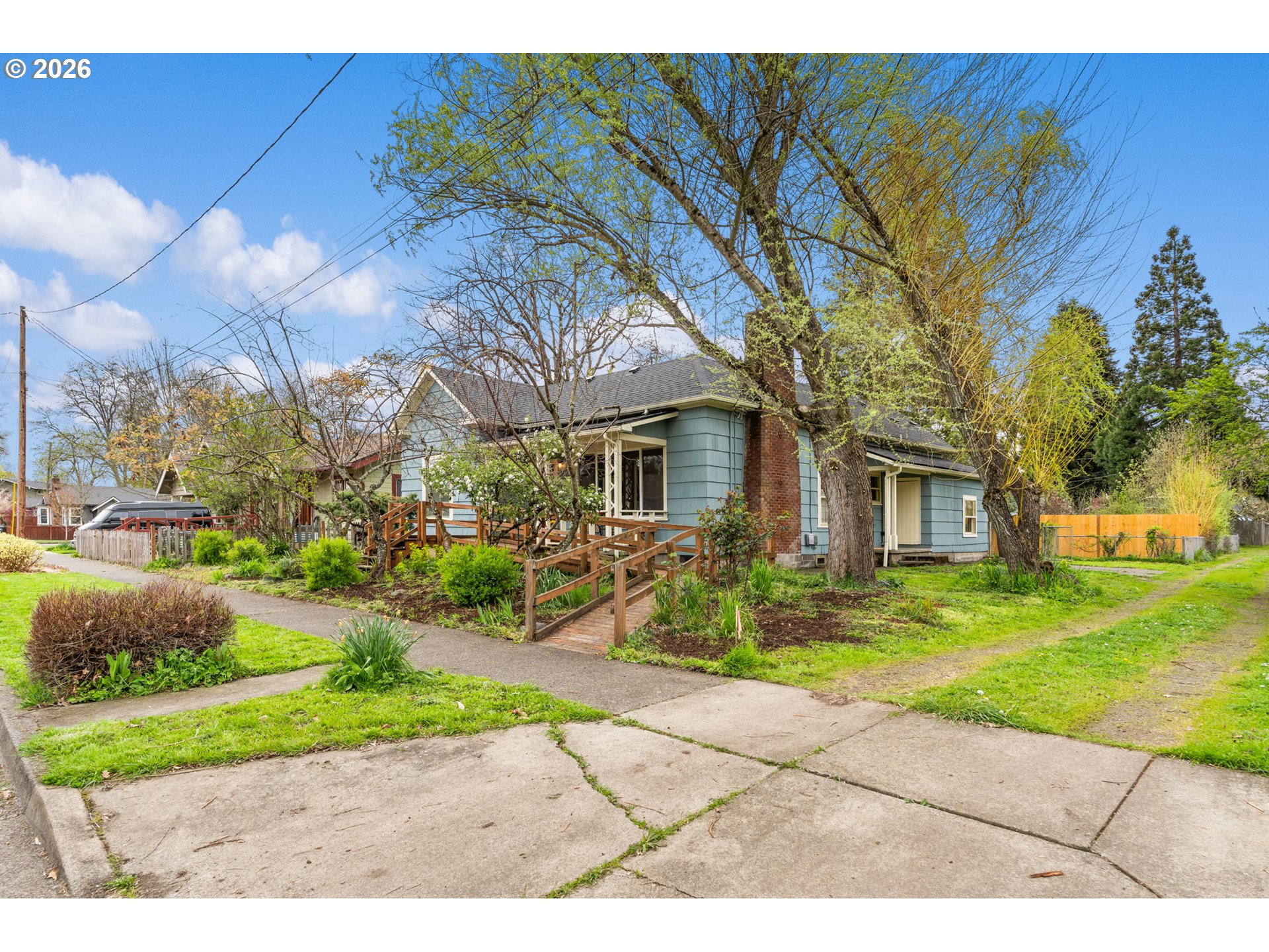 Now is your chance to own a vintage Eugene home with character, modern updates, and a brand new roof! This home keeps its charm with original 1800s wood floors, high ceilings, crown molding, picture rails, and a circa 1900 fireplace mantle. The kitchen blends classic style with stainless steel appliances and a brand-new fridge. Two front bedrooms, plus a third back bedroom with its own bathroom and private entrance, offer flexible living options. Upstairs, a bonus room provides even more versatility and could serve as a fourth bedroom or home office space. Recent updates include fresh paint, new water heater, and updated laundry and bathrooms with restored 1920s sink. Flat, low-maintenance yard with alley access, off-street parking, and accessible ramp. Down the street from Mathews Community Garden and minutes from schools, shopping, and the University of Oregon. Be sure and check out the back lot for sale, too (MLS#: 353450475). See you at the open houses 4/4 and 4/5 from 1-3PM!