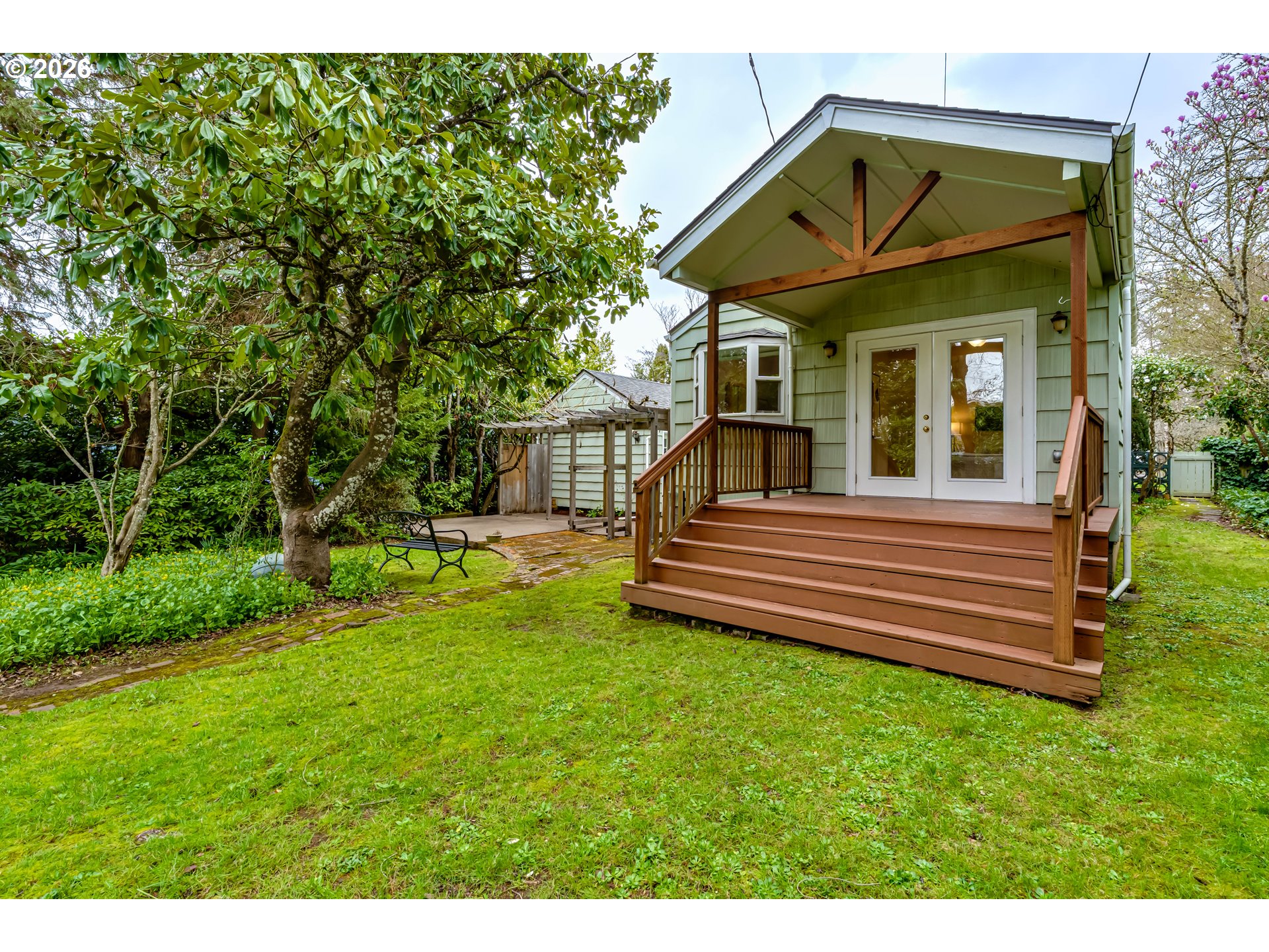 Welcome to this storybook cottage bungalow nestled in one of Eugene's most beloved neighborhoods — the Friendly Street corridor. Thoughtfully updated while retaining its timeless character, this 2-bedroom + office, 2-full-bath home is move-in ready and full of warmth.Rich wood floors flow throughout, complemented by fresh interior paint and a smart, efficient floor plan that lives larger than it looks. The updated kitchen and dedicated inside utility room add everyday convenience, while major systems have been refreshed for years of worry-free ownership — including a new electric panel (2025), newer heat pump and and a newer roof.The standout feature is the generous primary suite addition, a true retreat complete with French doors opening to a covered deck. Step outside and discover a lush, private backyard designed for both relaxation and inspiration — a patio, charming arbors, and abundant garden beds invite you to dig in, dream big, and make it your own.All of this just moments from the Fairgrounds, Hey Neighbor, Friendly Street Market, and the vibrant Friendly Street Garden. A rare blend of cottage character, modern updates, and an unbeatable location — this one won't last.
