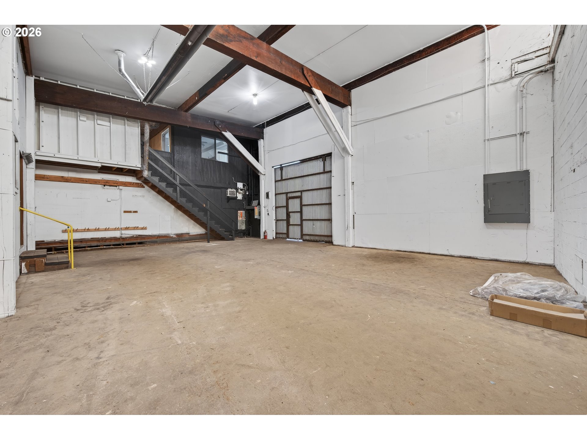 Industrial property in W. Eugene. Large warehouse use and office space with mezzanine. Excellent owner-user opportunity for storage, distribution, truck repair, or a multiple of other heavy industrial uses. Fenced yard with security system in place. Wood frame construction with high ceiling, heavy power, and turnaround space in yard. Multiple roll-up doors for access to separate areas of building. Office units with bathrooms.