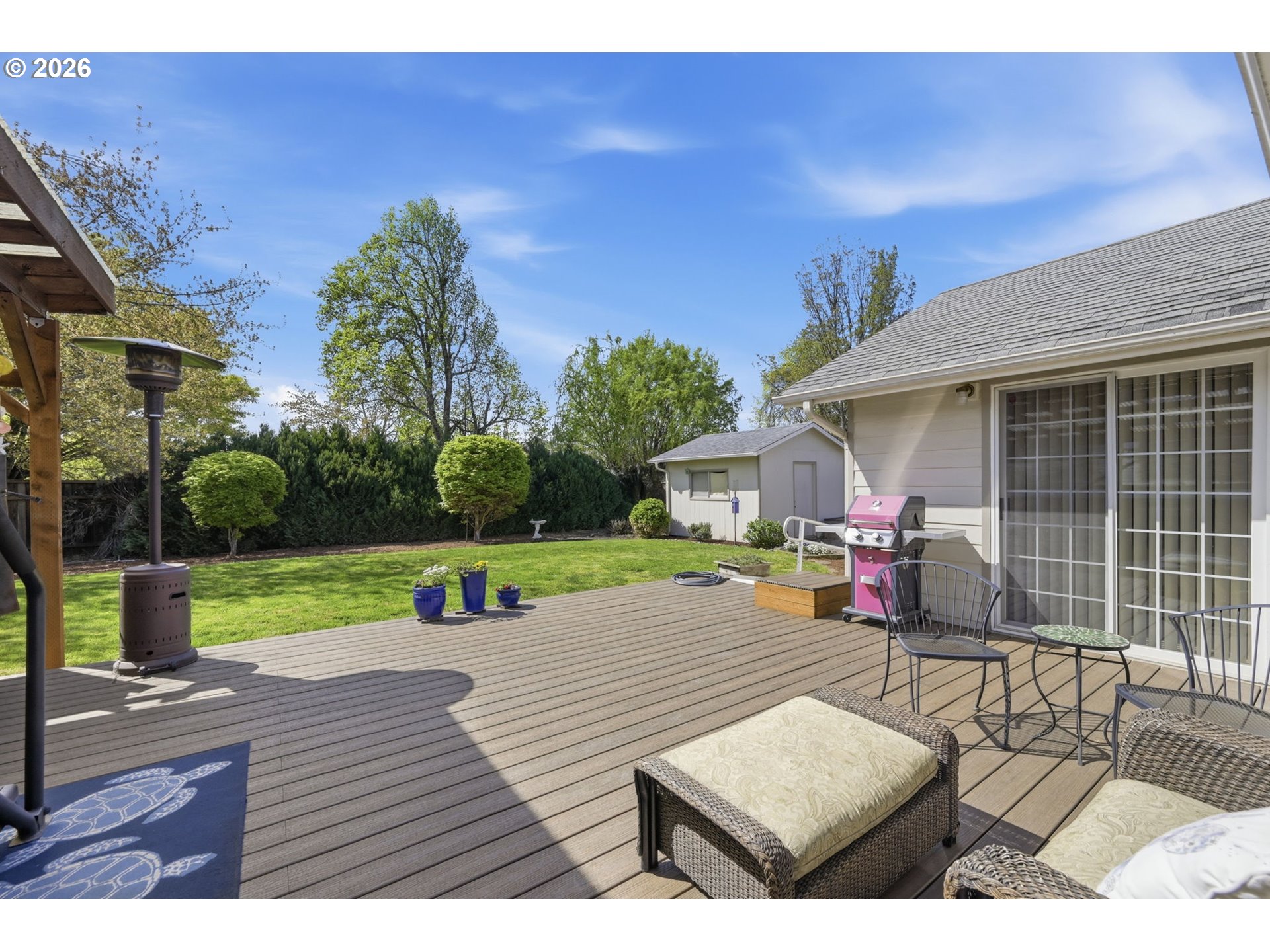 Welcome to this beautifully maintained 3-bedroom, 2-bath home offering over 1,500 square feet of comfortable living space, perfectly tucked into a quiet neighborhood with convenient access to shopping, dining, and schools.Step inside to find a warm and inviting interior featuring both a living room and a separate family room, plus a dedicated dining area—providing plenty of flexible space for relaxing, entertaining, or everyday living. A cozy wood-burning fireplace, vaulted ceilings, and abundant natural light add to the home’s charm. The spacious kitchen is a standout with ample cabinetry, and eat bar, pantry, and all appliances included—making it truly move-in ready. An interior laundry room adds extra convenience.The generous primary suite offers a private retreat with a walk-in closet and its own sliding glass door leading directly to the backyard and newly installed Trex deck.Outside, enjoy a thoughtfully upgraded outdoor space on a large 0.21-acre lot. The fully fenced backyard provides privacy and room to play, garden, or entertain. Unwind in the luxurious 14-foot swim spa—perfect for stretching, getting in a workout, or simply relaxing in your in your little bit of paradise while enjoying your favorite umbrella drink! Enjoy the charming gazebo—all while taking in beautiful views of the Coburg Hills. The property also features a 12x12 shop, front and back sprinkler systems, and plenty of room for RV/boat parking and toys!Additional updates include a recently serviced HVAC system, a 3-year-old water heater, roof cleaning and moss treatment, and brand-new roof vents—offering peace of mind for years to come.This move-in-ready home combines comfort, functionality, and exceptional outdoor living in a peaceful setting—don’t miss your chance to make it yours.Open House Sunday, April 12th from 1:00 PM - 3:00 PM!