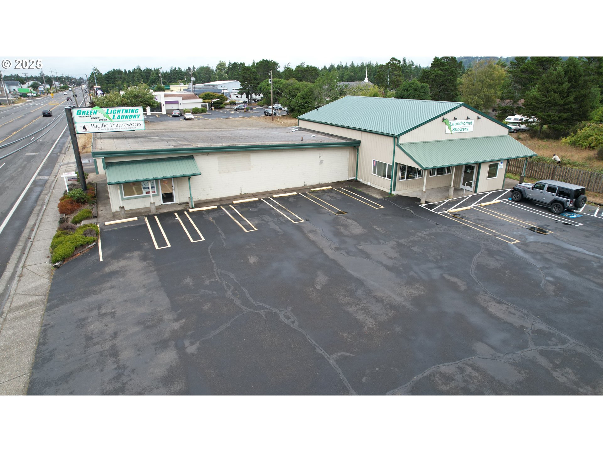 Excellent investment and business opportunity on a prime commercial property on Highway 101 with very high traffic count at your front door. Great accessibility to this prime half acre with a 4300 square feet retail and commercial building, a huge paved parking lot with 22 designated spaces and a large 1000 gallon propane storage tank. The front 2200 square feet of retail space has been recently updated with new double pane windows and premium laminate flooring. This space is leased at $3,000/month with a recent 10 year lease with escalation clauses.The rear portion of the building features a state-of-the-art laundromat with 18 Dexter washers and 10 double stacked dryers,(20) ranging from 20 to 90 pound capacities, all with recent upgrades to digital card readers. The laundry is ADA accessible with three card access showers and restroom. There is a room setup for an attendant to provide "Fluff and Fold" service with the potential of 25/30% revenue increase. There is a twelve camera "Ring" security system with full remote control to open and close access.