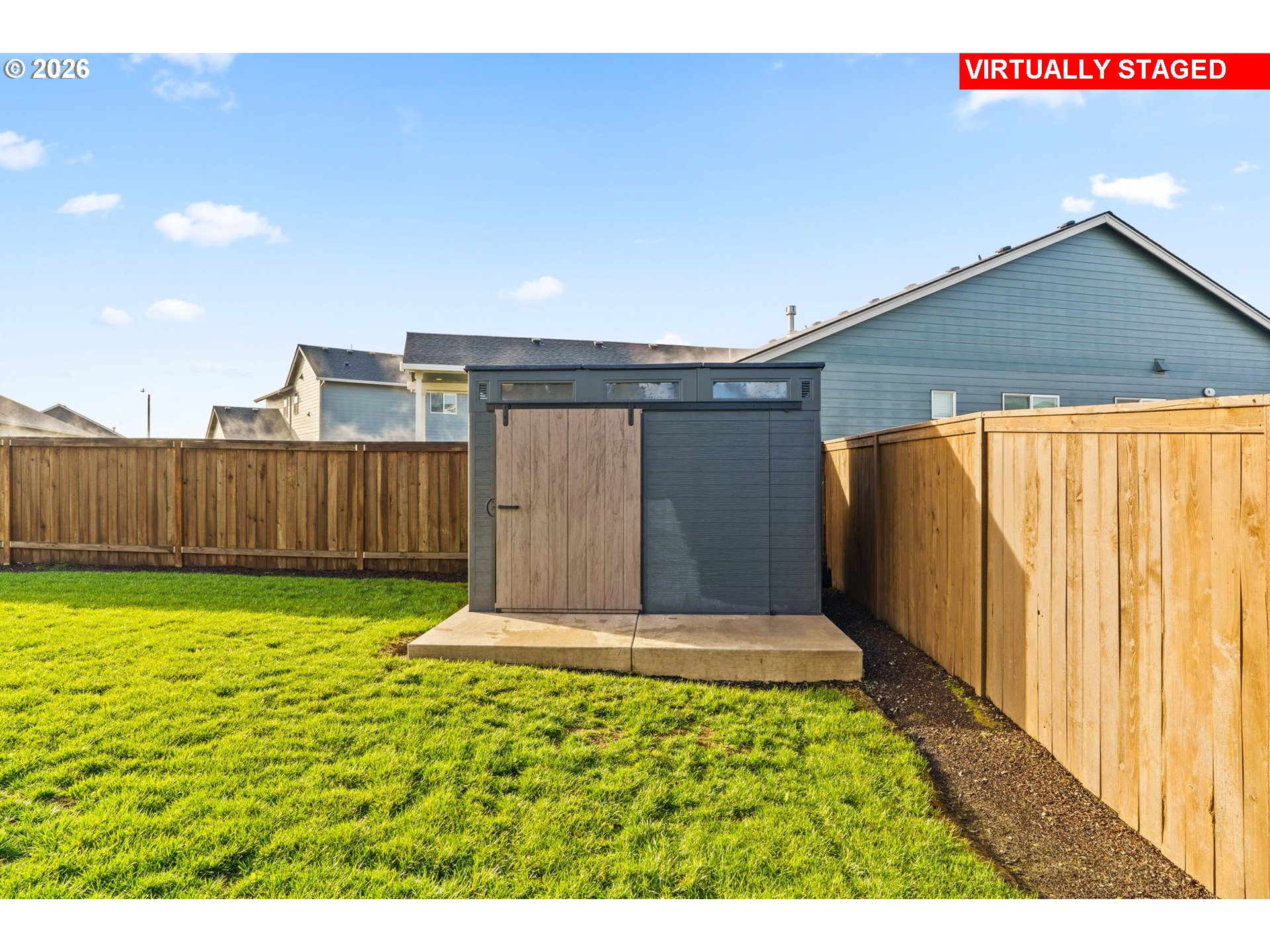 Fall In Love With This Inviting Single-Level Gem In The Heart Of Junction City! Classic Plantation-Style Shutters Add Timeless Curb Appeal To This Move-In-Ready 3-Bed, 2-Bath Home With A Smart Split-Bedroom Layout For Ultimate Privacy.Inside, A Spacious Great Room With Cozy Fireplace Flows Into A Stunning Modern Kitchen Featuring Warm Beech Cabinetry, Slab Quartz Counters, Oversized Island, 5-Burner Gas Range, Walk-In Pantry, And A Sunny Window Over The Sink. Bedroom 3 With French Doors Easily Becomes A Home Office Or Den.Step Outside To A Fully Fenced, Landscaped Yard With Automatic Irrigation, A Concrete Pad With Storage Shed, And On Demand Continuous Water Heater. Central A/C Keeps You Comfortable Year-Round. Home Is Agent Owned. This Delightful Home Blends Charm And Convenience—Schedule Your Tour Today!