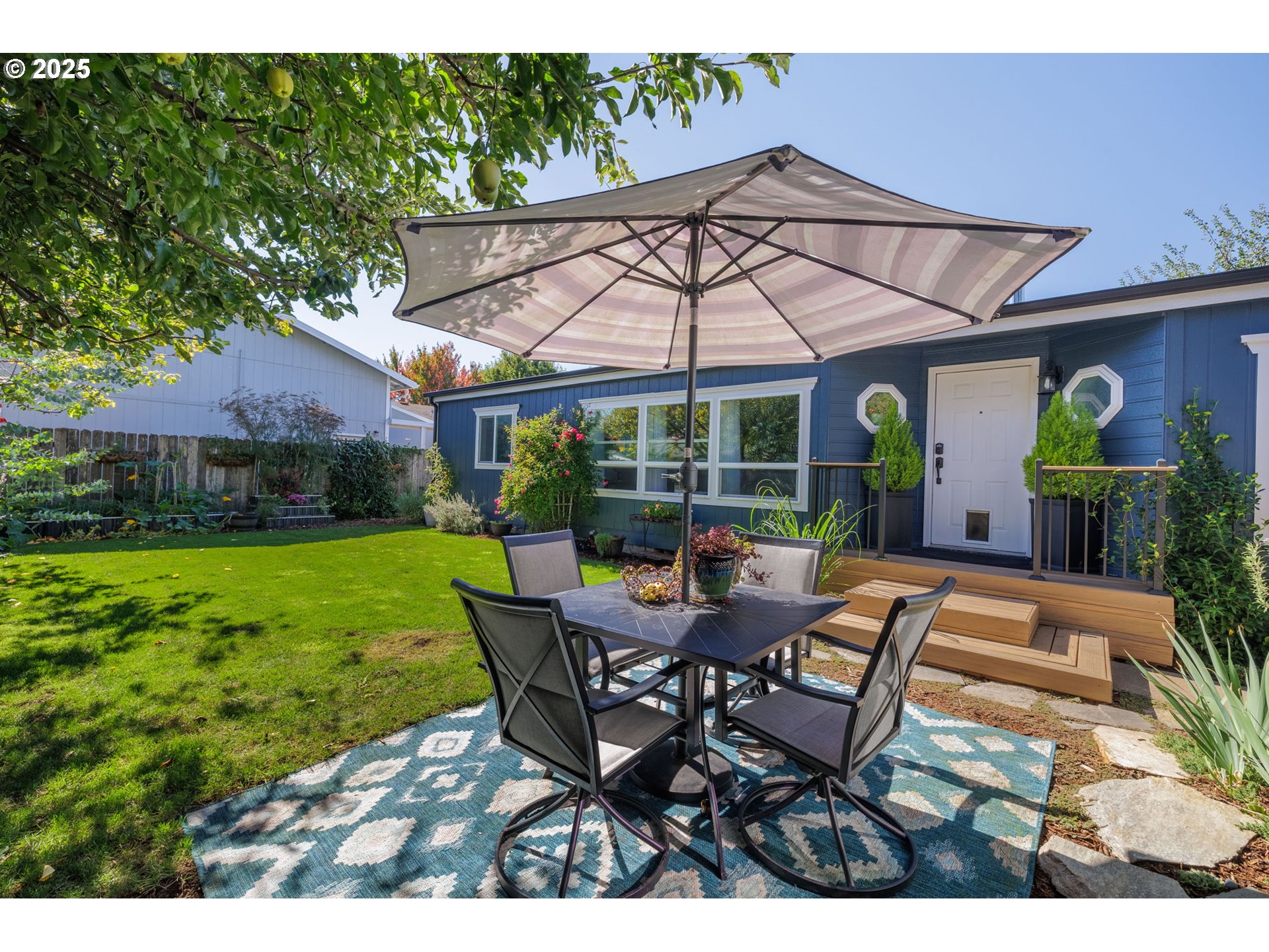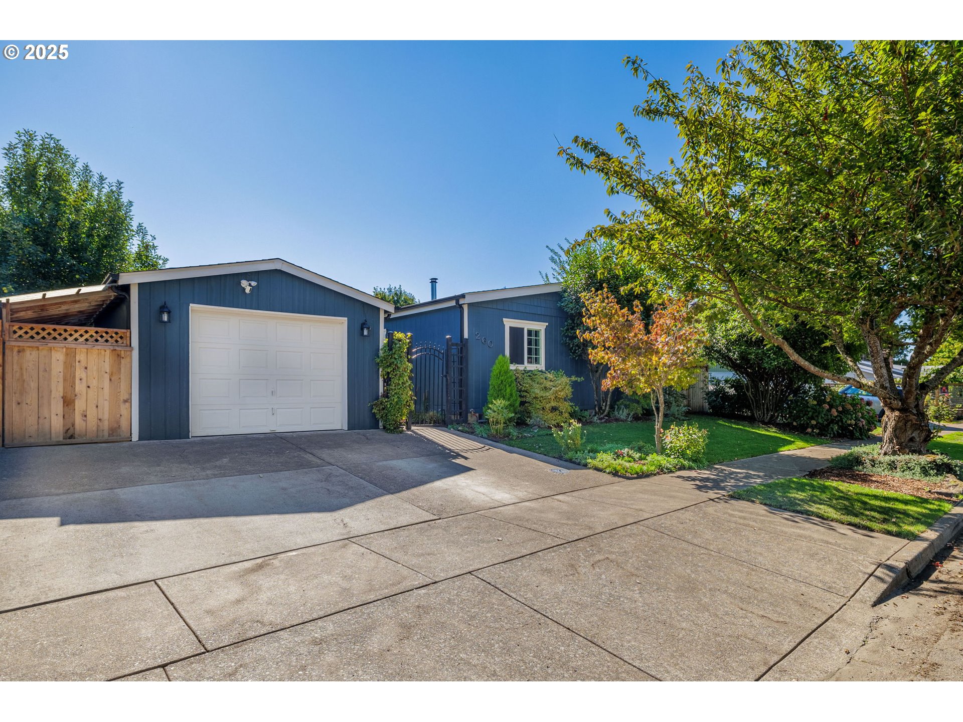 Move-in ready River Rd charmer with just a 5-minute walk to the Willamette River bike path. A flexible layout and a large primary suite with a walk-in closet and full bathroom. A second living room set behind French doors creates an ideal separate-living zone—great for guests, children, dual offices, or a quiet media/play space away from the main living area.Thoughtful exterior upgrades include new roofs on the house and garage (May ’22), new gutters/downspouts (Nov ’22), full exterior caulking and paint (Oct ’22), refreshed exterior light fixtures (’23), a new front metal gate (’23), a rebuilt front porch (Nov ’24), new screen inserts (’24), and new wood fencing with gates (’24) for privacy and curb appeal.Inside, the kitchen shines with a new dishwasher, range, and above-range microwave (Jul ’23), a tile backsplash (Apr ’23), and new skylight glass (Jan ’23). Comfort and efficiency are boosted by LED recessed lighting (Jul ’22), new light fixtures in bedrooms and baths, dimmer switches, updated GFCI receptacles in the bathrooms, a new light in the primary walk-in closet, and a guest bath vent with Panasonic fan/light.The detached garage is dialed for projects and storage with a work bench, insulation and drywall (Jan ’24), new lighting (Jan ’24), a new window with screen (Feb ’24), and durable flooring and storage racks (Feb ’24).Outdoors, enjoy mature perennial landscaping with apple, cherry, apricot, and plum trees; huckleberry, blueberries, and strawberries; herbs; new front and back sod with a stone path (’22); walkable mulch (’25); and raised garden beds (’22–’25)—an easy-care yard ready for Oregon seasons.Close to shops, dining, and travel routes, with the river path just minutes away.