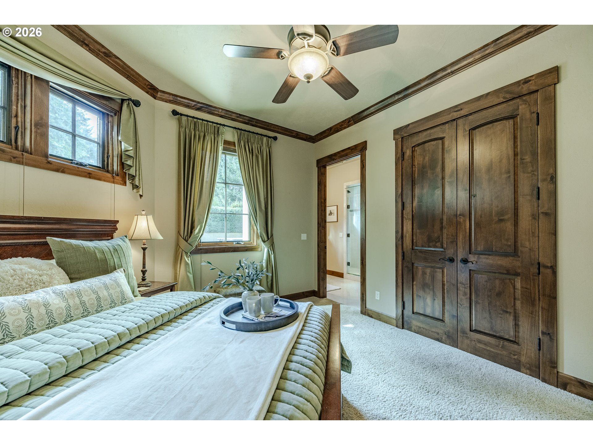 Extraordinary. Discover a private 32-acre estate just minutes from Eugene, where sweeping pastoral and mountain views meet an exceptional equestrian setting with a 6-stall barn and state-of-the-art indoor arena with viewing gallery. This breathtaking gated and fully fenced property features a custom villa designed by dC Design and built by dC Eugene, thoughtfully positioned to capture stunning views from nearly every window. Inside, the home showcases timeless materials and architectural details including hand-scraped hardwood floors, wrought iron accents, soaring vaulted ceilings with exposed wood beams, a dramatic floor-to-ceiling fireplace, custom built-ins, balconies, and carefully crafted finishes throughout. The gourmet kitchen is designed for entertaining with custom cabinetry, granite counters, high-end appliances, a welcoming breakfast nook, and a dedicated wine room. The beautiful primary suite offers a fireplace, spa-inspired bath with soaking tub, dual vanities, walk-in shower, and more. A second ensuite bedroom is located on the main level, while two additional bedrooms upstairs. The expansive family room features a wet bar, full bath, fireplace, and pool table room (pre-wired for a theater), with access to a veranda and patio connected by a spiral staircase—perfect for entertaining or potential guest quarters. Designed for both equestrian and recreational living, the estate also includes fenced pastures, a 6-stall barn with heated tack room, half bath, and hay storage, along with an oversized two-car garage and RV garage with hook-up. Whether riding, training, or simply enjoying the privacy and beauty of the surrounding land, this extraordinary property offers a lifestyle rarely found and just minutes from the heart of Eugene. Come experience the beauty and possibilities of Villa on Erickson—an exceptional opportunity to enjoy country estate living at its finest.