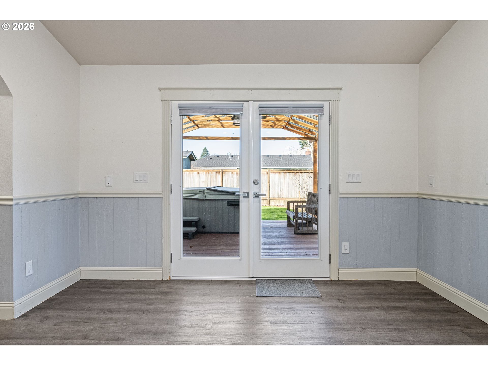 Beautifully updated home in the desirable Ferry Street Bridge neighborhood offering 4 bedrooms (or 3 plus a bonus/flex/office), 2.1 baths, and 1,731 sq ft of living space. A covered front porch welcomes you into bright, vaulted interiors filled with natural light.The main living areas including the living room, family room, dining area, and kitchen, feature durable luxury vinyl plank flooring, while the bedrooms are newly carpeted. The living room showcases an updated gas fireplace and remote-operated blinds.The open kitchen offers oak cabinetry, updated countertops, backsplash, sink, island, and a gas range, perfect for both everyday living and entertaining. French doors lead to a covered deck with hot tub and an expansive concrete patio, creating an ideal indoor-outdoor living space.The mature, landscaped yard includes a sprinkler system for easy maintenance. The primary suite features a walk-in closet and a beautifully updated bathroom.A detached shed/workshop includes its own electrical service and ductless heat pump/AC, providing excellent versatility. The two-car garage is equipped with a 220-amp outlet.Conveniently located just minutes from Oakway Center and Autzen Stadium, this turnkey home offers comfort, style, and functionality in a prime location.