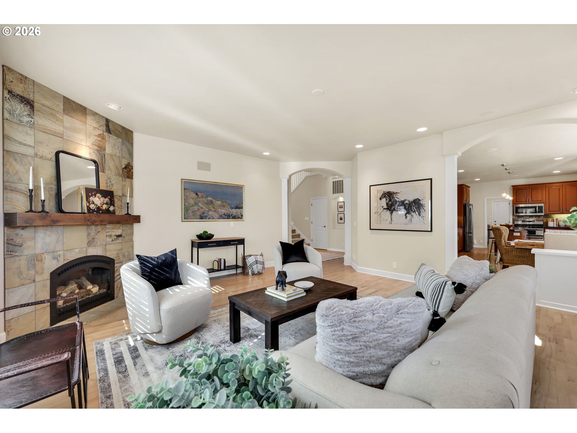 Located in the Riverwalk neighborhood of Valley River Village, this custom built two story home offers a refined layout with quality craftsmanship in a beautiful setting just steps from the Willamette River. The kitchen serves as a central gathering space with thoughtfully designed custom lighting and cabinetry, black leathered granite countertops and large island. Conveniently located sky-lit dining area offers its own dedicated bar and expansive views of architecturally designed private landscape. The living room centers around a floor-to-ceiling gas fireplace and French doors that open to the arbor covered terraced patio. The two story foyer with hardwood maple floors and arched doorways adds to the sense of space and fine detail. A dedicated office off foyer offers custom lighting a quiet workspace with views and access to covered side patio and peaceful landscape. A temperature controlled mudroom with exterior access and built in sink offers flexible use as a garden and craft area. Upstairs the primary suite offers retreat with a walk in closet, flexible nook, and balcony access. The ensuite bathroom includes travertine floors, custom cabinetry, granite counters, and soaking tub. One of the additional bedrooms features a walk in closet and balcony access, while another works well as a bonus or second living space. Outside, the fully fenced backyard offers privacy in a peaceful setting, with covered patios and yard space designed for both everyday use and gathering. A natural water feature creates tranquility. The arbor covered patio includes dimmable lighting and gas hookups. Additional highlights include a central vac, security system, new windows, doors, exterior paint, and a spacious two car garage. Set within one of Eugene’s more established neighborhoods, this custom home pairs thoughtful design with a location that offers easy access to the river paths, nearby parks, and everything the Riverwalk area has to offer.