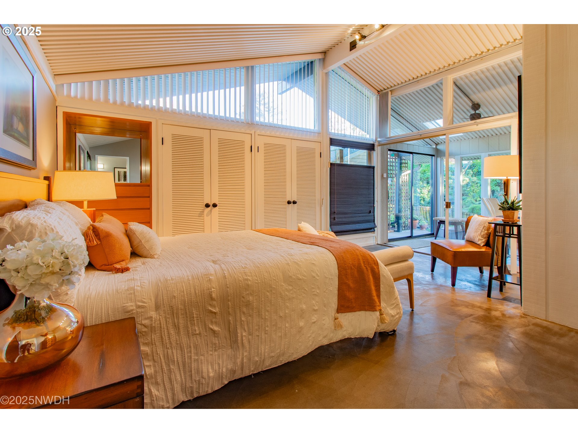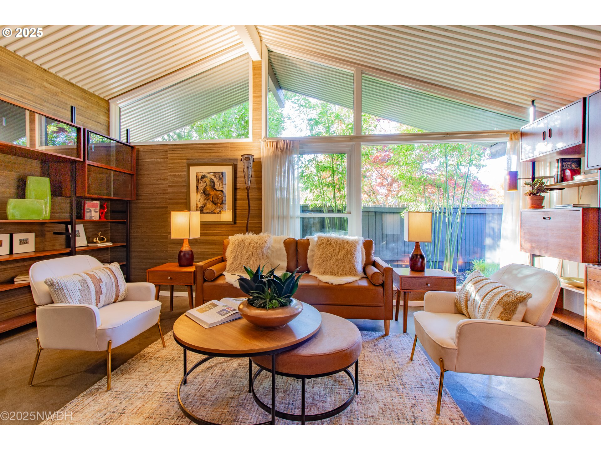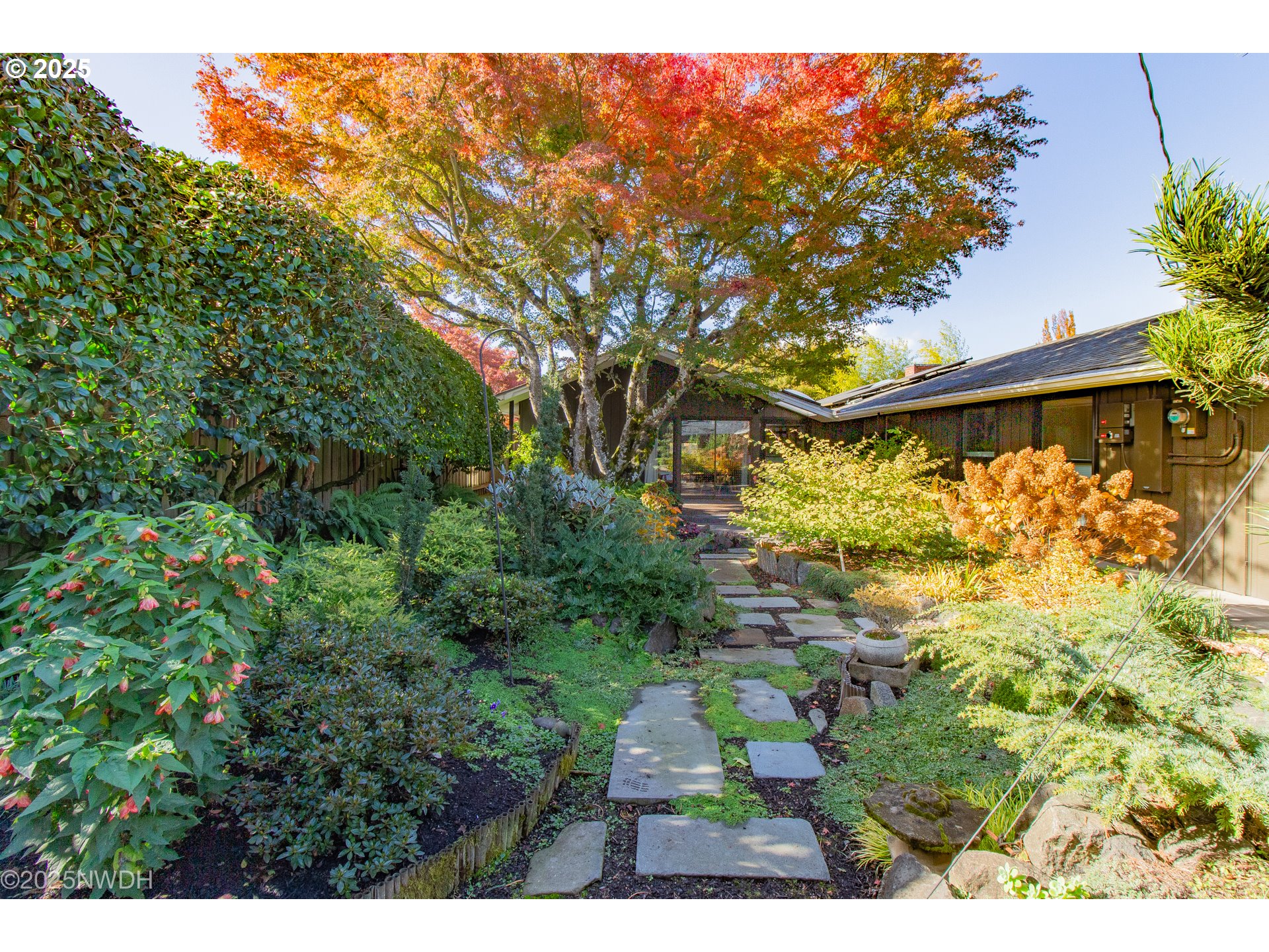 Impressive Mid-Century Modern home, thoughtfully updated and located in a prime neighborhood. Designed by Hugh Stubbins and featured in Better Homes and Gardens as the "Idea Home of the Year" in 1955. The home features floor-to-ceiling windows as well as vaulted and open beam ceilings, engineered hardwood and distressed cement floors, stylishly updated baths, skylights and clerestory windows, new stainless steel appliances, a gas cooktop and a butler's pantry. The spacious, vaulted primary suite with attached sunroom provides access to the Japanese-style cedar spa. Four sets of oversized sliding glass doors provide lots of light and connection to multiple patios and beautifully landscaped gardens. The gem, an inspired Japanese tea garden, provides flagstone paths, numerous specialty plants and is shaded by a gorgeous Japanese Maple. The inviting space is completely private and is a perfect place to relax and unwind, or host a tremendous party! The flexible, multi-use floor plan includes a one bedroom mother-in-law apt with kitchenette and separate entrance, or incorporates seamlessly as a family room, office/den with wet bar and a 4th bedroom. The large .25 acre lot is fully fenced and irrigated and includes an attached garden shed with sink and potting bench. This one-level home will easily keep you cozy and warm with radiant floor heating, an electric fireplace and a four-head ductless heat pump system. Additional updates include: a new roof 2019, electrical panel, exterior paint 2021, new efficient windows and 12 solar panels for auxiliary power. Classic features and modern amenities combine to create an exceptional MCM living experience. Situated in a quiet, desirable location, very walkable and just minutes from parks, shopping (Trader Joes) restaurants and more, this is a rare find! OPEN HOUSE Nov 1st & 2nd, Sat 1-3 & Sun 1-3.