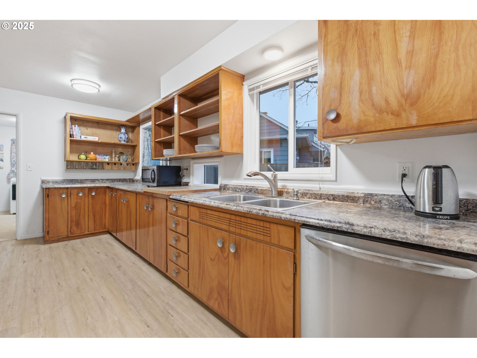 OPEN HOUSE SUNDAY NOV 23 12-2PM. This well loved home offers single level living on a large lot just across from a park. Additionally the home borders a small parcel of county owned greenspace providing additional space and distance between the neighbors.The home offers 1365 square feet with three bedrooms, one and a half bathrooms and a two car garage. Enjoy gleaming wood floors throughout much of the home with plenty of natural light from the updated windows. The spacious 19X15 living room enjoys a gas fireplace insert and floor to ceiling stone hearth. The updated kitchen is incredibly roomy with an abundance of cabinetry, LVP flooring, stylish hardware, and updated stainless steel appliances including a gas five burner range, refrigerator and dishwasher. Not to be missed is a roomy laundry room complete with nearly new washer/dryer set, a laundry sink and a separate half bath for guests.The south hall leads to three comfortable bedrooms each offering full closets, wood floors and updated lighting. The nearly 10,000 square foot lot is beautifully landscaped front and back. This home adds raised garden beds to its list of many amenities. The fenced backyard has a large patio accessed from the dining room. There is a covered patio at one end of the yard which would be a great area for storage or year round outdoor enjoyment. A great attribute is a irrigation well that has provided abundant water to the owners.This home has been amazingly well cared for. Ask your broker for the amenities list available through the listing service. Additional updates have included leaf filter gutters, light fixtures, ductless heatpumps in 2023, wall heaters, refinished bathtub/shower surround, floor and ceiling insulation, installed gas line to the house, gas fireplace insert in 2022, and so much more.Please check out the property website and video for more details.
