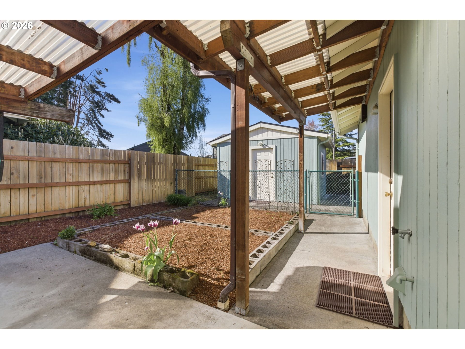 Well cared for 3 bed, 2 bath home on a spacious corner lot with a layout that feels open and easy to live in. The main living area features vaulted ceilings and great natural light, creating a comfortable and inviting space. The kitchen offers plenty of storage and workspace, and the home overall reflects consistent pride of ownership with a clean, move-in ready feel. Outside offers a large covered patio extending your living space year-round and a beautiful low-maintenance yard fed by a sprinkler system for easy upkeep. There’s ample parking for multiple vehicles, including RV with gated access, plus a detached shop/tool shed that adds flexibility for storage, hobbies, or workspace. Solid home in a great setting, ready for its next owner to move in and enjoy