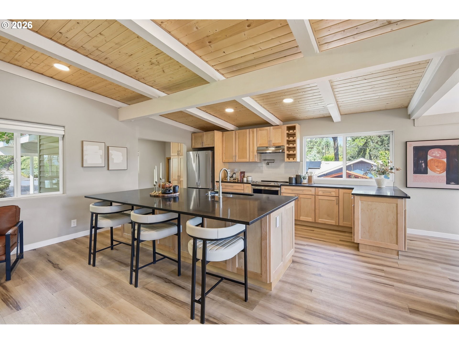 Beautifully updated and versatile 4-bedroom, 2.5-bath home offering 3,161 sq ft with excellent dual-living or income potential! The fully remodeled upper level showcases modern upgrades throughout, including a ductless heating and cooling system, custom kitchen cabinetry, stylish countertops, stainless steel appliances, durable LifeProof LVP flooring, and updated vinyl windows. Enjoy a thoughtfully designed layout with abundant natural light and contemporary finishes.The luxurious primary suite features a stunning bathroom remodel with an oversized roll-in tile shower, elegant freestanding soaking tub, and high-end finishes—creating a true spa-like retreat.Downstairs, the walk-out basement provides incredible flexibility with its own exterior entrance, full second kitchen, bathroom, two bedrooms, and spacious great room—ideal for multi-generational living, guest quarters, or potential ADU setup.Additional highlights include a newer roof and a layout that offers both comfort and opportunity. Conveniently located in Eugene, this home blends modern updates with functional living space - ready for it's next owner!