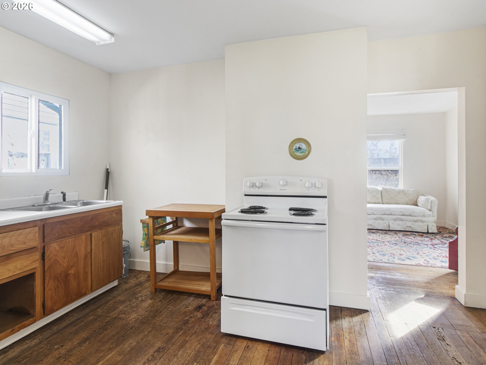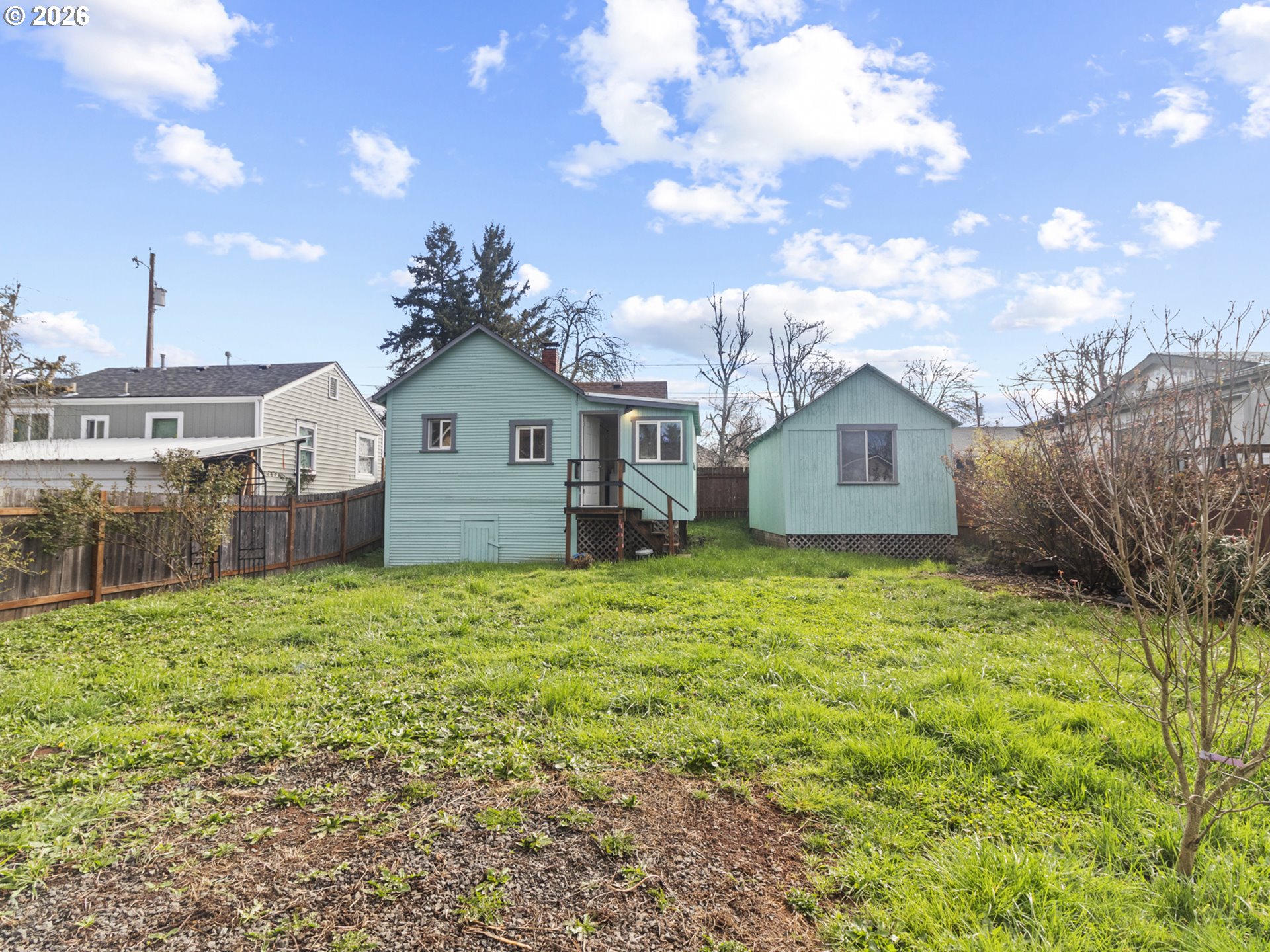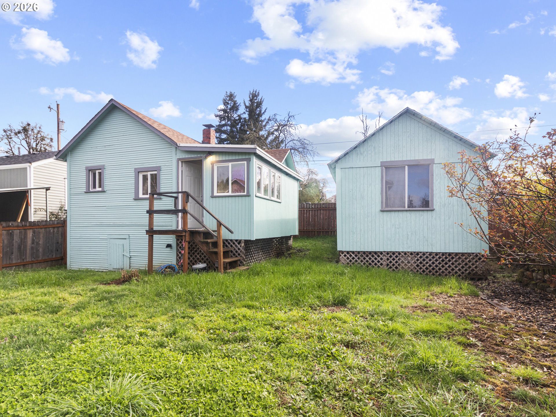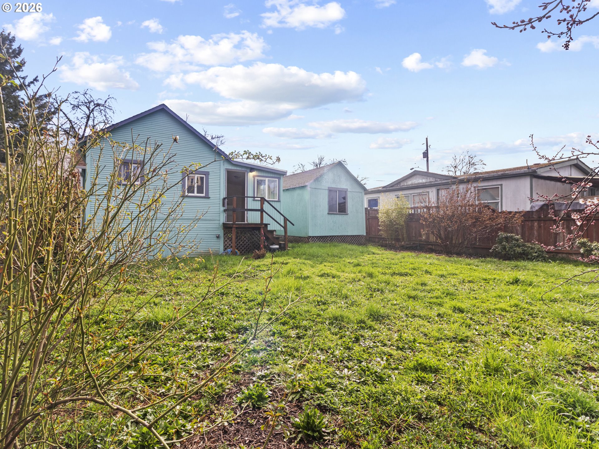 Sweet little cottage that's perfect for a DIY buyer or someone looking to build some sweat equity. This property has great upswing potential — it just needs a little lov'in to really shine. With one bed and one bath, the space has a surprisingly good flow with nice-sized rooms that make the most of every square foot. You’ll love the light bright space and appreciate the double pane windows. The enclosed back porch adds very usable square footage, including space for your washer and dryer — a practical bonus that keeps the main living areas open and functional. Step outside and the real opportunity unfolds. The large, blank-canvas yard is ready for whatever you dream up — raised garden beds, a shed, room for two or four legged friends, or even a future extension down the road. Enjoy 2 off street parking spots plus the detached garage is equally versatile, perfect as a workshop, extra storage, or converted back to a functional garage. Location-wise, you're sitting pretty with easy access to everything you need. Essentials are right down the road, Main Street is minutes away, and Highway 99 keeps you connected whether you're commuting or running errands. Haskell Park and the river are a quick walk for those evenings when you need to unwind after a day of projects. Opportunities like this don't last so stop paying rent and start building something that's yours.