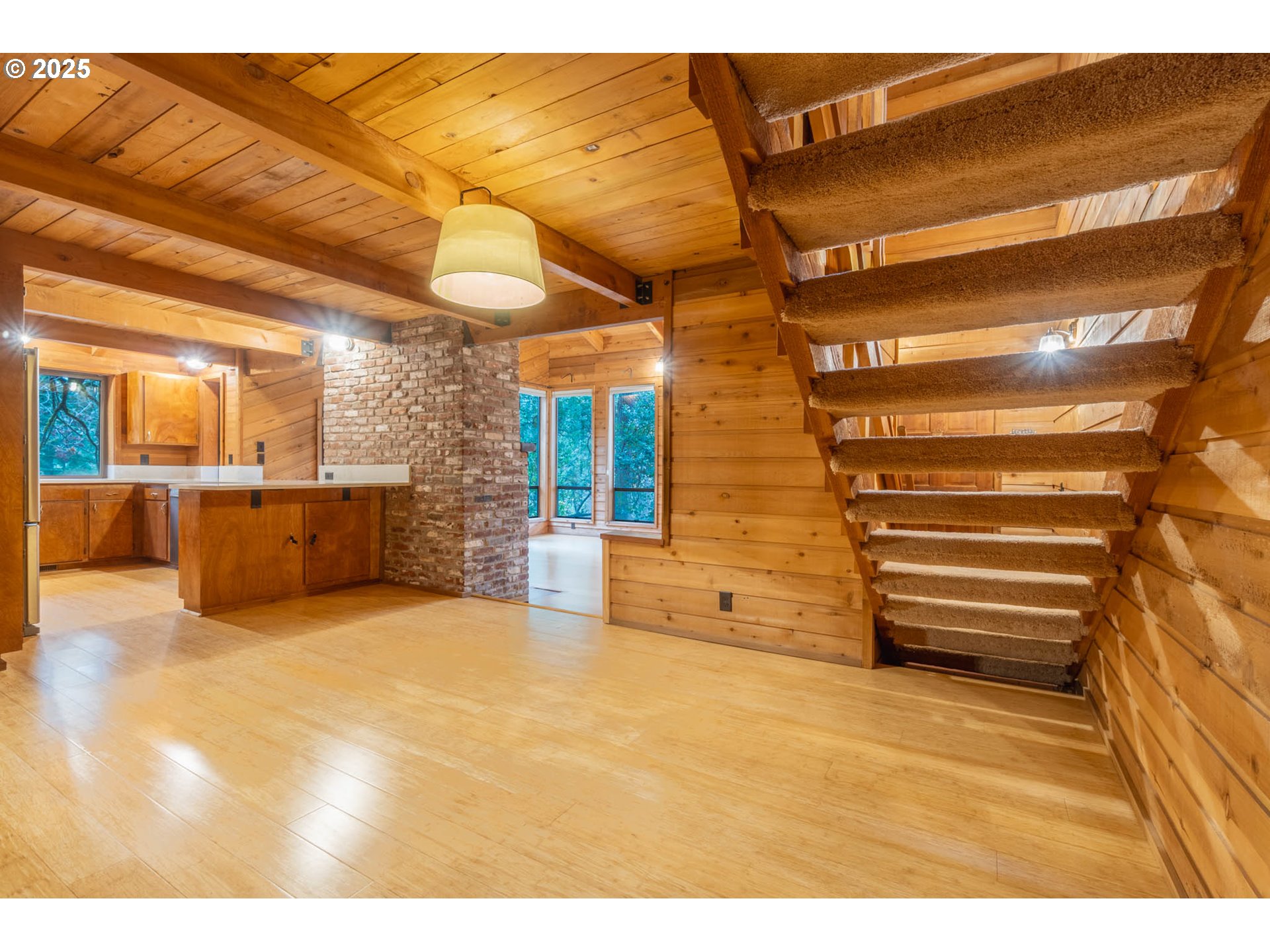 Tucked in a quiet pocket near Hendricks Park, this cedar Northwest Contemporary blends privacy, nature, and modern updates. The soaring exposed-beam ceiling creates an airy main level, while the spacious loft serves as the primary suite—complete with a full bath and very large closet. The home was fully refinished in cedar inside and out, giving it a warm, timeless look and offering excellent durability with minimal upkeep. Recent 2025 upgrades include quartz countertops, new fixtures and faucets, and refreshed electrical throughout. A large garage provides ample storage or workspace, and the backyard seems like your own private forest retreat—yet you’re still minutes from the U of O and East Eugene conveniences.