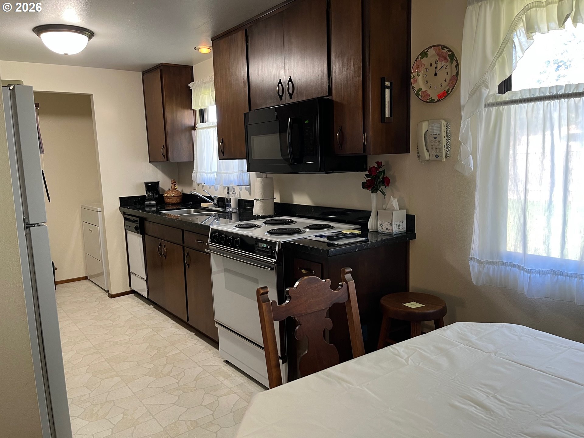 Sweet Single-Level Ranch in Camelot Neighborhood, located near Willamette River and bike path and Owossow bike bridge. Welcome home to this well-maintained 1965 single-level ranch offering 3 bedrooms, 1 bathroom, and 1108 sq ft of comfortable living space. Located in the desirable Camelot neighborhood, this home blends classic charm with thoughful features throughout. Enjoy both a living room and a family room, with sliding glass doors that open to a great backyard-perfect for entertaining or relaxing outdoors. The kitchen stands out with a Basaltinaglased vava stone countertops quarried from Italy, known for its execeptional durability and resistance to scratches. Radiant ceiling heat for warmth. Additional highlights include a 2-car garage, storage shed, and a cement slab along the side of the home providing extra parking for an RV, boat, toys, or additional vehicles. A new roof installed in fall 2025 adds peace of mind for years to come. This cozy home is ready for new owners and is full of potential. Don't miss it!