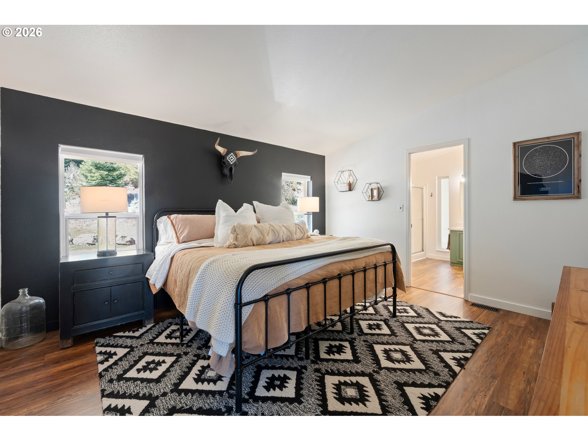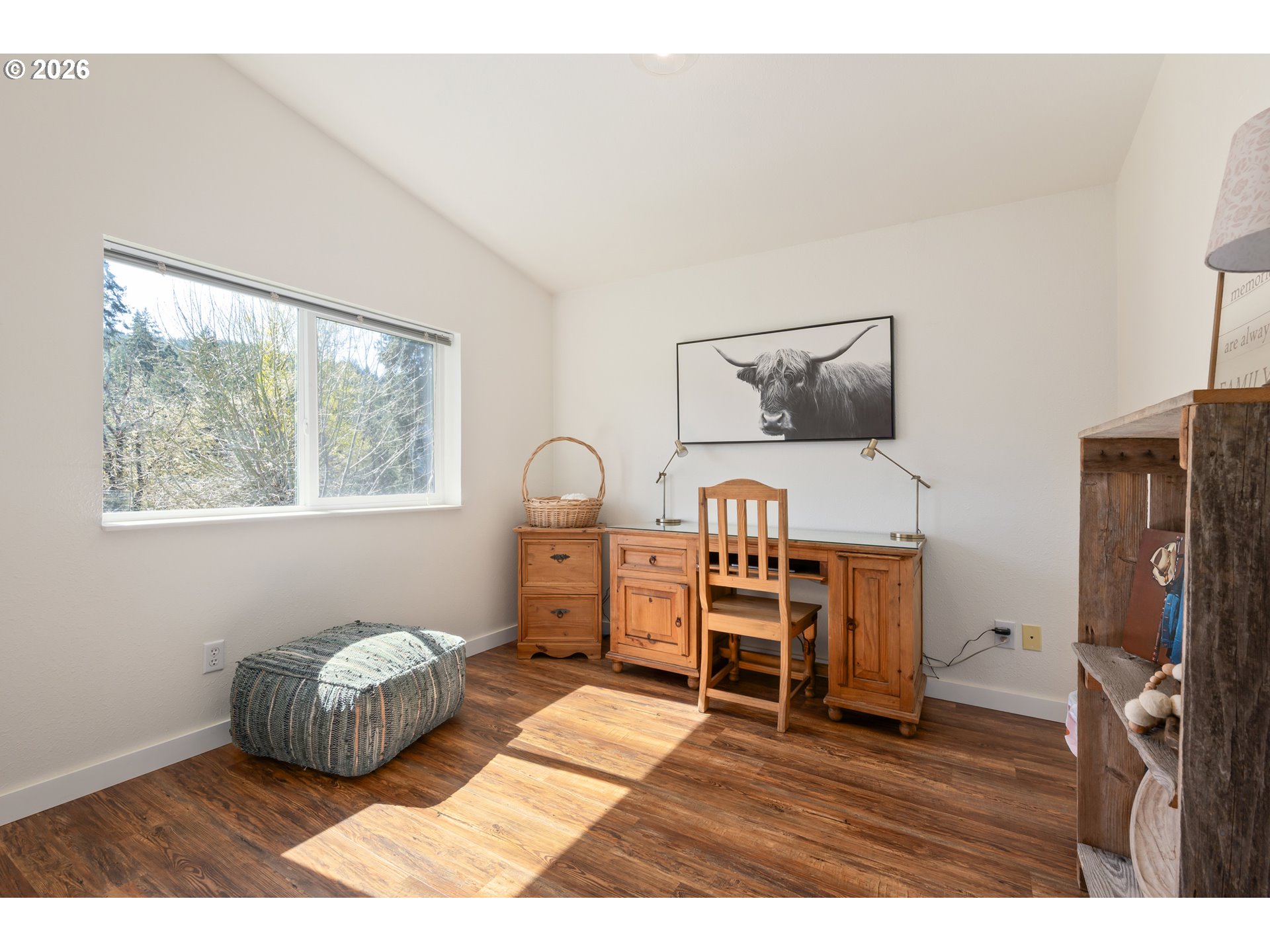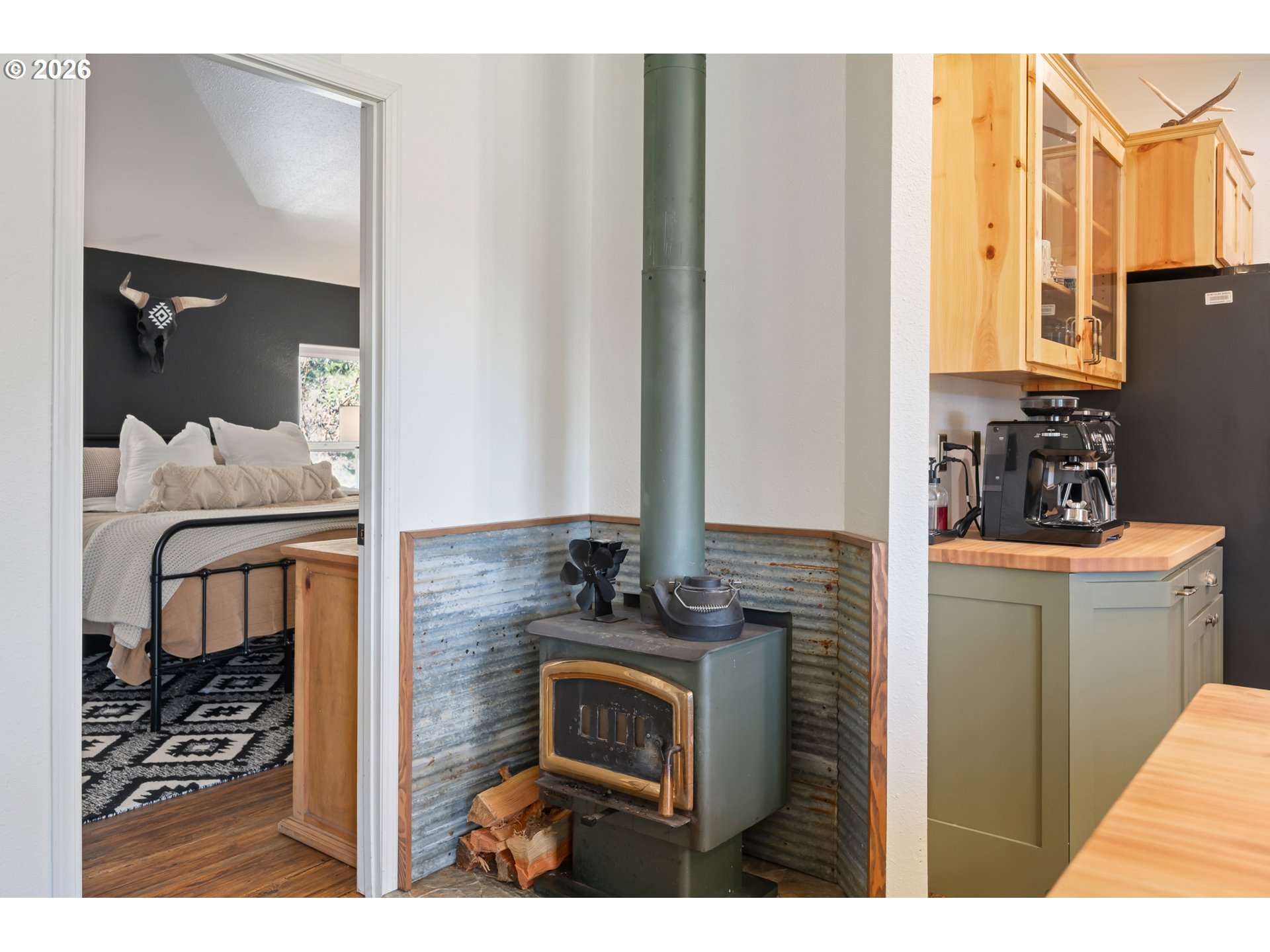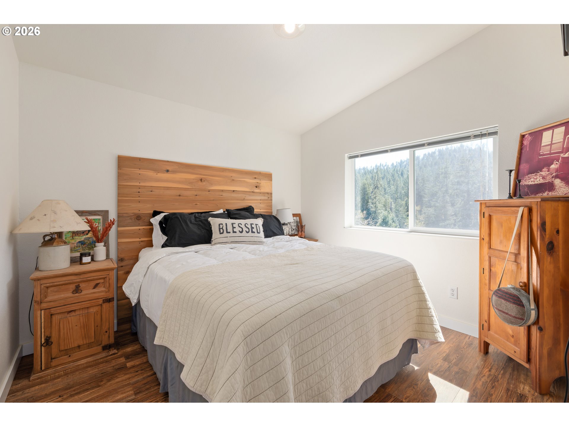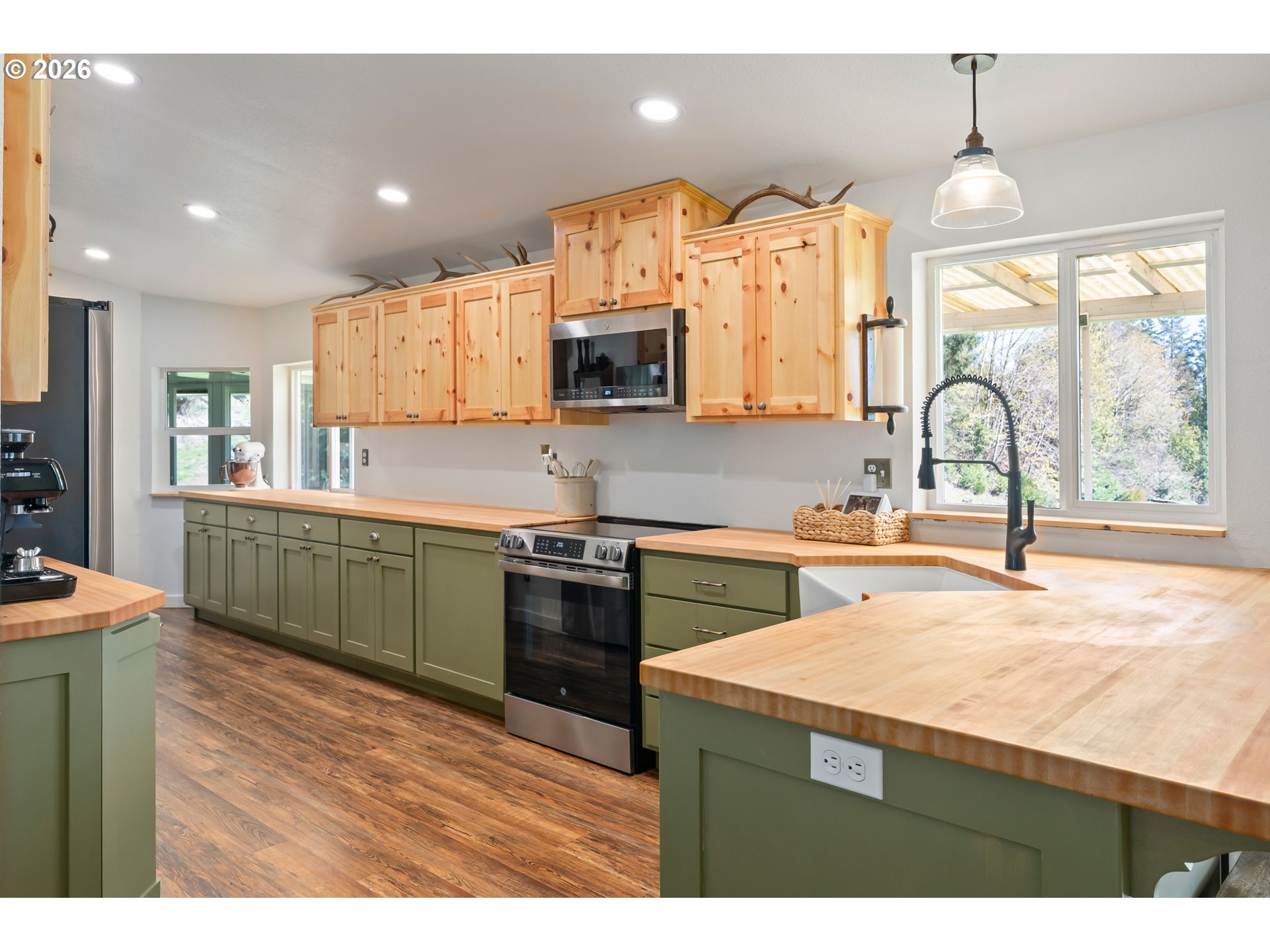 Nestled in the rolling hills of Cottage Grove, this beautifully remodeled single level home offers the perfect blend of modern comfort and peaceful country living on 19 picturesque acres. With three bedrooms and two bathrooms, this thoughtfully updated home is move-in ready and designed for both comfort and functionality.Inside, you’ll find vaulted ceilings and an open, airy feel complemented by new luxury vinyl plank flooring, fresh interior paint, custom cabinetry, butcher block countertops, and new stainless steel appliances. A spacious pantry and storage area provide ample room for organization, while the large mudroom with washer and dryer hookups adds everyday convenience. Cozy up by the woodstove and enjoy the warmth and charm it brings to the living space. Step outside to a wrap-around porch where you can take in breathtaking sunset views and the beauty of your own park-like setting. The property features fruit trees, mature landscaping, and sweeping views of the surrounding hills, perfect for those seeking privacy and tranquility. Additional features include an attached one car garage and a detached shop complete with its own bathroom, offering excellent space for hobbies, projects, or additional storage. All this, just minutes from town and easy access to I-5, providing the ideal balance of rural serenity and modern accessibility.