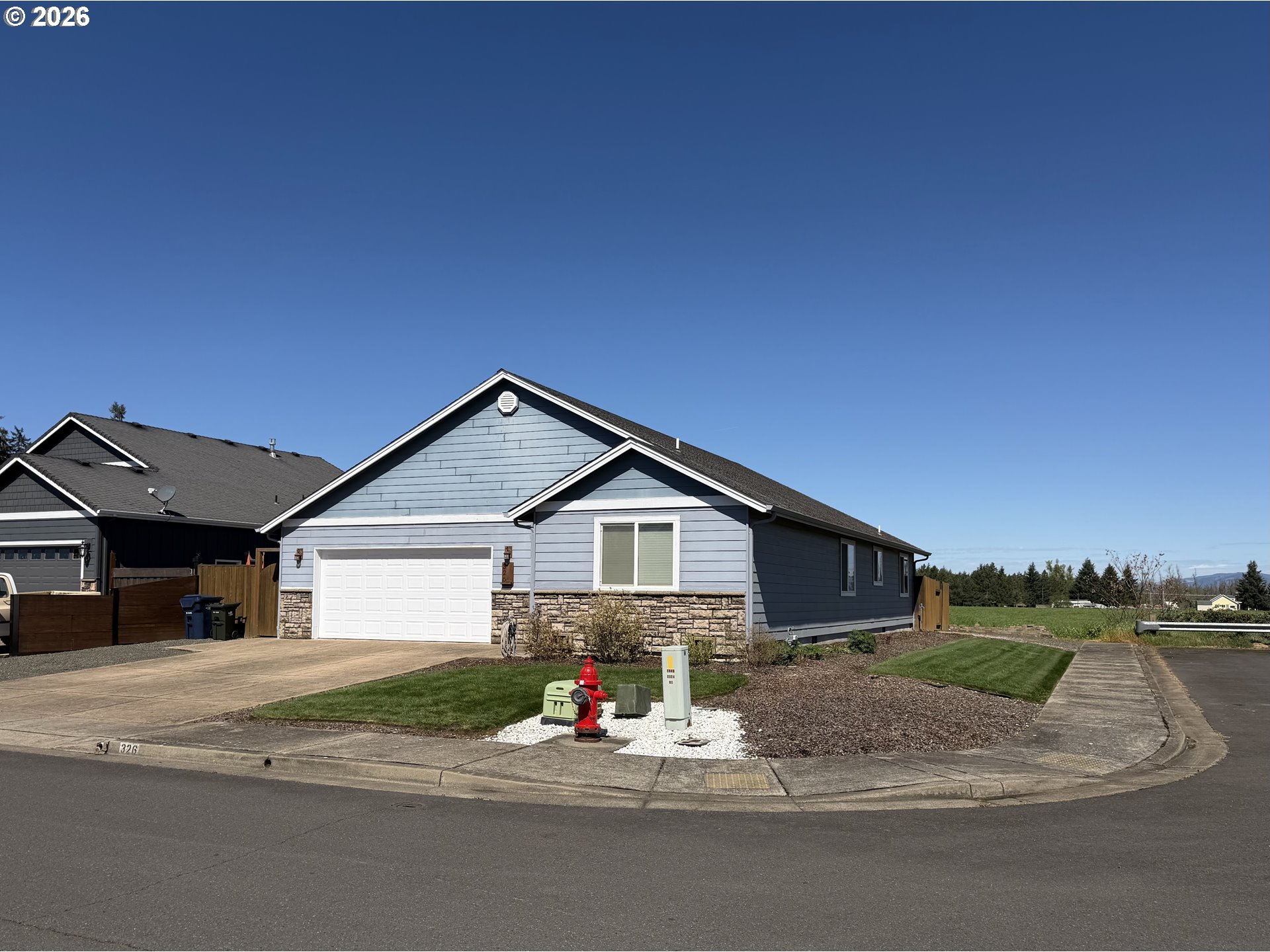 Wonderful Creswell home located in great neighborhood. 3 Bedrooms, 2 full bathrooms, 1,700 square feet of living space. Great room floor plan, Large open kitchen offers granite solid surface countertops, stainless steel appliances, pantry and island great for entertaining. Open living room with cozy gas fireplace, large primary bedroom has large walk in closet and granite countertops. French doors open to fully fenced backyard with fire pit, garden shed & concrete patio. Large finished garage. Home backs up to acres of open field. Corner lot location. Located minutes to all schools, shopping, parks. Just 10 minute commute to Eugene/Springfield.