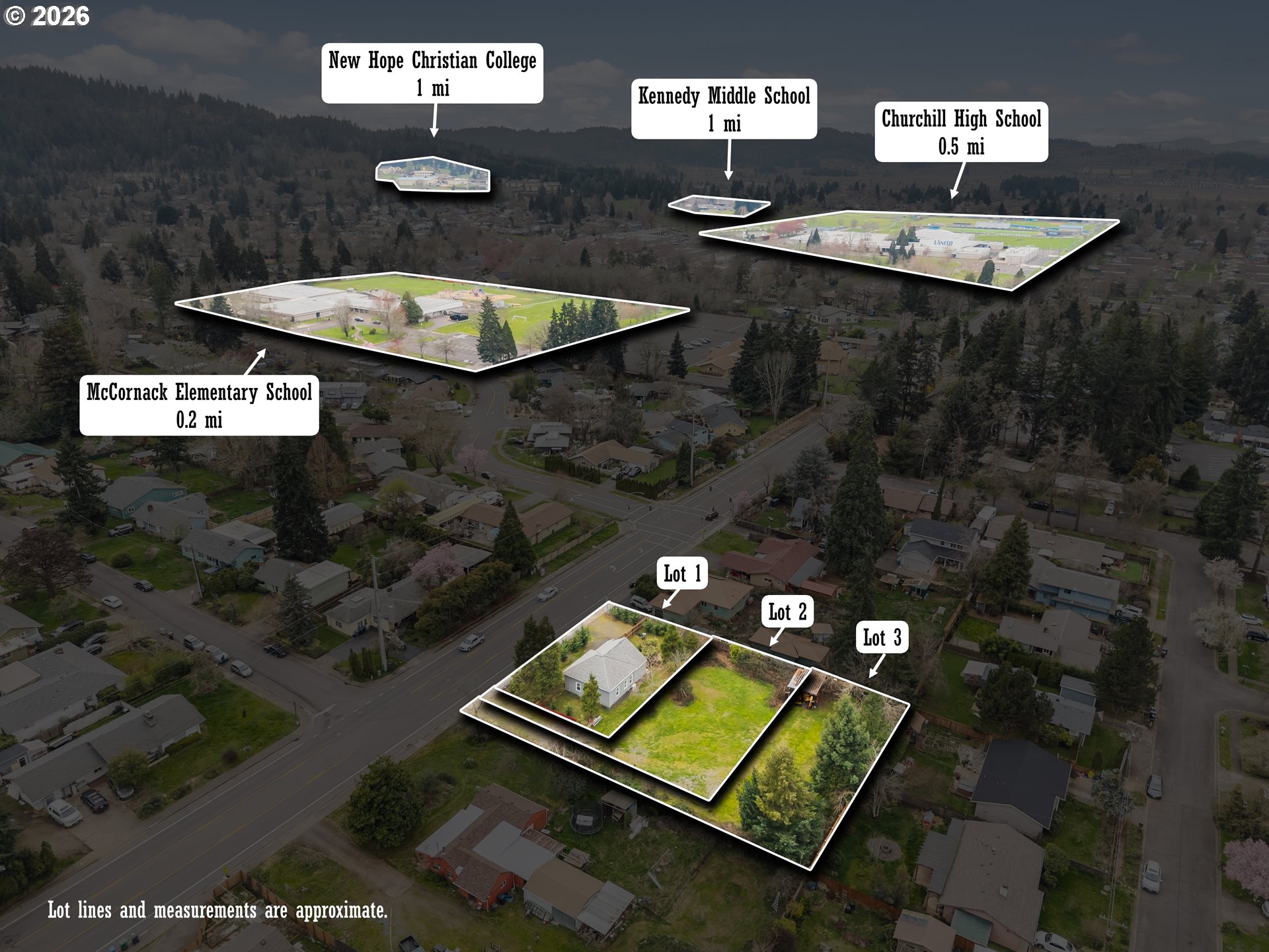 Rare opportunity to purchase three properties with extensive development potential in an established neighborhood in West Eugene. All three lots are zoned R-1, allowing for multifamily housing- including duplexes, triplexes, fourplexes, townhomes, and cottage clusters. Lot 1 offers a remodeled 2BD/1BA home of 1,012sq.ft. on .16 acres. New updates within the last several years include: exterior siding, interior & exterior paint, dual pane vinyl windows, insulation, flooring, PEX plumbing, bathroom remodel, ductless HVAC units, and more. Lots 2 & 3 (also listed separately) are ready for your new builds, offering .17 & .18 level acres, respectively. Prime development location situated mere blocks from schools of every education level, most notably Churchill High School & New Hope College. Within 5 minutes of many major home improvement and grocery stores. Located on a main LTD bus route, with convenient commutes for work, shopping, and dining, and a direct connection to Eugene station- with routes covering all of Eugene-Springfield. Consider part or all of this offering for your next investment!
