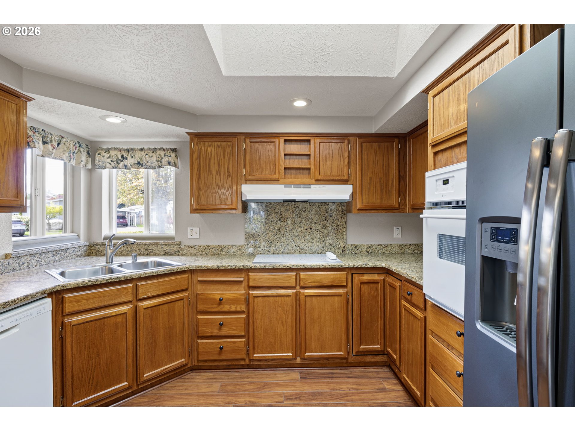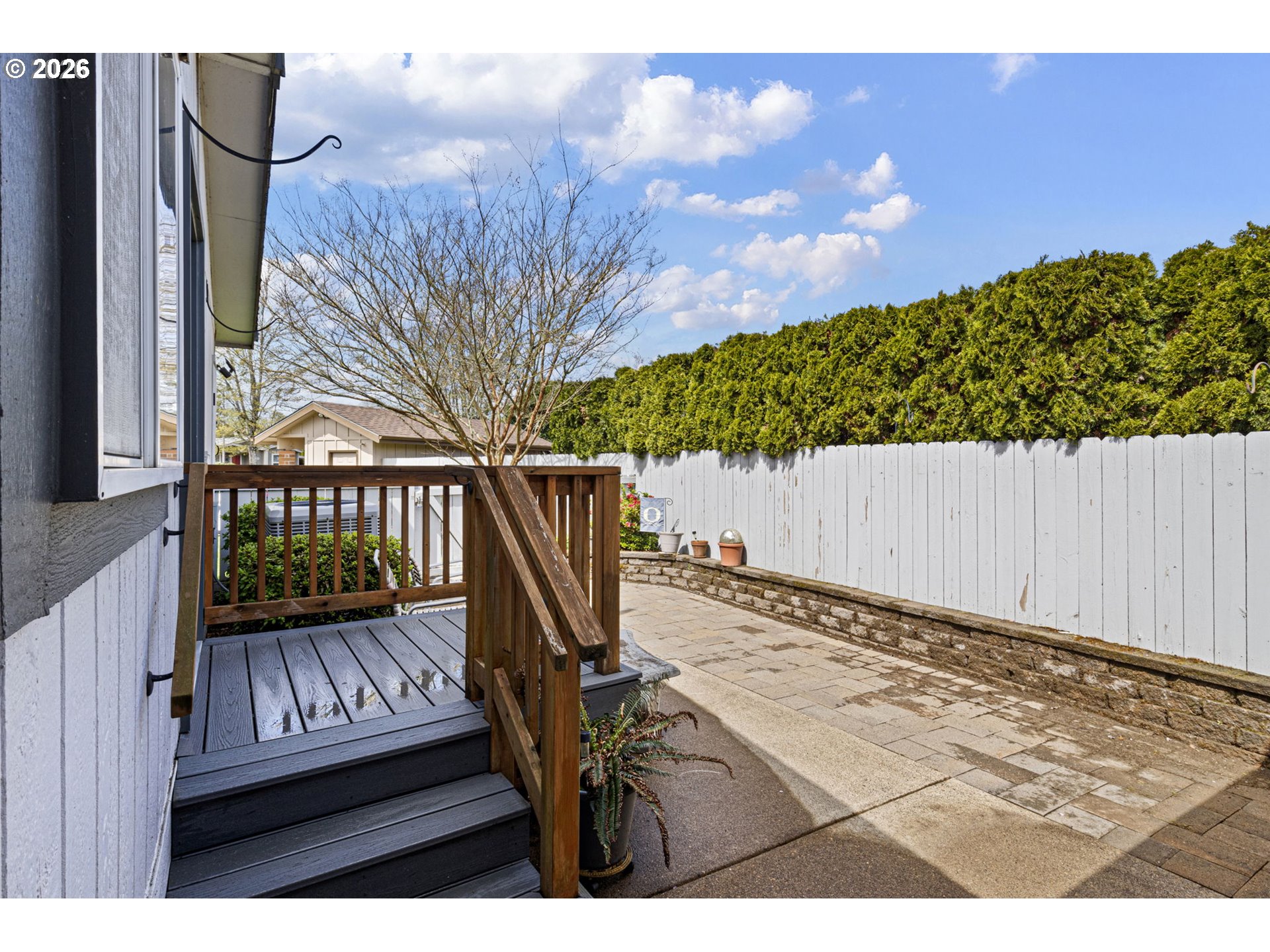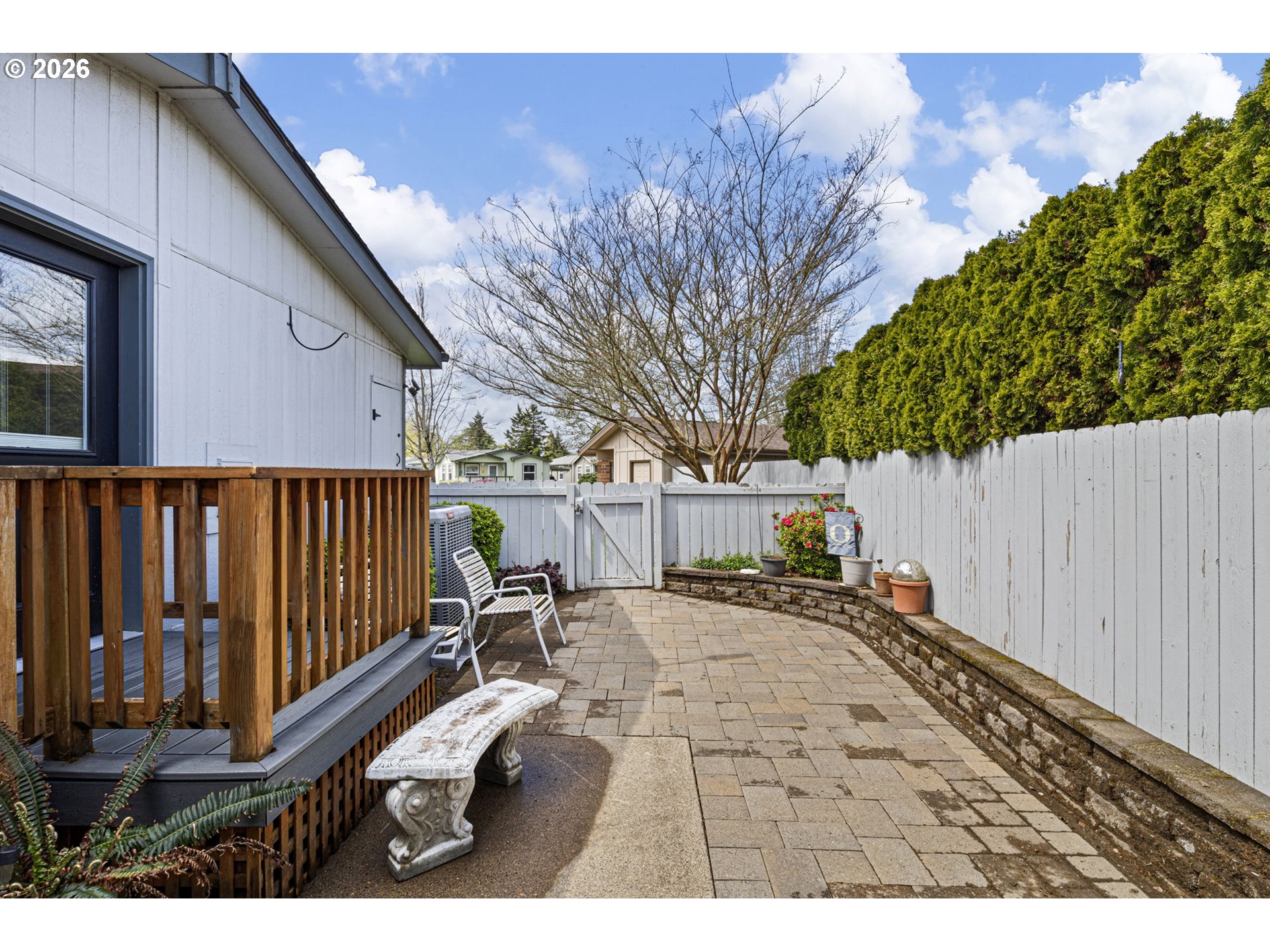 Turn-key and beautifully maintained, this inviting home is located in the highly desirable 55+ Lakeridge community of Eugene offering gated security for added peace of mind and just moments from dining, shopping, and convenient thoroughfare access. Nature lovers alike will appreciate the close proximity to Ayres Lake, with scenic opportunities for biking, walking, bird-watching, and kayaking.Positioned on a premium corner lot, the property showcases lush, manicured landscaping in both the front and backyard, creating a serene and welcoming setting. Inside, you’ll find an abundance of natural light, vaulted ceilings, and an open-concept layout designed for comfort and ease of living. The living room features luxury vinyl plank flooring and a cozy electric fireplace, while the dining area offers charming built-ins for added functionality. The well-appointed kitchen includes quartz countertops, an eating bar for additional seating, and all appliances included for true move-in readiness. Electric blinds throughout the home add a touch of modern convenience.The spacious primary suite offers a walk-in closet, en-suite bathroom, and direct access to the private backyard retreat. A second bedroom with its own walk-in closet provides flexibility for guests or a home office. The dedicated laundry room includes additional exterior access for added convenience. For those who enjoy hobbies or need extra storage, the powered outbuilding is a standout feature—complete with ample storage space and newer windows. The backyard is thoughtfully designed for low maintenance with paver landscaping and offers exceptional privacy. Call today to schedule your private tour of this move-in ready home!