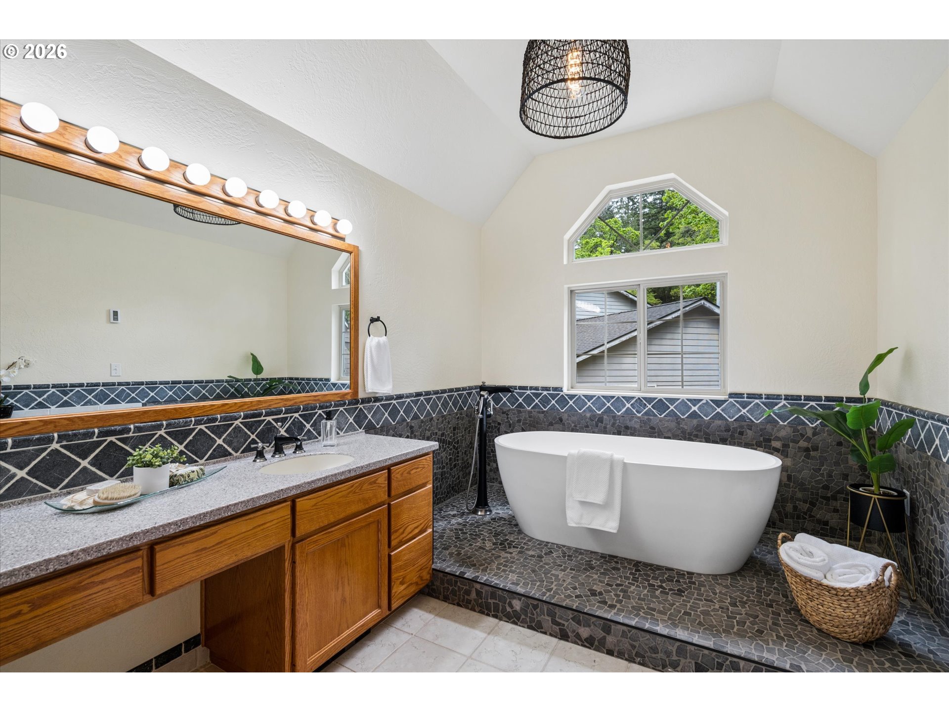 GarageDoorOpener, HardwoodFloors, HighCeilings, HighSpeedInternet, Laundry, Skylight, SoakingTub, TileFloor