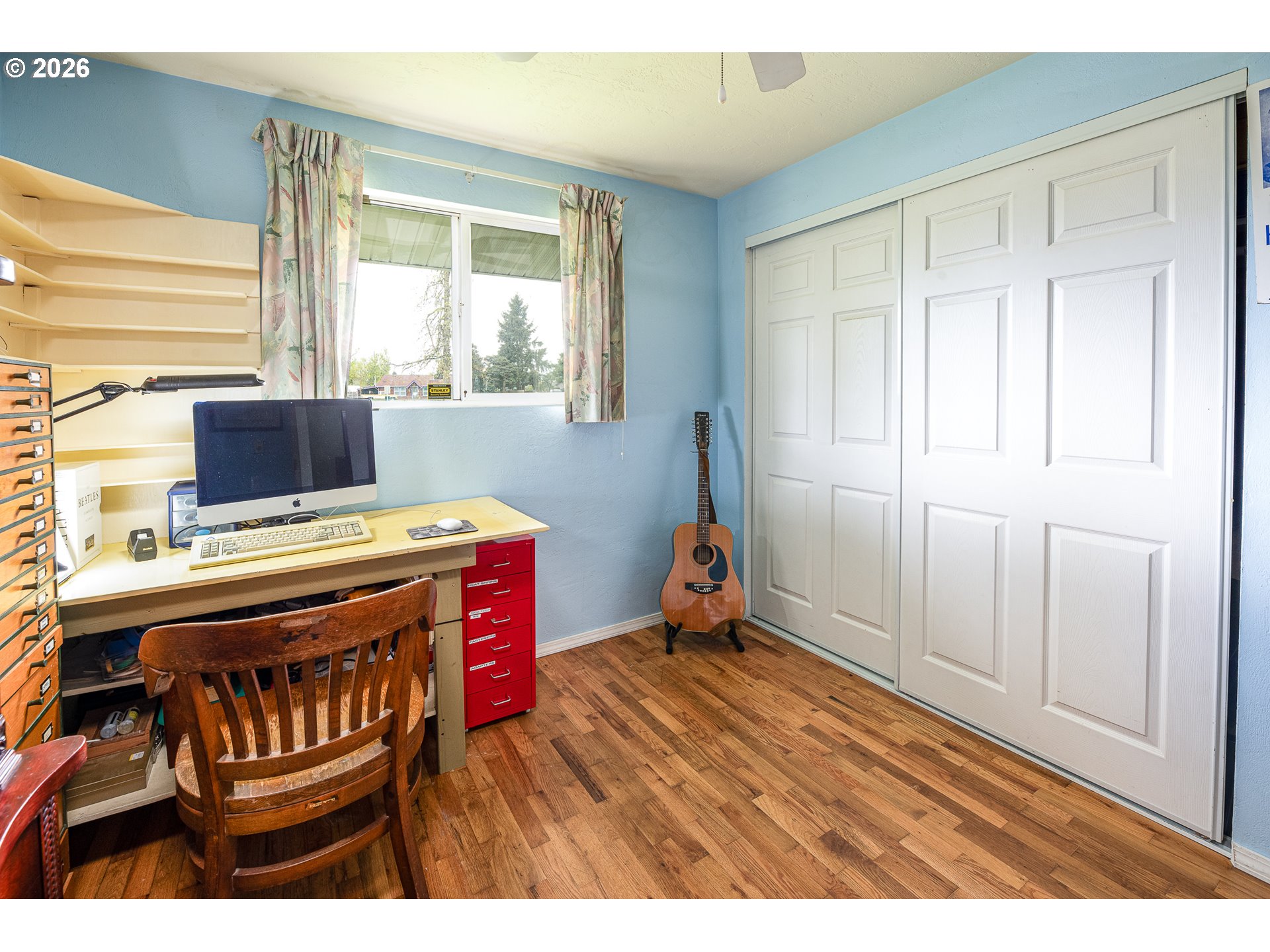 Welcome to this inviting property offering original hardwood floors, vinyl windows, and a comfortable, functional layout. A brand-new roof on both the home and the detached shop was installed March 2026, adding recent improvement and peace of mind.A sliding glass door opens to a large, fully fenced backyard, creating an easy indoor-outdoor connection and a space ready for your personal touch. Out back, the detached 20x15 shop features a slab floor, electrical service, and air conditioning—ideal for hobbies, projects, or additional storage. The property also includes covered RV parking, a one-car garage, and convenient side access.Situated across the street from a neighborhood park that is scheduled for renovation, with publicly reported improvements anticipated to be underway and completed later this year. Buyer to perform independent due diligence regarding park plans, timelines, and future use.