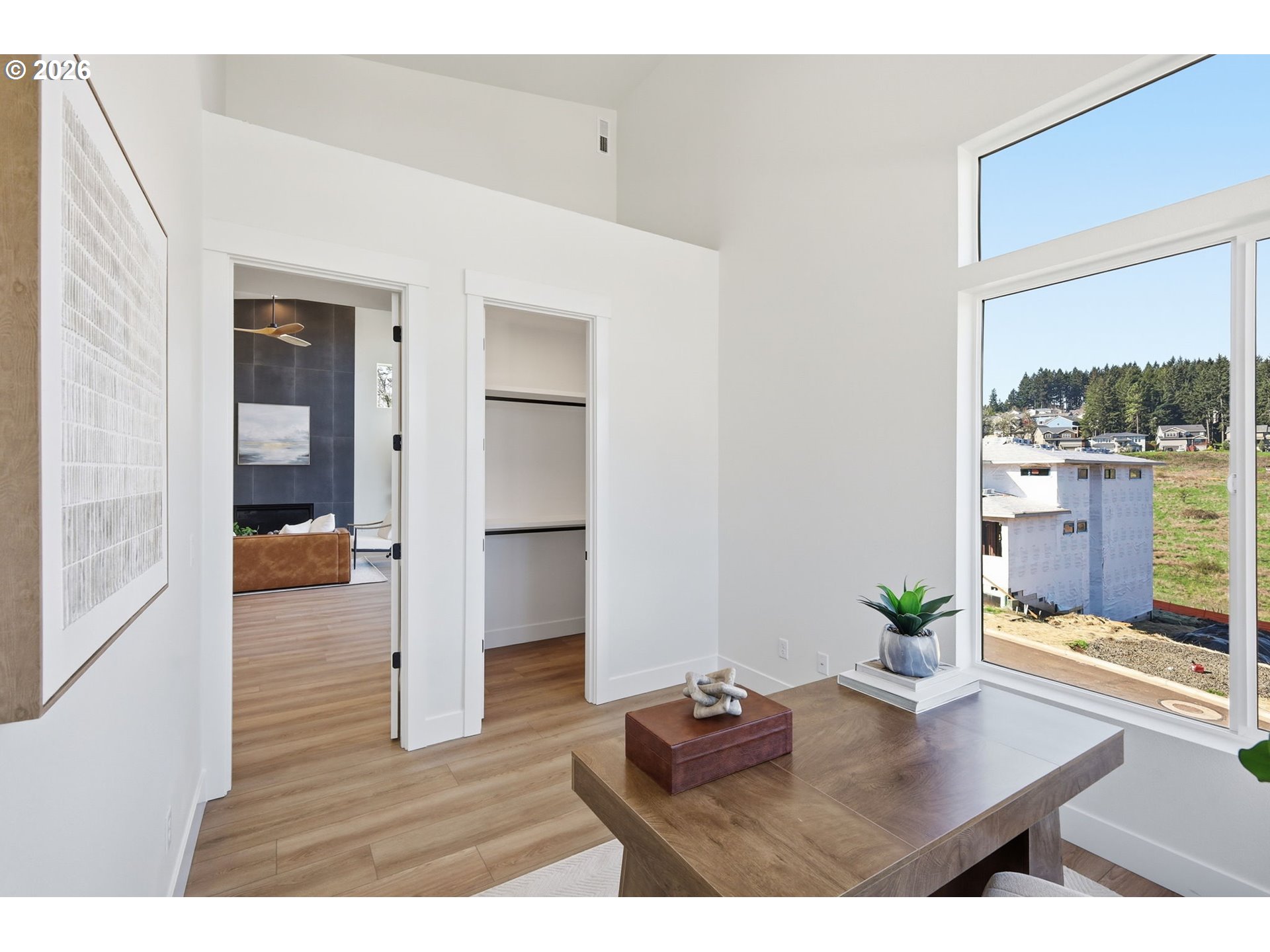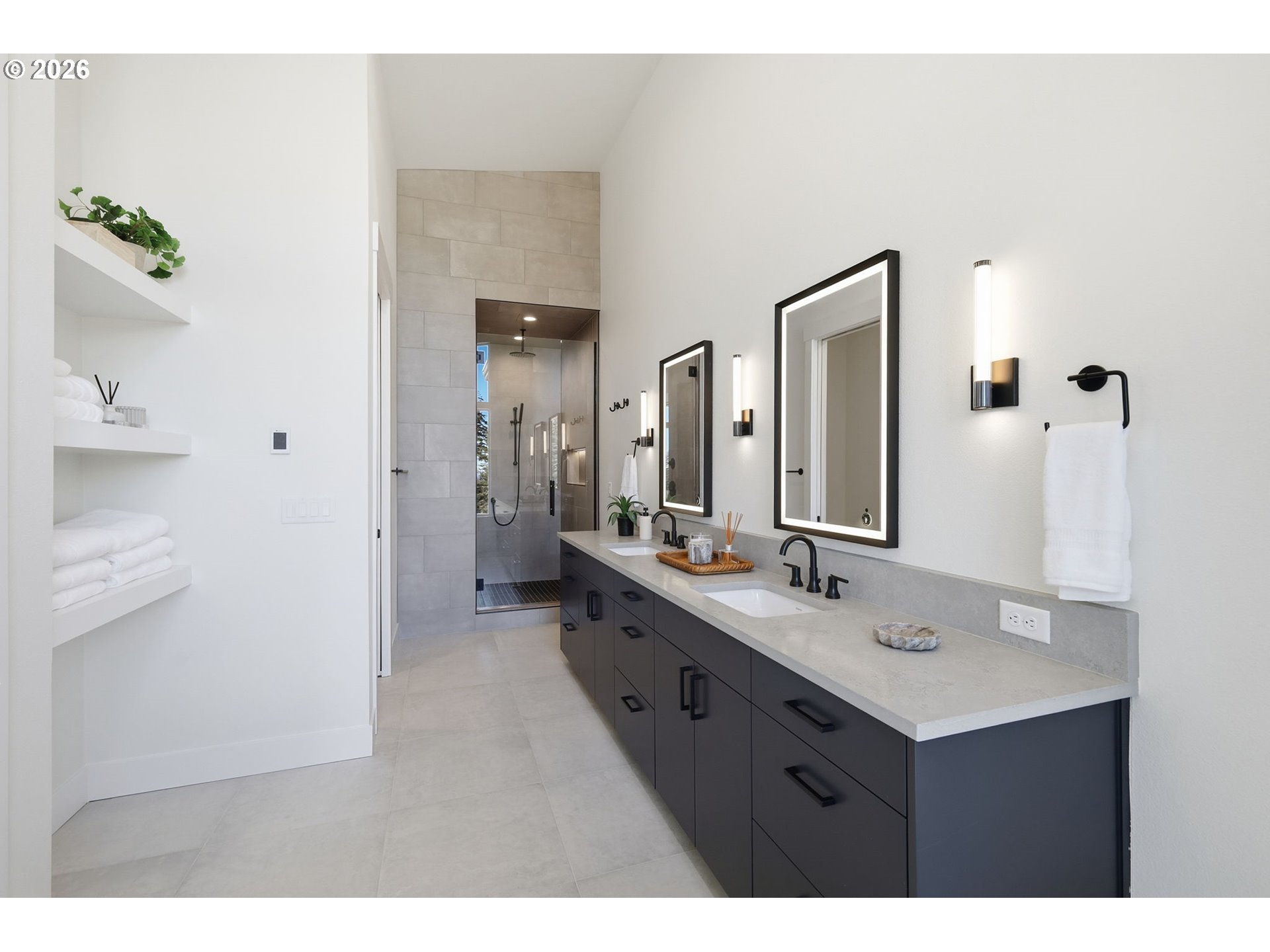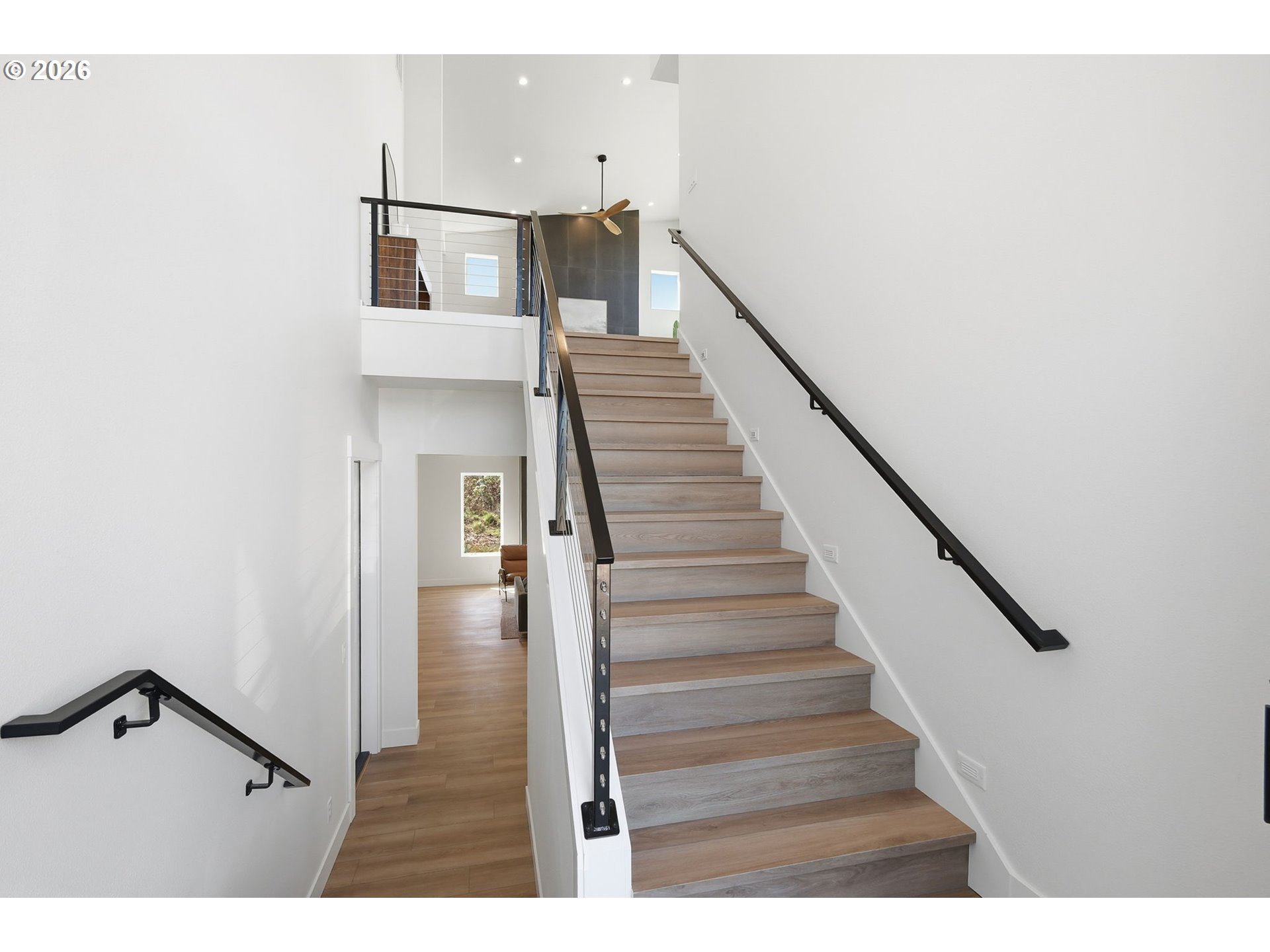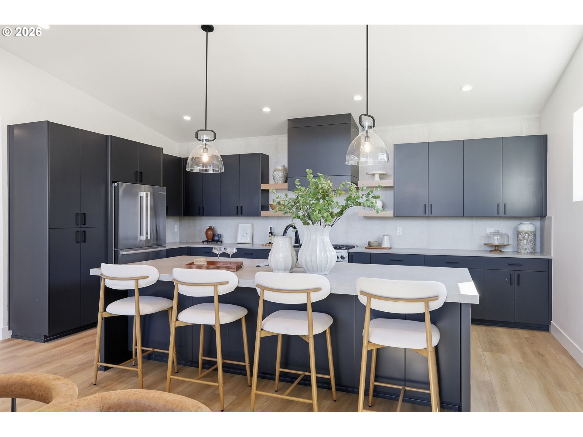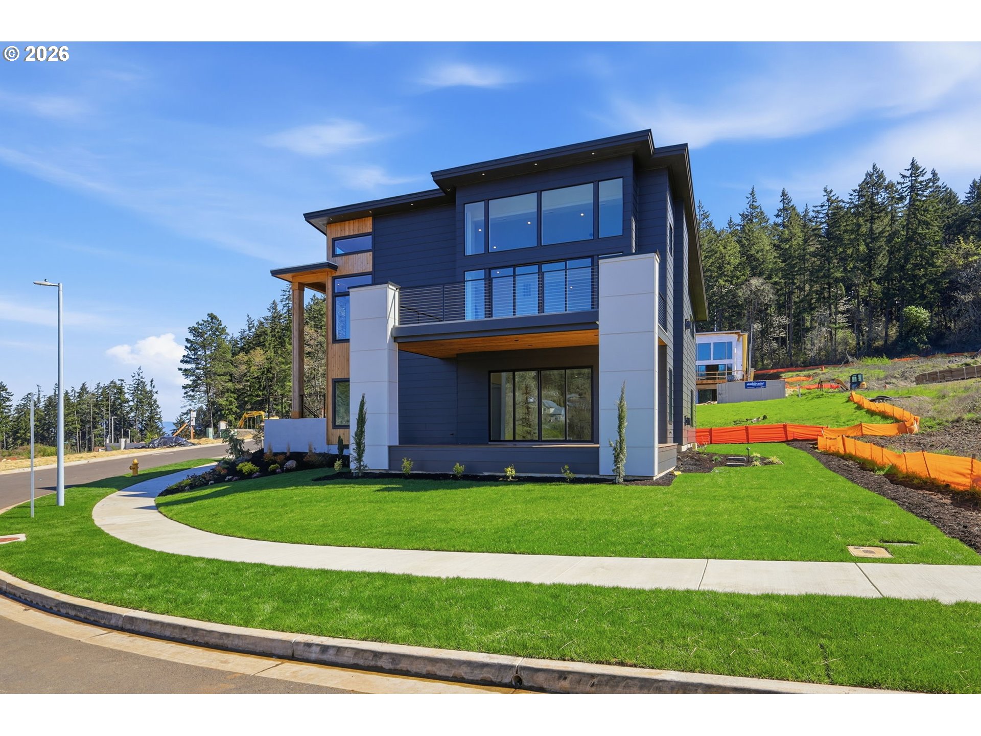 Introducing the first available home in Timberline Hills Phase 4 in sought after Southwest Eugene. This stunning NW Contemporary is a show stopper featuring a natural light flooded floorplan that is so comfortable and functional for various lifestyles. The upper "main" level enjoys an open layout with a great room, kitchen, dining, half bath, primary suite, laundry and an additional bedroom or den/office. The great room walks out onto an expansive West facing upper deck ready for sunset parties and outdoor grilling. The gorgeous primary bed enjoys a private balcony, heated floors in the bathroom with a walk-in shower, stand alone tub and mood lighting. The lower ground level that is also accessible from the garage flows into an oversized family room with wet bar perfect for movie & game nights, Superbowl parties or even multi-generational living. On this level you'll find two additional bedrooms and two full bathrooms. The family room area also walks out onto a second and large covered outdoor living area. This new development is in a low traffic area adjacent to an established neighborhood with some of Eugene's most beautiful real estate. Enjoy miles of walking, nearby trails and parks. The surrounding PNW setting and nature is breathtaking. Just 15 or so minutes to University of Oregon & Autzen Stadium and a little over an hour to the Oregon Coast. LA related to seller.