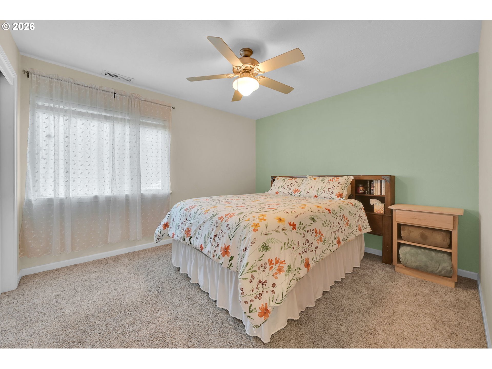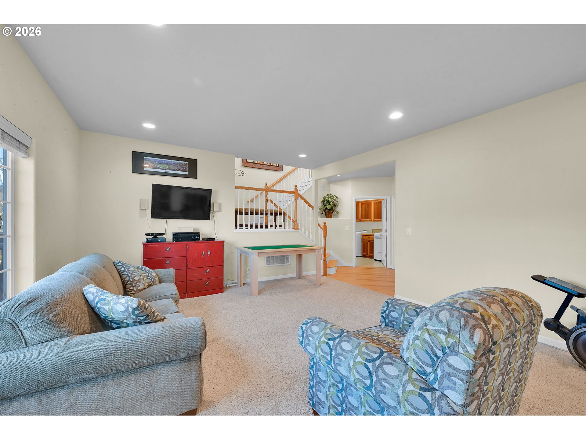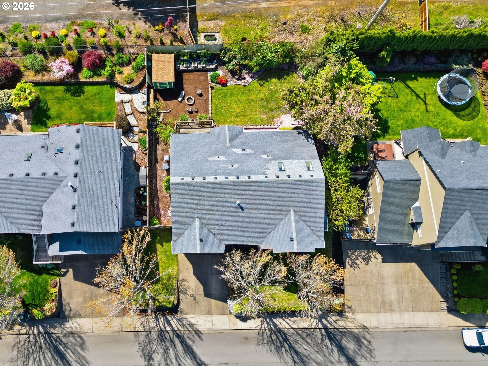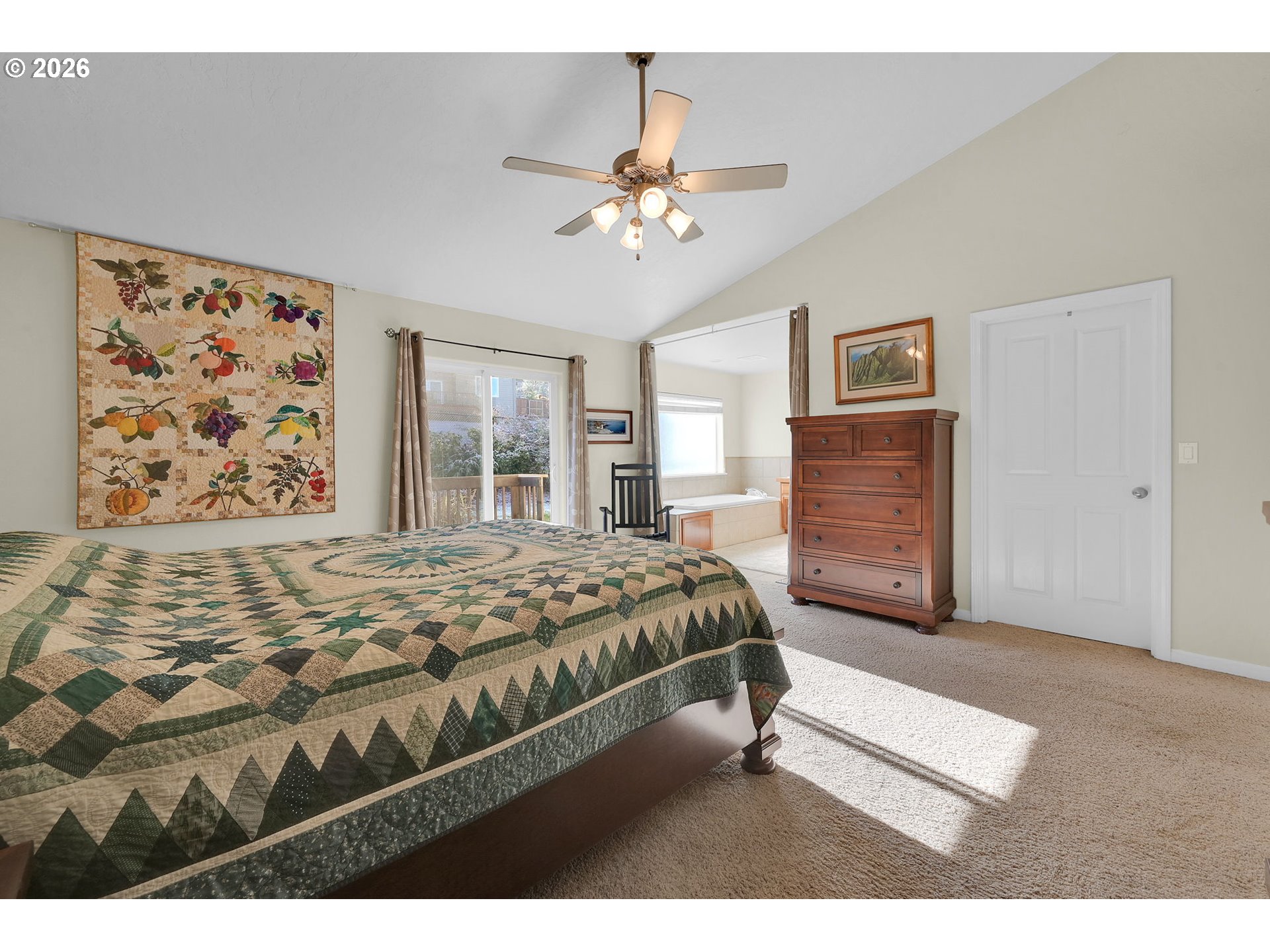 Beautifully maintained 4-bedroom, 3-bath home offering 2,724 sq ft of open, light-filled living. Vaulted ceilings and fans throughout enhance the spacious feel. Dream kitchen features breakfast bar, walk-in pantry, new dishwasher, and dining area with patio access. Living room offers inviting views and fireplace. Luxurious primary suite includes jetted tub. Enjoy a screened-in porch overlooking a private terraced yard with Cherry, Peach and nectarine trees, strawberries, marionberries and Raspberries. Lower level provides family room or office and fourth bedroom. HVAC installed 3 years ago. Oversized two-car garage.