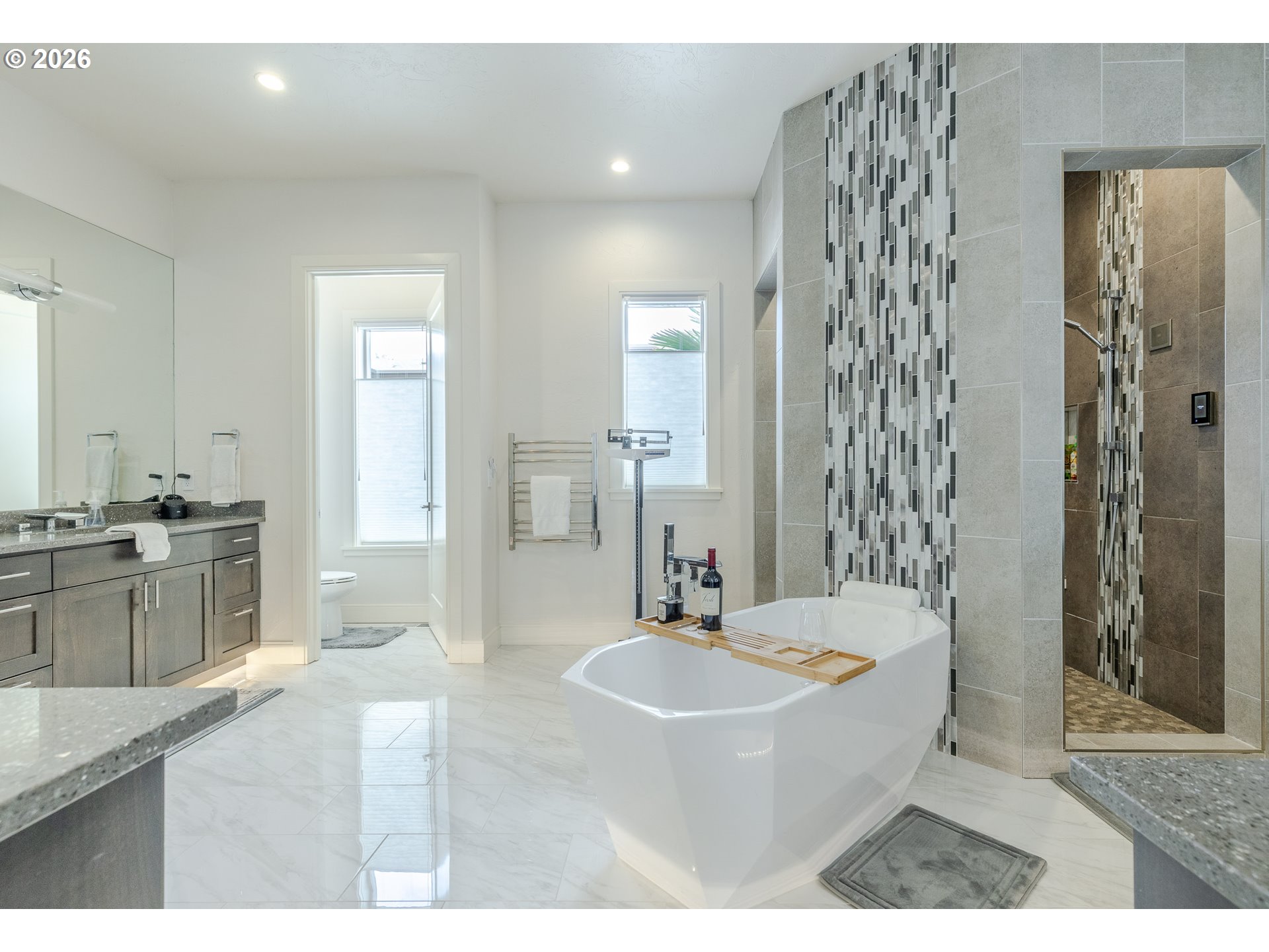 Granite, HeatedTileFloor, HighCeilings, HighSpeedInternet, Laundry, Marble, Skylight, SoakingTub, SoundSyste