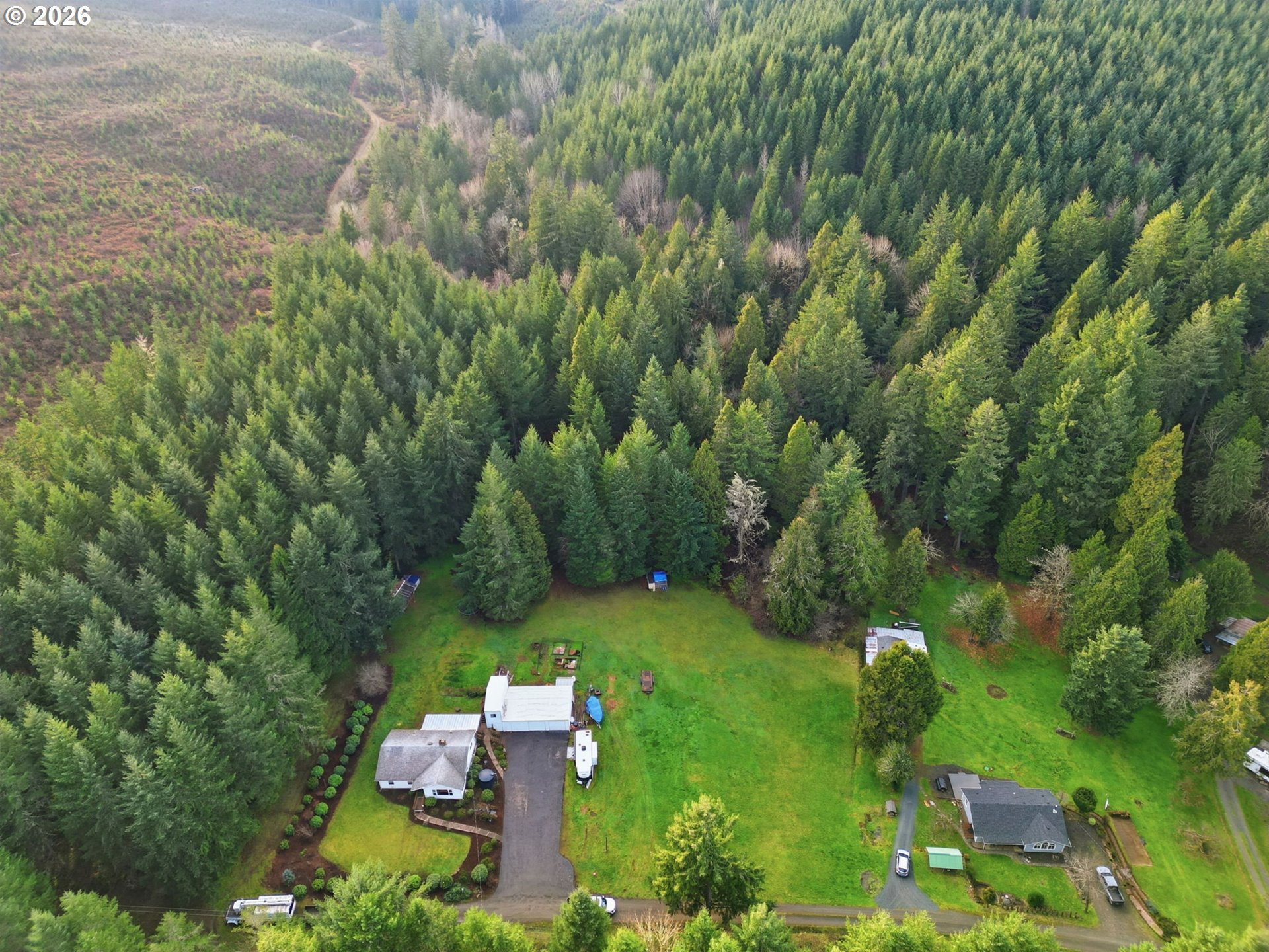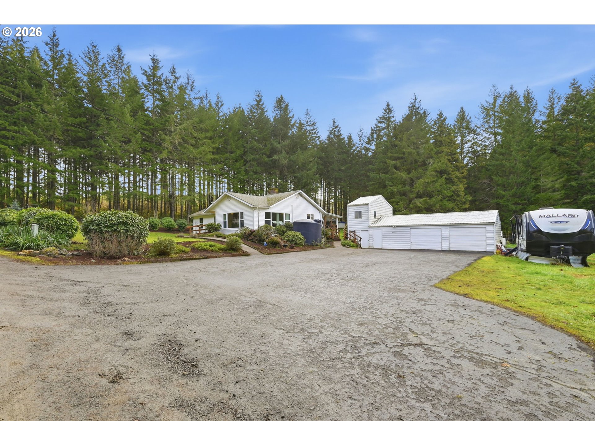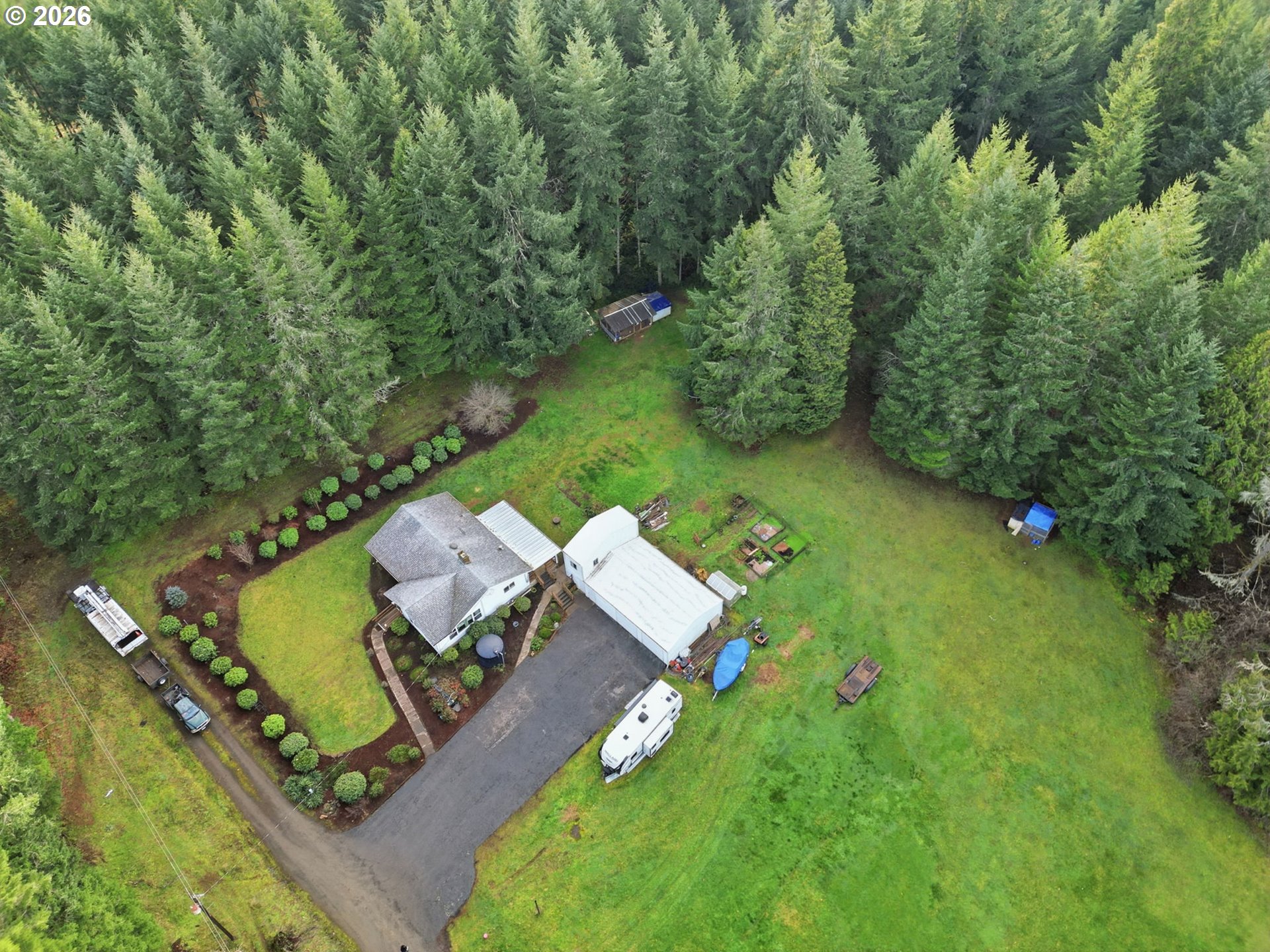 Tastefully updated and set on 4 peaceful acres, this property offers a beautiful mix of forest, pasture, and a seasonal creek. With space and versatility, it has excellent potential as a hobby farm, featuring a poultry coop, garden, greenhouse, and a large powered workshop. An attached room to the shop provides potential for an ADU or flexible bonus space. Inside, you’ll find newer LVP flooring, vinyl windows throughout, and two beautifully remodeled bathrooms. The living room is filled with natural light from large windows that frame the surrounding countryside. The spacious kitchen and dining combination provides generous counter space and ample cabinetry. Step outside from the dining area onto a large, covered patio overlooking the serene backyard—perfect for gatherings or quiet evenings outdoors. The primary suite includes double sinks and a walk-in shower with pebble stone flooring. A pleasing floor plan and ductless heating and cooling add to the home’s comfort and efficiency. Wander through the forested portion of the property to discover a seasonal creek at the back. All of this is just minutes from Dorena Lake and under 15 minutes to Cottage Grove.