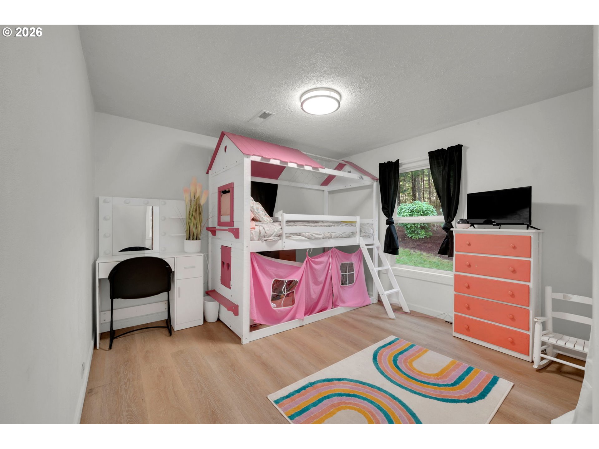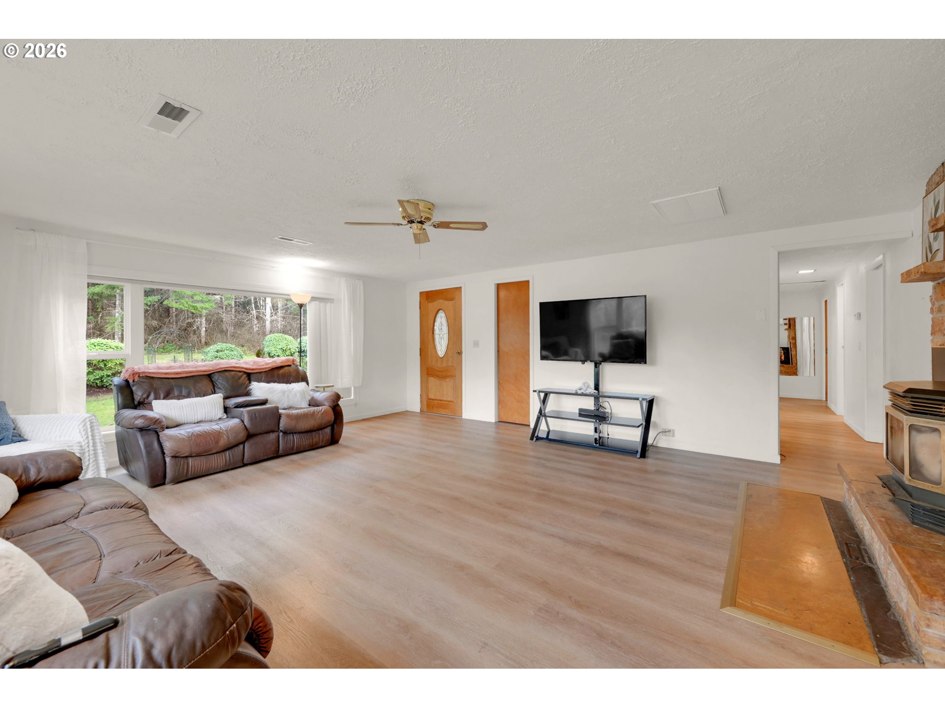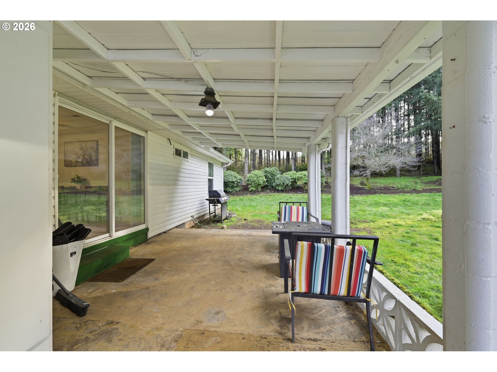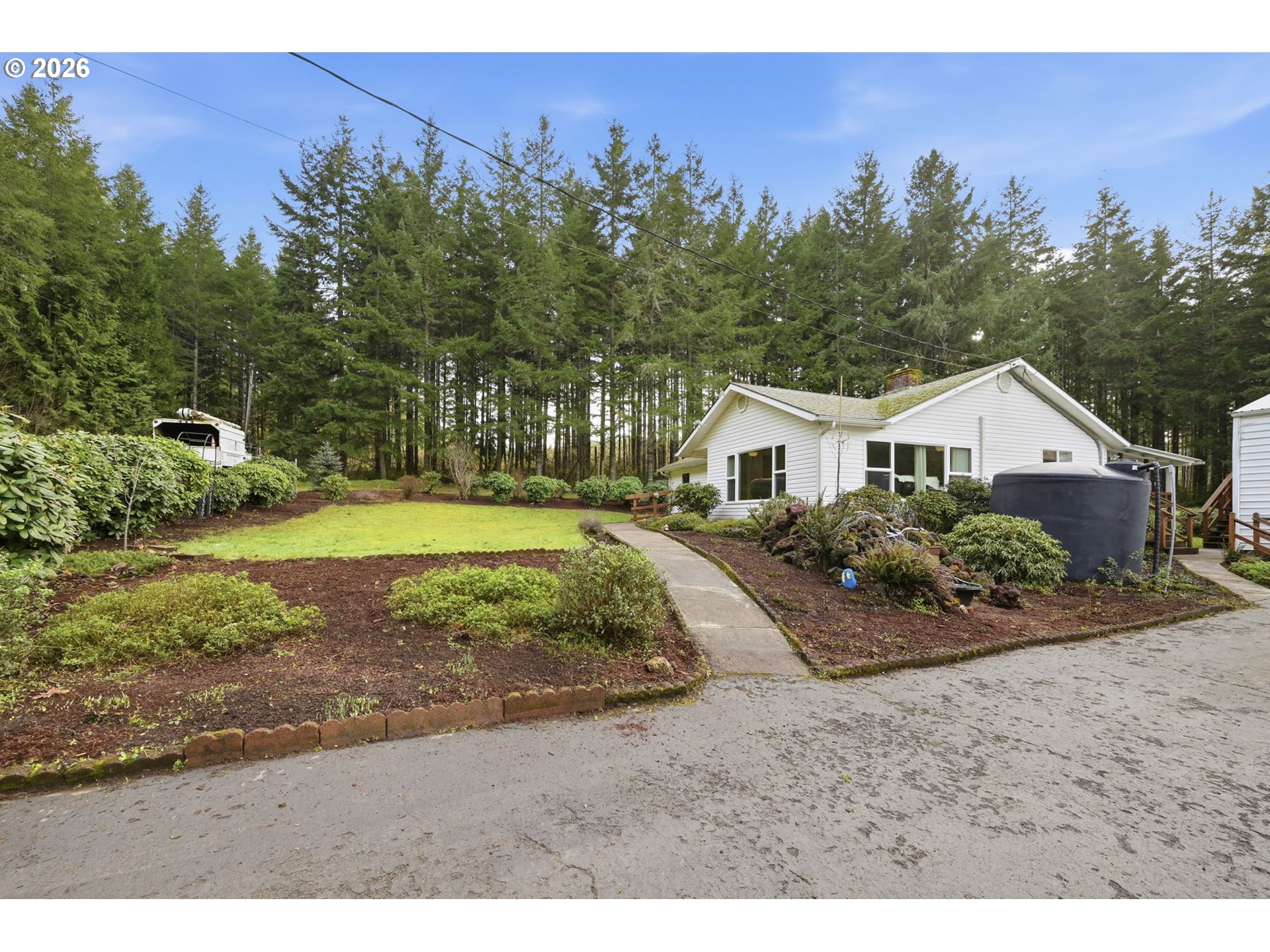 Tastefully updated and set on 4 peaceful acres, this property offers a beautiful mix of forest, pasture, and a seasonal creek. With space and versatility, it has excellent potential as a hobby farm, featuring a poultry coop, garden, greenhouse, and a large powered workshop. An attached room to the shop provides potential for an ADU or flexible bonus space. Inside, you’ll find newer LVP flooring, vinyl windows throughout, and two beautifully remodeled bathrooms. The living room is filled with natural light from large windows that frame the surrounding countryside. The spacious kitchen and dining combination provides generous counter space and ample cabinetry. Step outside from the dining area onto a large, covered patio overlooking the serene backyard—perfect for gatherings or quiet evenings outdoors. The primary suite includes double sinks and a walk-in shower with pebble stone flooring. A pleasing floor plan and ductless heating and cooling add to the home’s comfort and efficiency. Wander through the forested portion of the property to discover a seasonal creek at the back. All of this is just minutes from Dorena Lake and under 15 minutes to Cottage Grove.