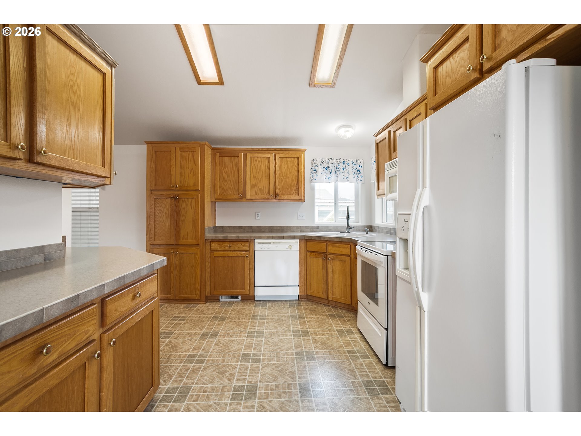 Welcome to this beautifully maintained home in the highly desirable, gated Camelot Village 55+ community. Located in the sought-after Ferry Street Bridge area of Eugene, this home offers an incredible value with low space rent of just $535 per month. With 1,420 sq. ft. of bright, open living space, this well-cared-for residence features 3 bedrooms and 2 full bathrooms. The open-concept layout is enhanced by vaulted ceilings and skylights in the kitchen, creating an airy and inviting atmosphere filled with natural light. Fresh interior paint and thoughtful updates make this home truly move-in ready.Step outside to enjoy a beautifully landscaped yard—perfect for relaxing or entertaining. Residents of Camelot Village enjoy an active and vibrant lifestyle with outstanding amenities, including a clubhouse, indoor pool, dog park, and RV storage available for a minimal fee.This is a rare opportunity to experience comfort, convenience, and affordability in one of Eugene’s premier 55+ communities.