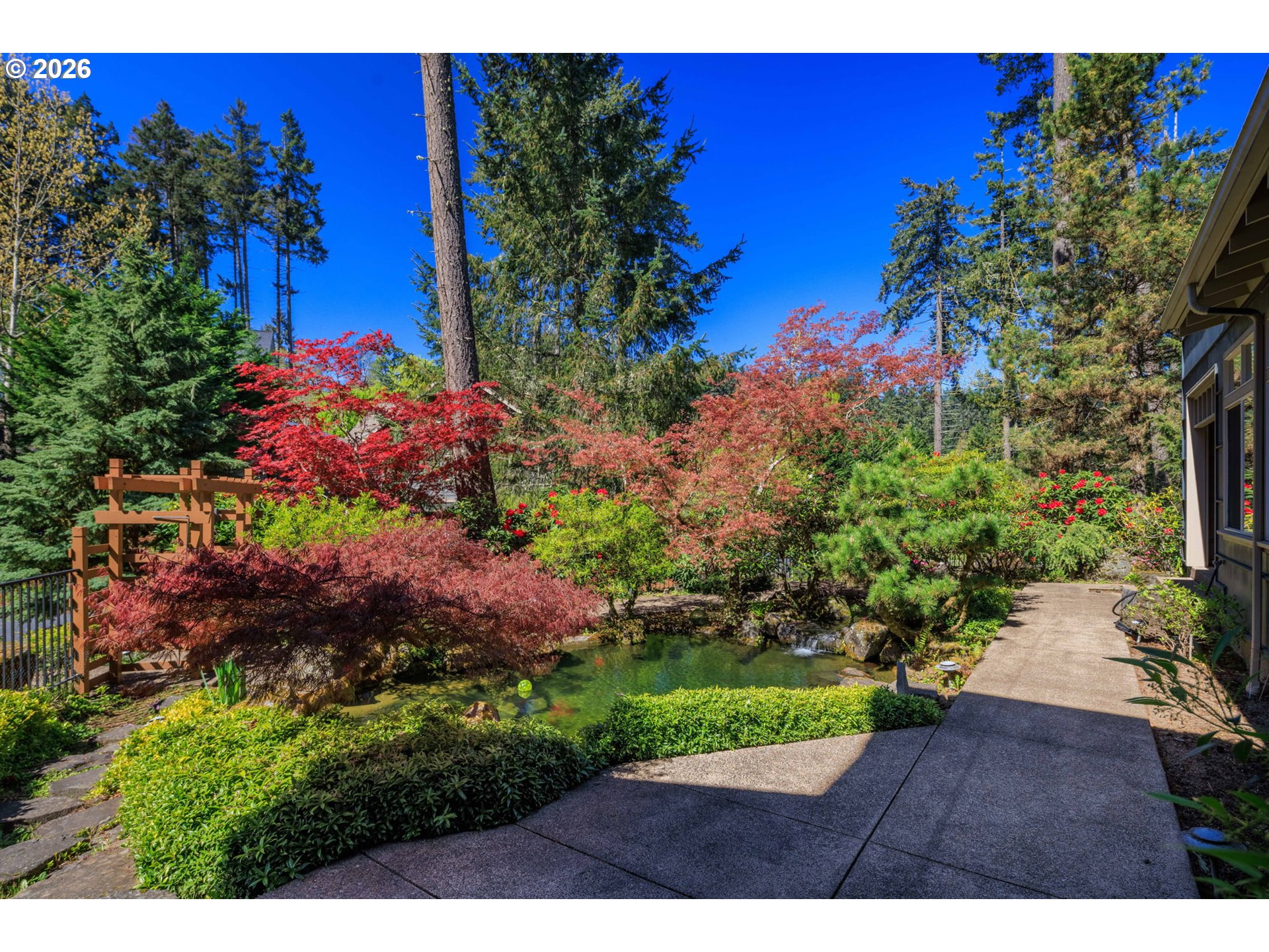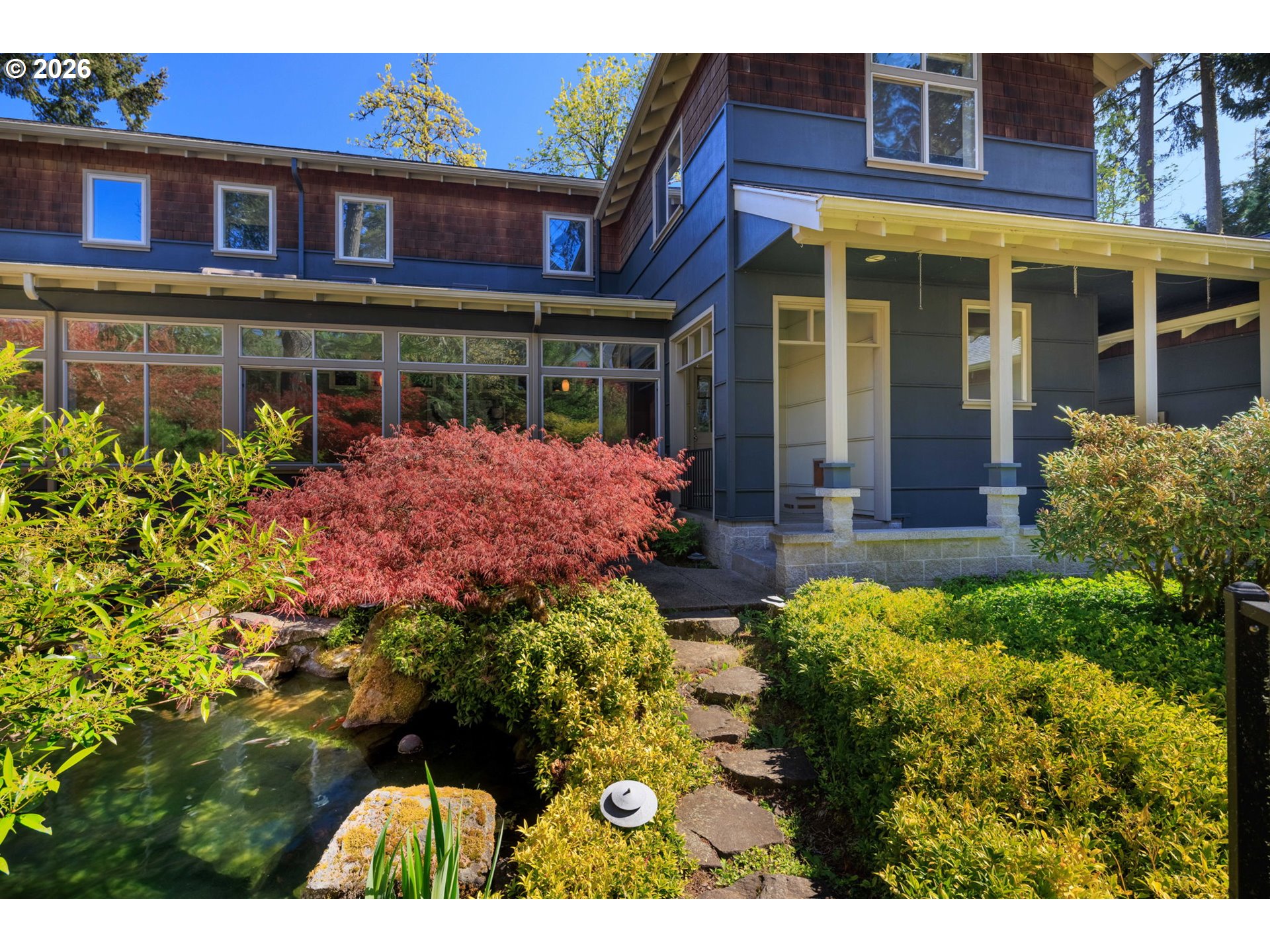 A truly one-of-a-kind residence offering an exceptional living experience defined by outstanding design and superior construction quality. This architectural gem blends Northwest Contemporary style with refined nods to Craftsman tradition and the timeless influence of Frank Lloyd Wright, creating a home that is both striking and harmonious with its surroundings.Inside, the dynamic and highly adaptable floor plan is designed for seamless everyday living and effortless entertaining. The interior showcases exquisite custom artisan cabinetry and detailed millwork throughout, complemented by stained concrete floors with radiant hydronic heating for year-round comfort. Expansive windows invite abundant natural light from every angle while thoughtfully framing picturesque views of the surrounding landscape.Soaring ceilings enhance the sense of space, while the great room and den feature remarkable ceiling details that add depth, character, and architectural distinction.Outdoors, the property transforms into a private retreat with resort-style landscaping designed for tranquility and beauty. A cascading waterfall flows into a gentle, bubbling brook that feeds a serene koi pond, all masterfully designed by Daichi Landscape.Additional features include an oversized two-car garage with storage closet and a spacious RV parking pad, offering both convenience and flexibility.This is a rare opportunity to own a home where architectural vision, craftsmanship, and natural beauty come together in perfect balance.
