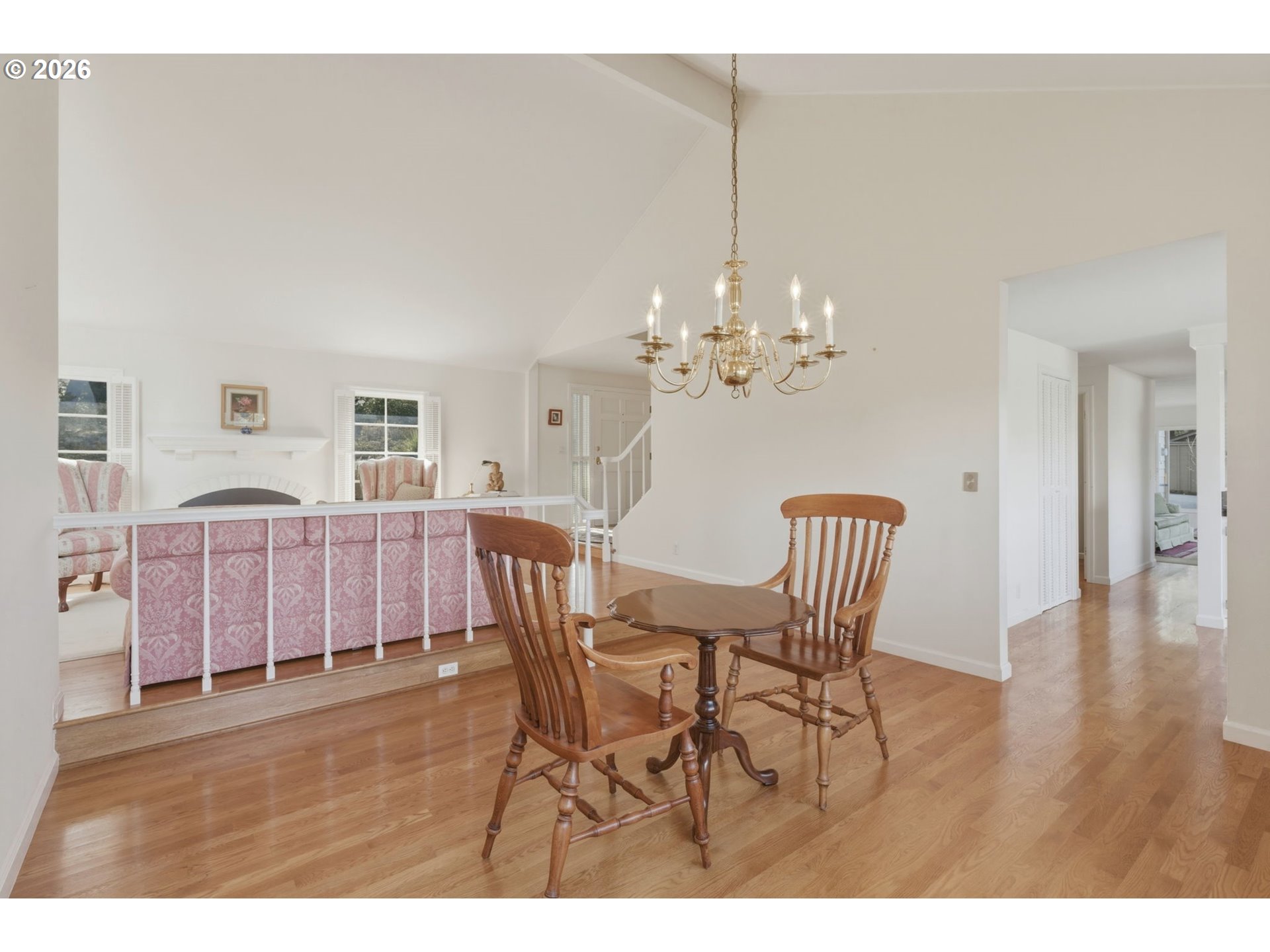 Nestled in one of Eugene’s most sought-after neighborhoods, this classic two-story traditional home offers 3 bedrooms, 2.1 bathrooms, and 2,112 square feet of light-filled living space on nearly half an acre. Vaulted ceilings and expansive windows invite in abundant natural light, highlighting beautiful hardwood floors and creating an open, airy feel throughout. The spacious kitchen features granite countertops and ample workspace, flowing seamlessly into comfortable living areas warmed by three gas fireplaces, perfect for cozy evenings and effortless entertaining. Filtered views and stunning mature trees provide a serene backdrop from nearly every room. Step outside to the large deck overlooking your private, park-like setting, ideal for gatherings or quiet mornings surrounded by nature. Conveniently located just minutes from the University of Oregon, South Eugene High School, area parks, and Eugene’s renowned hiking trails, this home offers the perfect blend of privacy, beauty, and comfort. A rare opportunity in an exceptional location.
