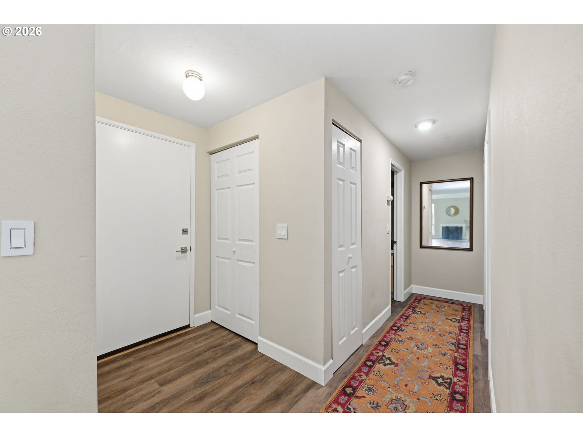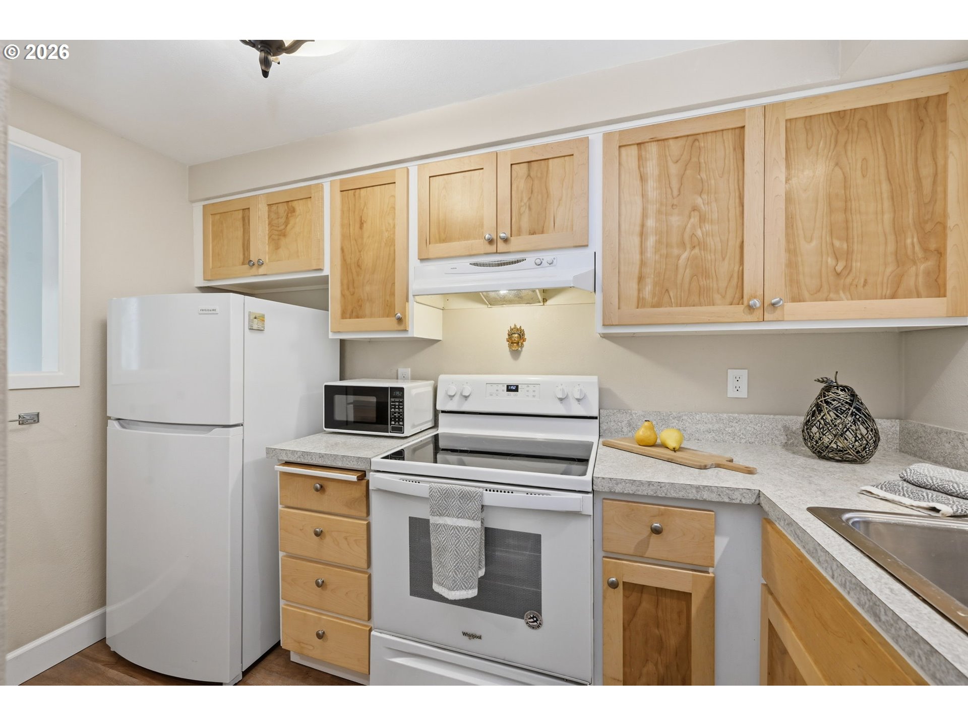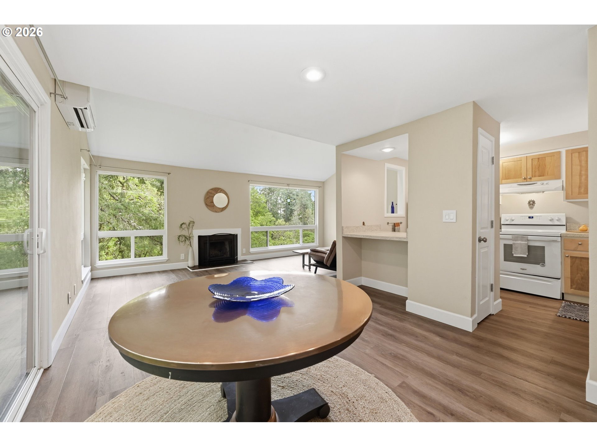 Perched in a prime upper-level corner location, this thoughtfully updated condo feels like a true retreat. With expansive views, abundant natural light, and a strong sense of privacy, it’s a space that invites you to settle in. Large picture windows frame the tops of old growth trees, with a glimpse of the city beyond.Care and intention are evident throughout, from the updated kitchen and bathrooms to newer vinyl windows, all new flooring, wood trim, and an efficient ductless heat pump, creating a cohesive, comfortable home that is truly move in ready.The single level layout offers ease of living with an open feel that maximizes light and views. As an upper corner unit, it lives larger and quieter than most. In-unit stackable washer and dryer included.Just steps away, the recreation center offers a pool, hot tub, sauna, and fitness room. Surrounded by trees and close to the Ridgeline Trail, Spencer Butte, and South Eugene shopping and dining, the location balances natural beauty with everyday convenience.HOA dues cover water, sewer, garbage, cable, internet, exterior maintenance, assigned covered parking and access to the community amenities for a simple, low maintenance lifestyle.