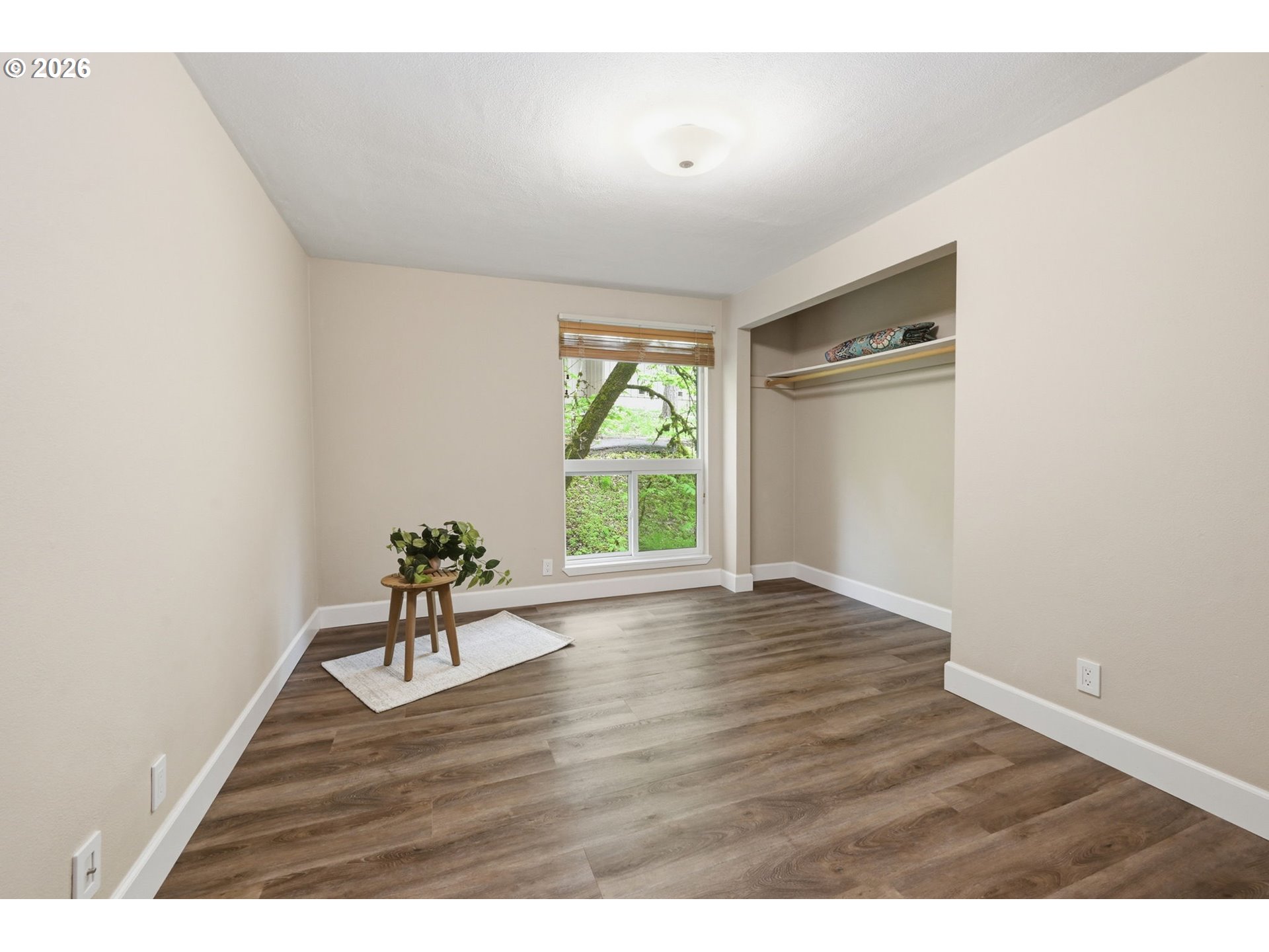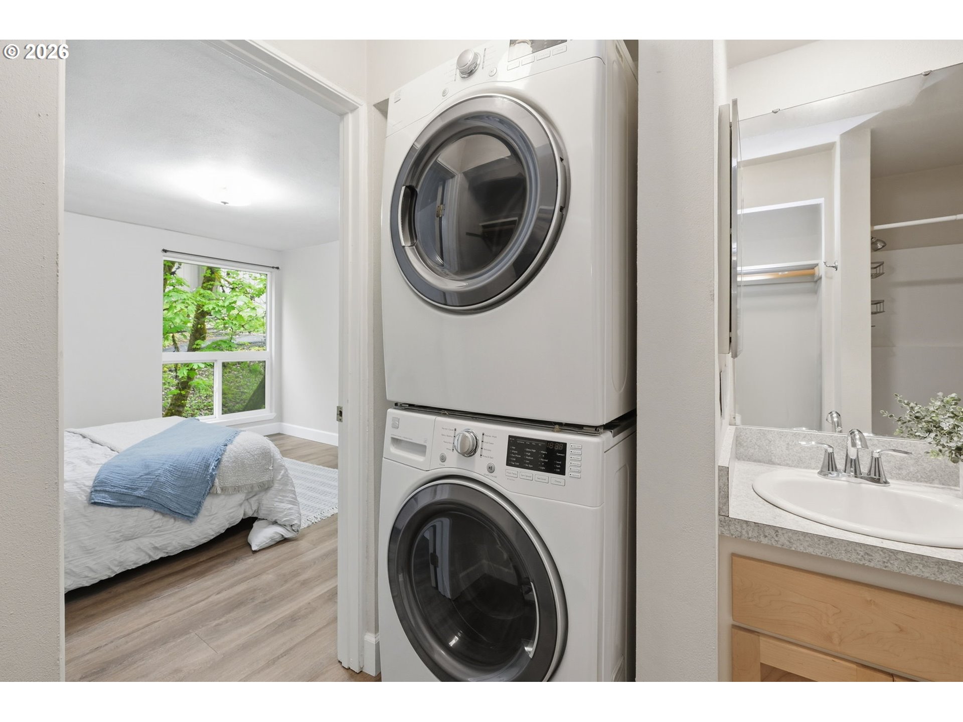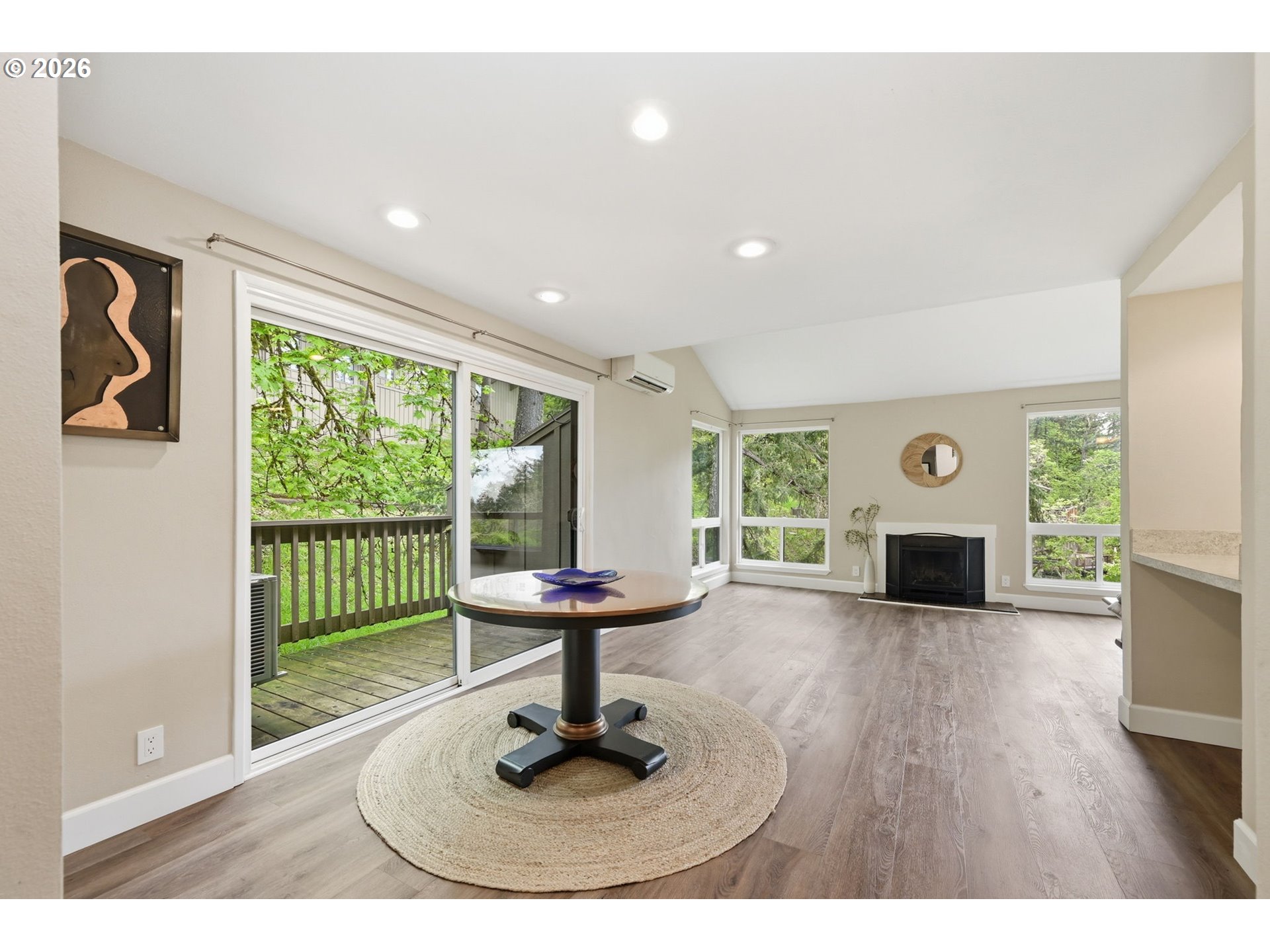 Perched in a prime upper-level corner location, this thoughtfully updated condo feels like a true retreat. With expansive views, abundant natural light, and a strong sense of privacy, it’s a space that invites you to settle in. Large picture windows frame the tops of old growth trees, with a glimpse of the city beyond.Care and intention are evident throughout, from the updated kitchen and bathrooms to newer vinyl windows, all new flooring, wood trim, and an efficient ductless heat pump, creating a cohesive, comfortable home that is truly move in ready.The single level layout offers ease of living with an open feel that maximizes light and views. As an upper corner unit, it lives larger and quieter than most. In-unit stackable washer and dryer included.Just steps away, the recreation center offers a pool, hot tub, sauna, and fitness room. Surrounded by trees and close to the Ridgeline Trail, Spencer Butte, and South Eugene shopping and dining, the location balances natural beauty with everyday convenience.HOA dues cover water, sewer, garbage, cable, internet, exterior maintenance, assigned covered parking and access to the community amenities for a simple, low maintenance lifestyle.