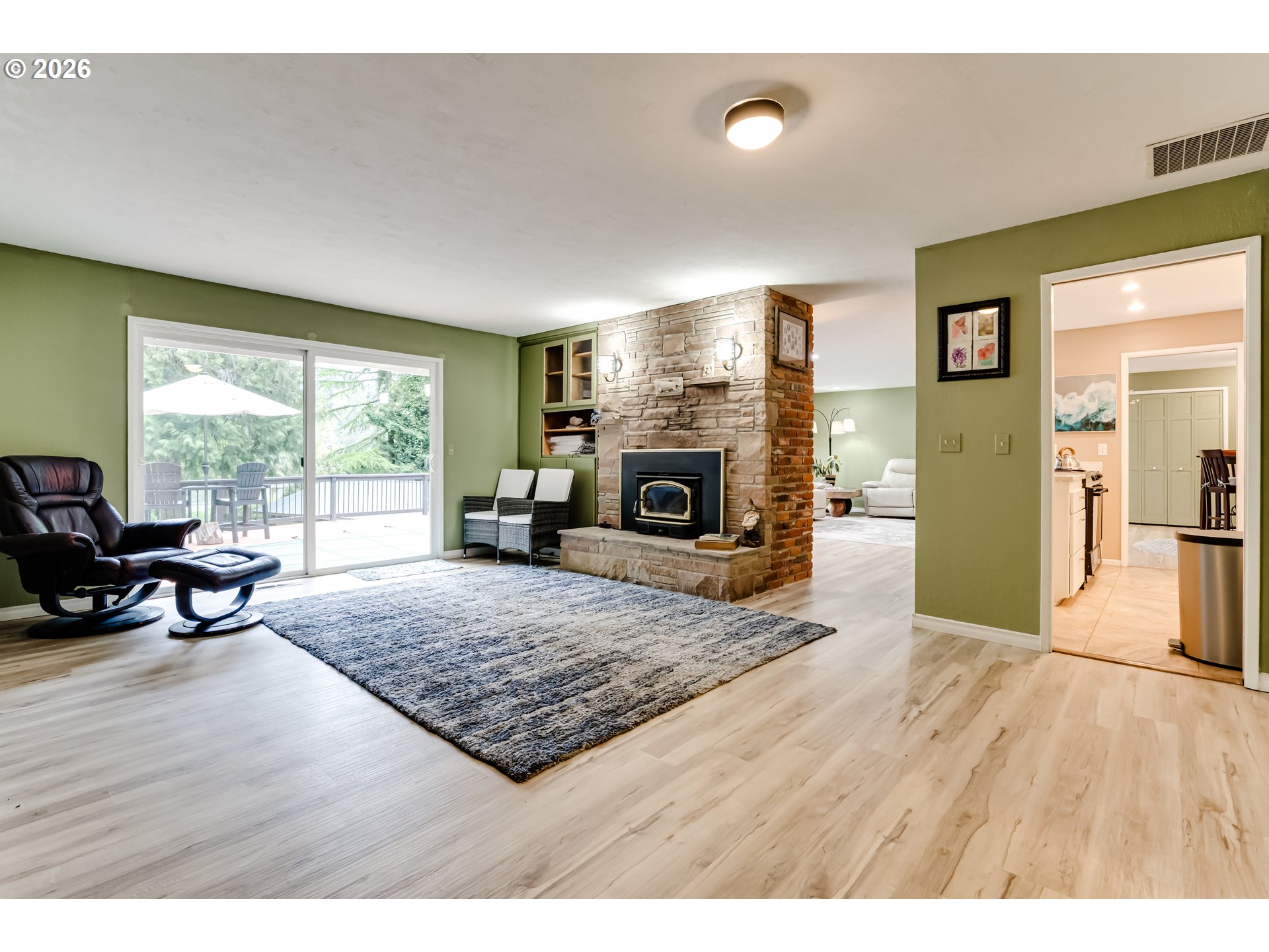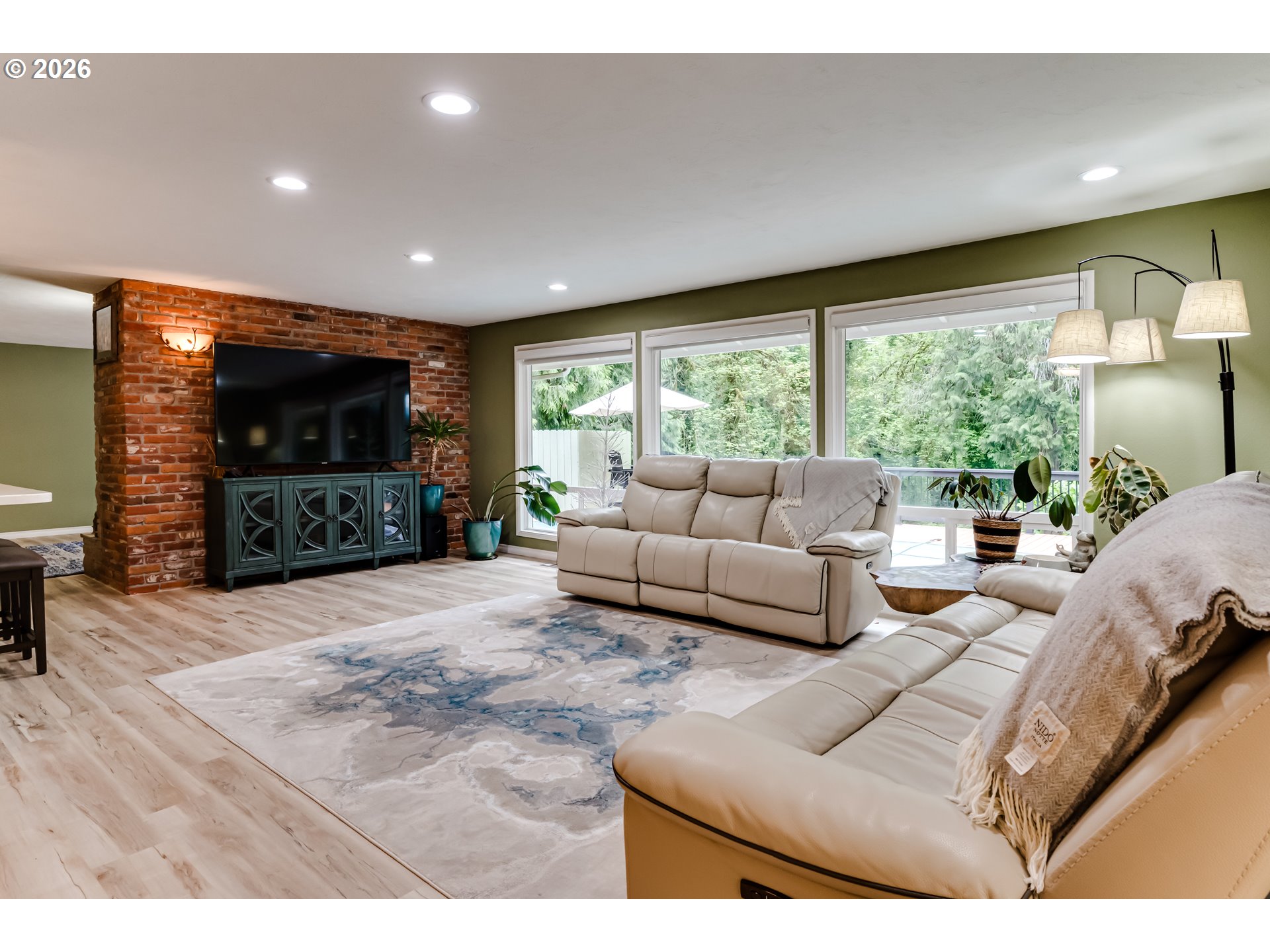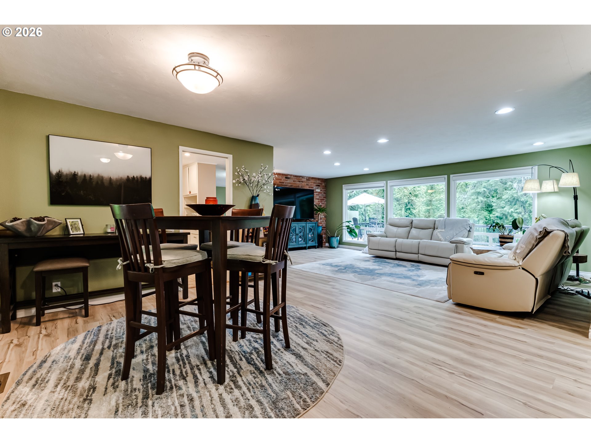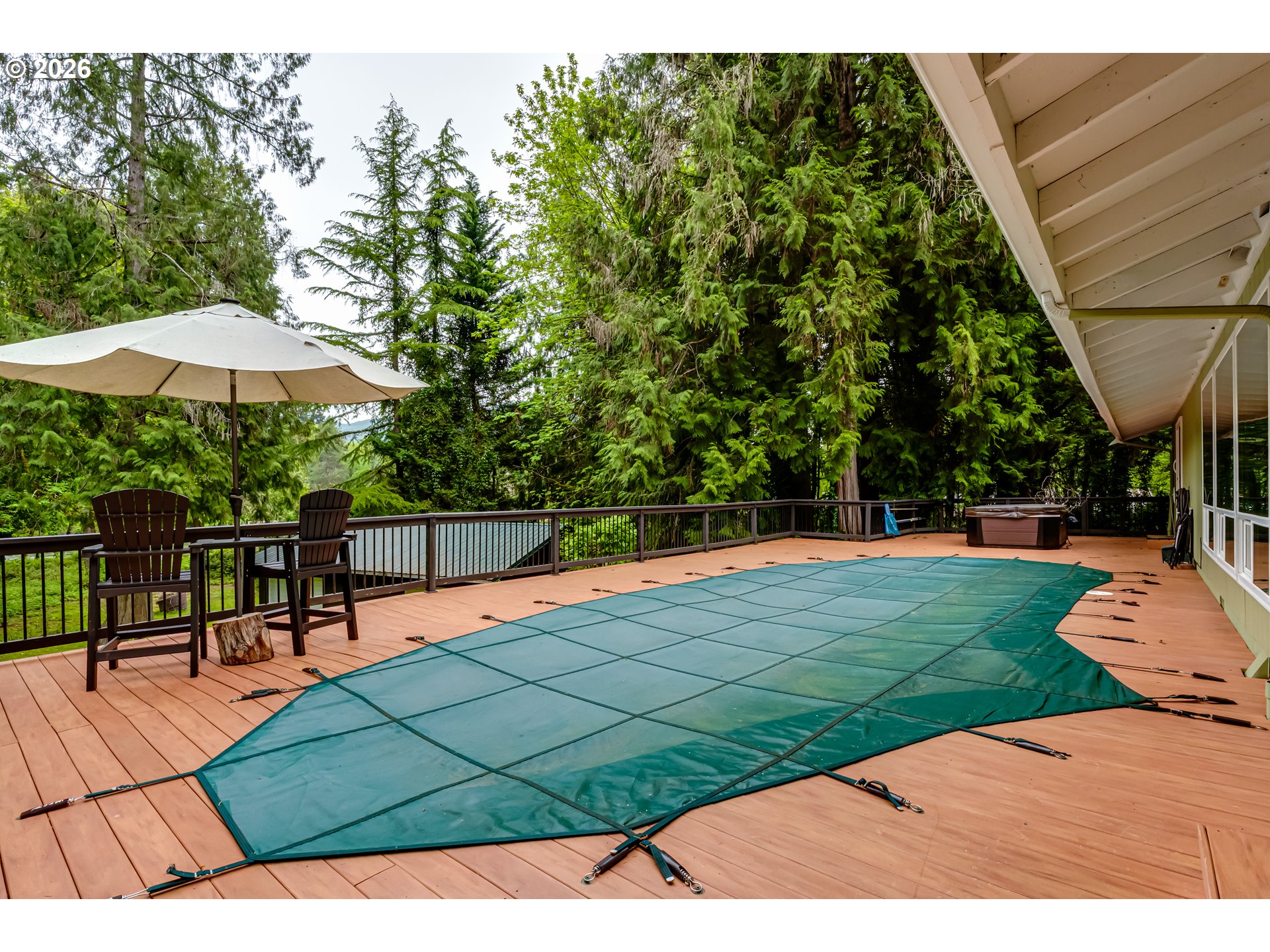 Set along the scenic McKenzie River and backing to a park, this property offers a peaceful setting just minutes from town. Enjoy beautiful river views from the living room, while the expansive deck with pool and hot tub creates the perfect space for relaxing or entertaining. The lower portion of the property provides additional outdoor space with potential for a fire pit or gathering area. The home is currently configured as a two-bedroom with an attached separate living unit, offering flexible living options, with potential to reconfigure to a three-bedroom layout in the main home. The attached unit, with its own entrance and full bathroom, adds versatility for guests or extended living. Additional features include a detached garage with shop space and a large enclosed pole barn with oversized doors, ideal for storage, hobbies, or recreational vehicles. Deerhorn park and boat ramp is literally just around the corner which includes a sport court for pickleball.