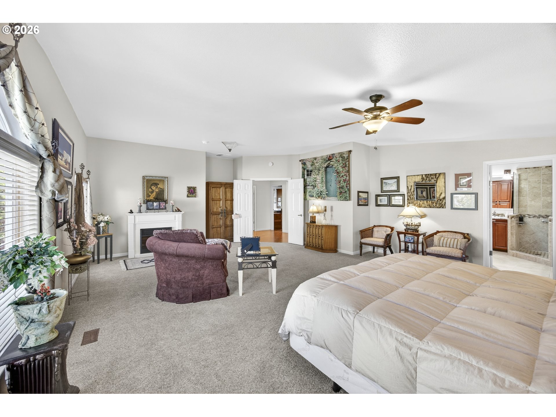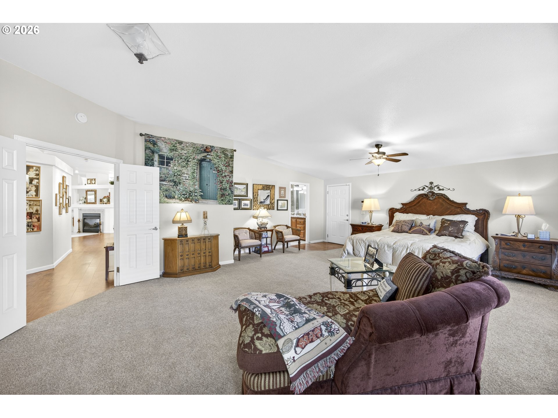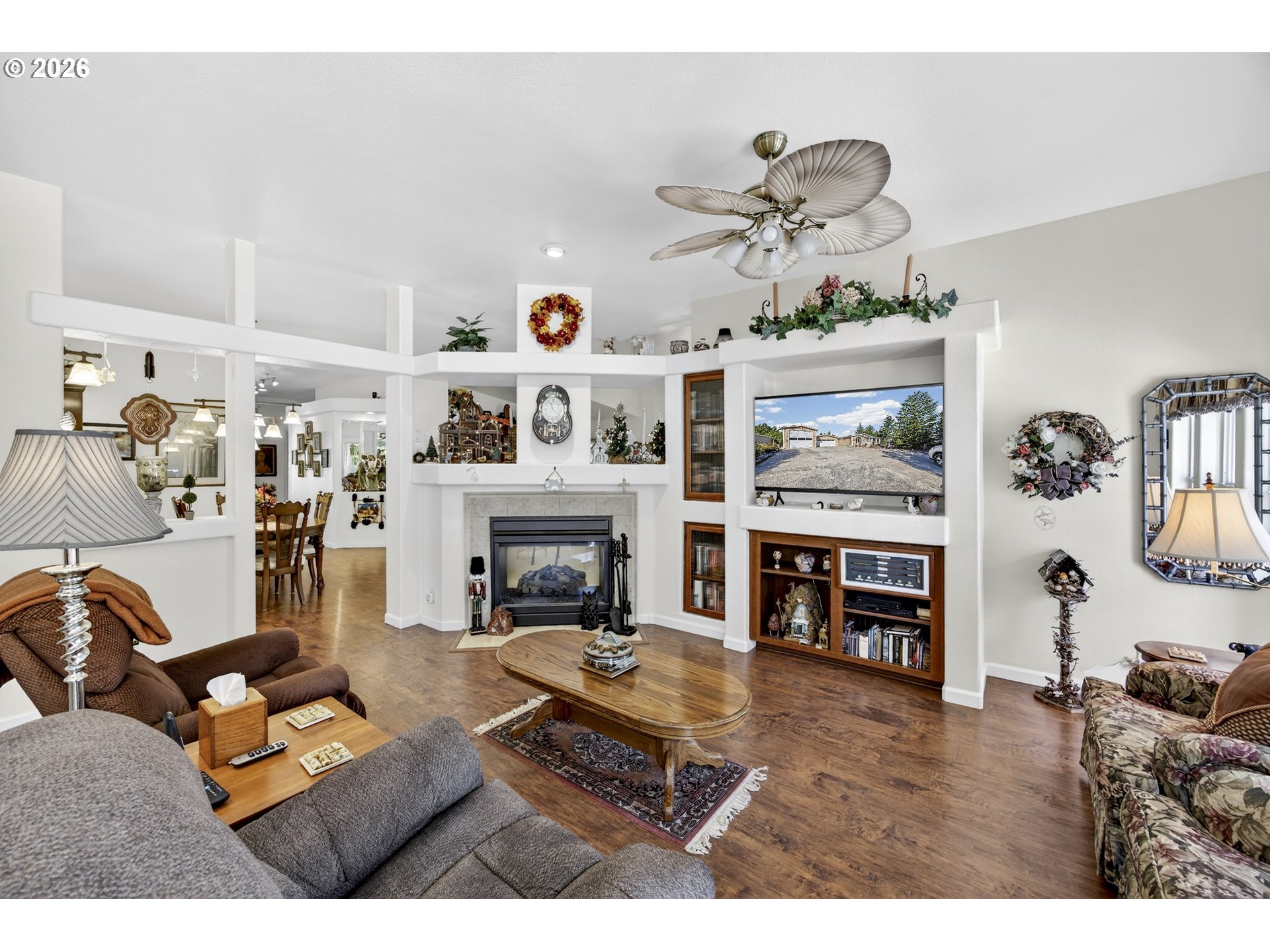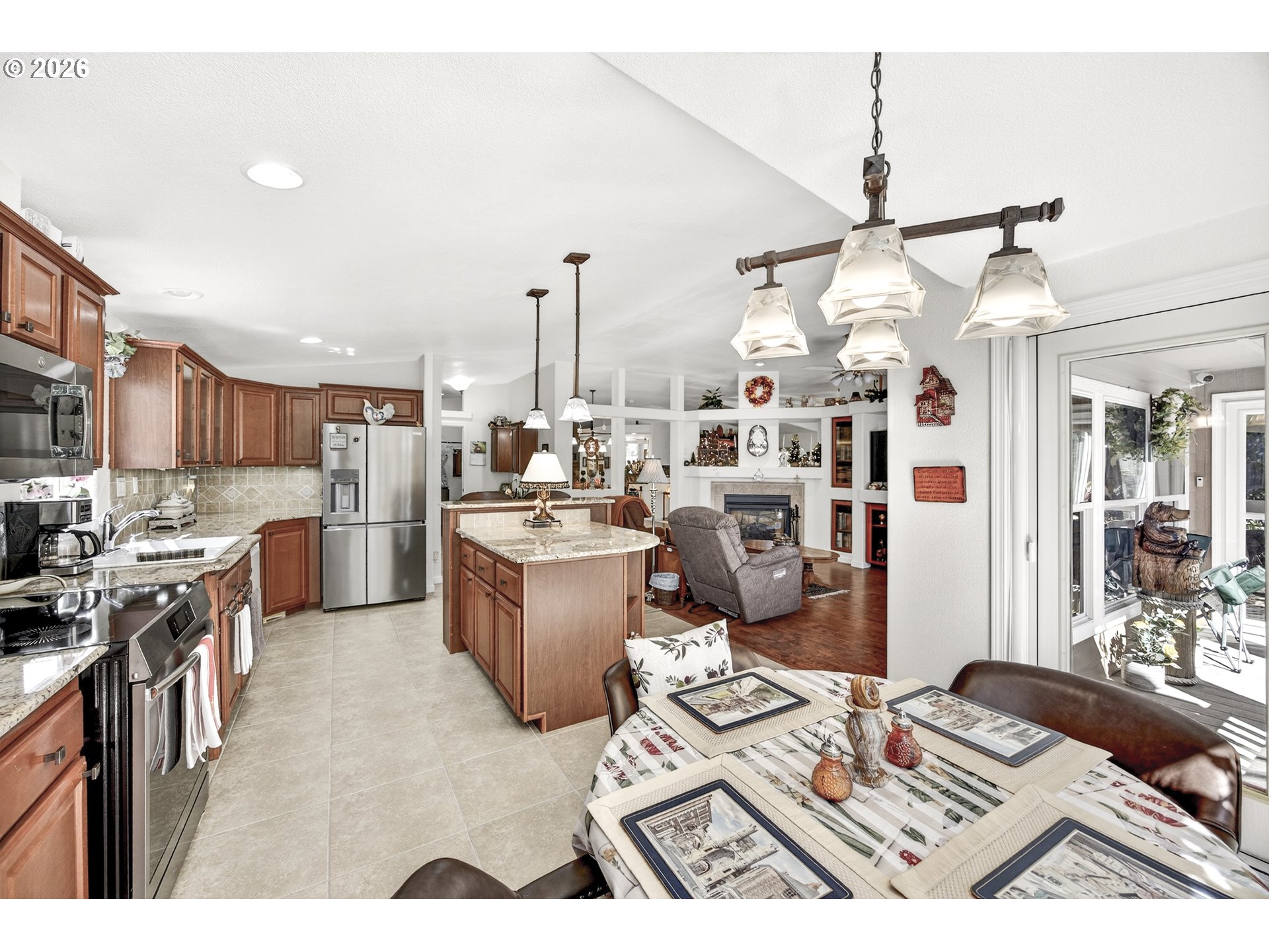 Tucked away on a quiet cul-de-sac in desirable Florentine Estates Commninity, this spacious 2,594 sq ft home offers comfort, functionality, and exceptional garage space for every lifestyle. Featuring 3 bedrooms and 2.5 baths, the home is thoughtfully designed with a dual-sided fireplace that seamlessly connects the family room and living room, creating a warm and inviting atmosphere. The generous primary suite provides a true retreat with ample space, a walk-in closet, and an updated oversized walk-in shower. The kitchen is well-equipped with newer appliances, a convenient eating bar/island, and a large walk-in pantry complete with cabinets and counter space—perfect for organization and everyday living. Car enthusiasts, hobbyists, or RV owners will appreciate the impressive 2,100 sq ft garage setup, highlighted by a 59-foot deep RV garage with a 14-foot door and full hookups. Additional space offers endless possibilities for a workshop, woodshop, home gym, or extra storage. Additional features include a central vacuum system and a layout designed for both comfort and functionality. This home combines peaceful living with the space and amenities you’ve been looking for.