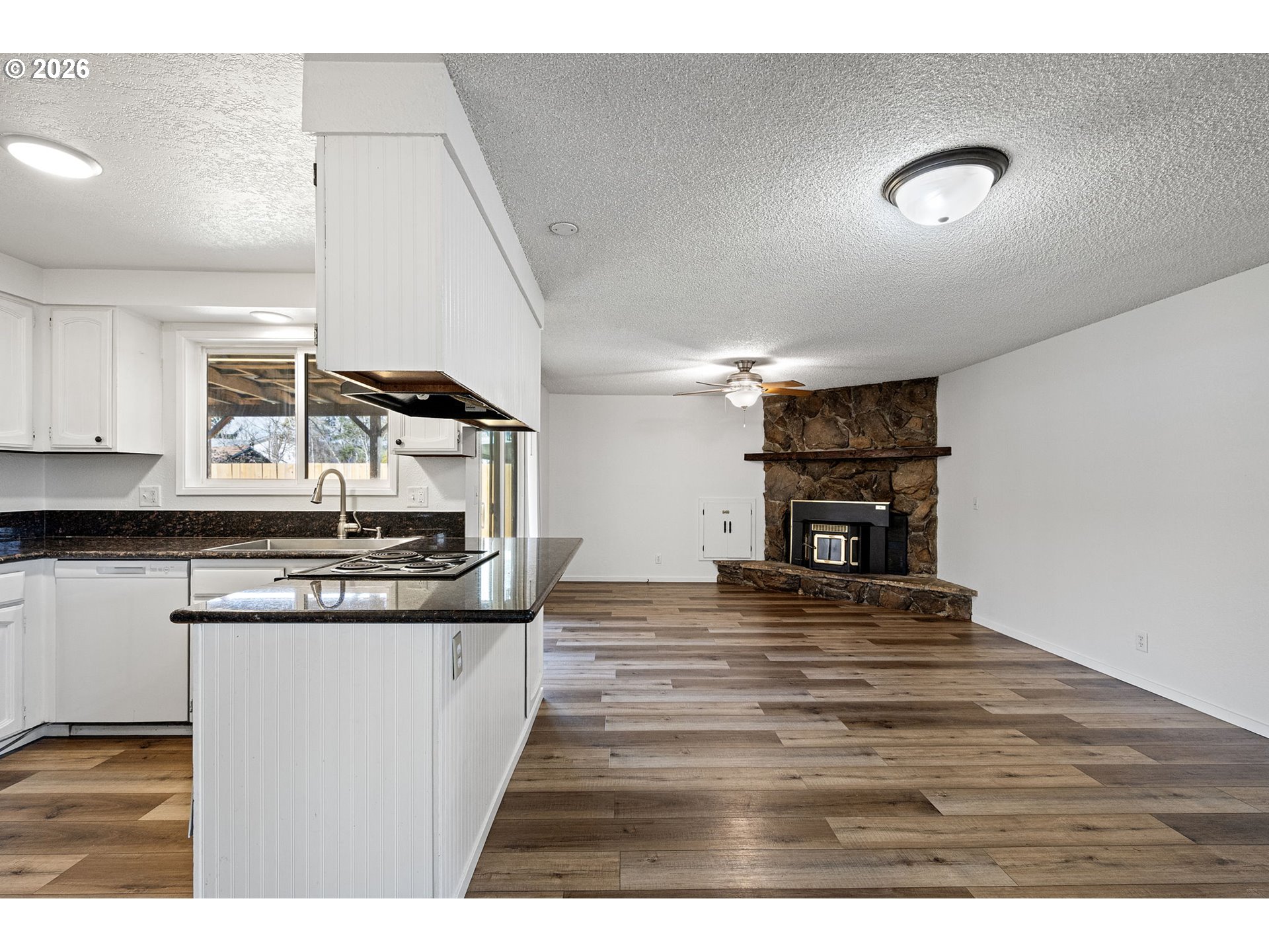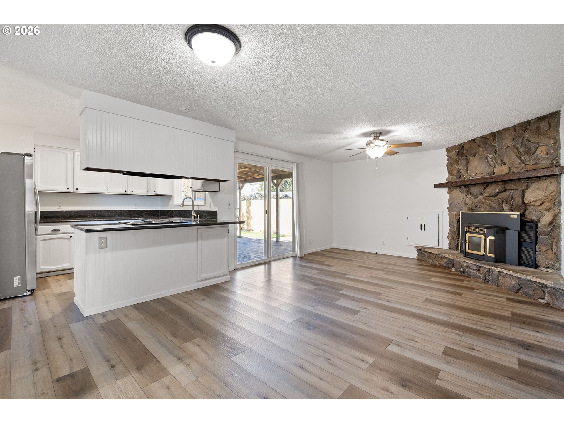 Fantastic opportunity in Springfield! This well cared for 3-bedroom, 2-bath home offers 1,256 sq ft of functional living space with a layout that truly works.A front living room welcomes you in with plenty of natural light, while the separate family room provides additional space to spread out. Anchored by a floor-to-ceiling stone surround pellet stove, the family room creates a cozy focal point and includes a slider that opens directly to the covered deck. The kitchen sits at the heart of the home with a farmhouse-style stainless steel sink, ample cabinetry, and peninsula seating. Luxury vinyl plank flooring runs throughout the main living areas, complemented by fresh interior paint. All three bedrooms feature brand new carpet. The primary suite includes its own private bathroom and a walk-in closet. Outside, enjoy a newer fully fenced yard with room to garden, relax, or let pets play, along with sought-after RV parking and a two-car garage for added storage and convenience. A solid, move-in ready home offering space, flexibility, and value at $399,900. Don't miss the opportunity to make this home yours!