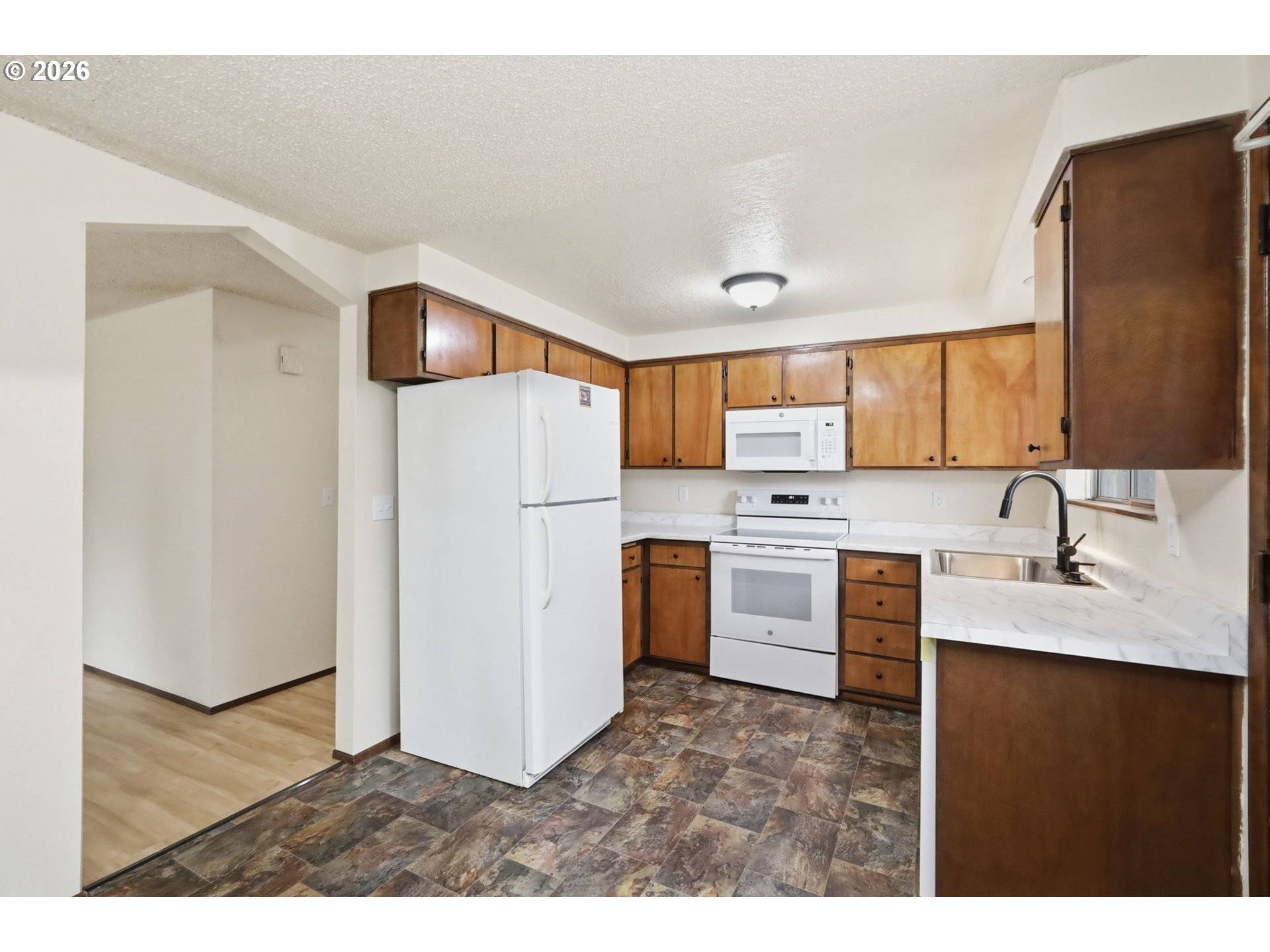 Fully refreshed and move-in ready, this charming single-level home offers comfort, style, and peace of mind with extensive recent updates throughout. From the moment you arrive, you’ll notice the fresh exterior paint, newer roof, updated lighting, and inviting curb appeal.Inside, the home features durable luxury vinyl plank flooring, abundant natural light, and a functional layout that flows seamlessly from the living room into the kitchen and dining area. The kitchen has been thoughtfully updated with new countertops, backsplash, sink, faucet, flooring, and freshly refinished cabinetry with new hardware—creating a clean and modern feel while maintaining warmth.Additional updates include most appliances, water heater, vinyl windows, interior paint, lighting fixtures, and more. The bathroom has also been refreshed with updated flooring, vanity, fixtures, and lighting.Step outside to enjoy a spacious backyard with a covered deck—perfect for relaxing or entertaining. With so many improvements already completed, this home offers a low-maintenance lifestyle and incredible value.